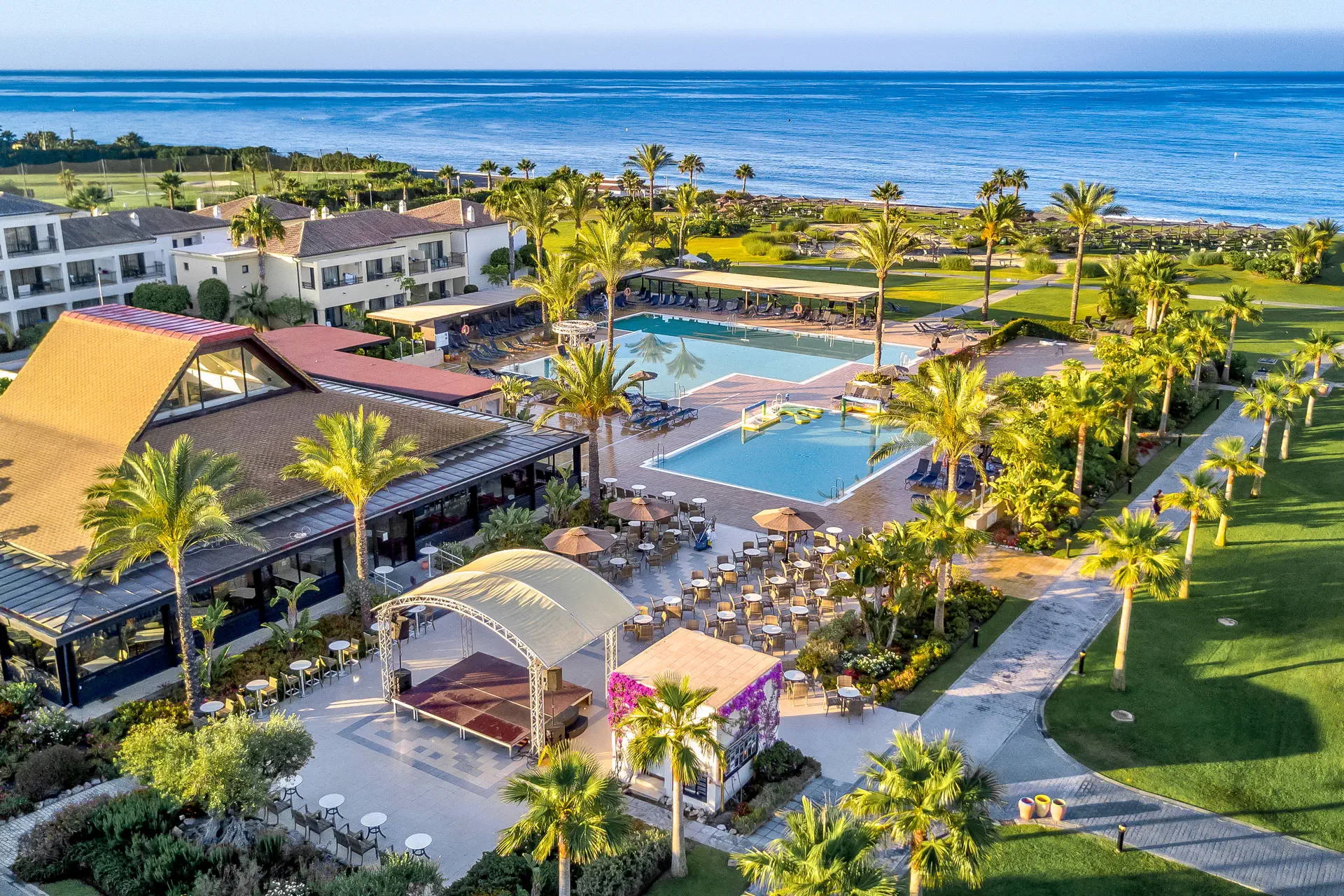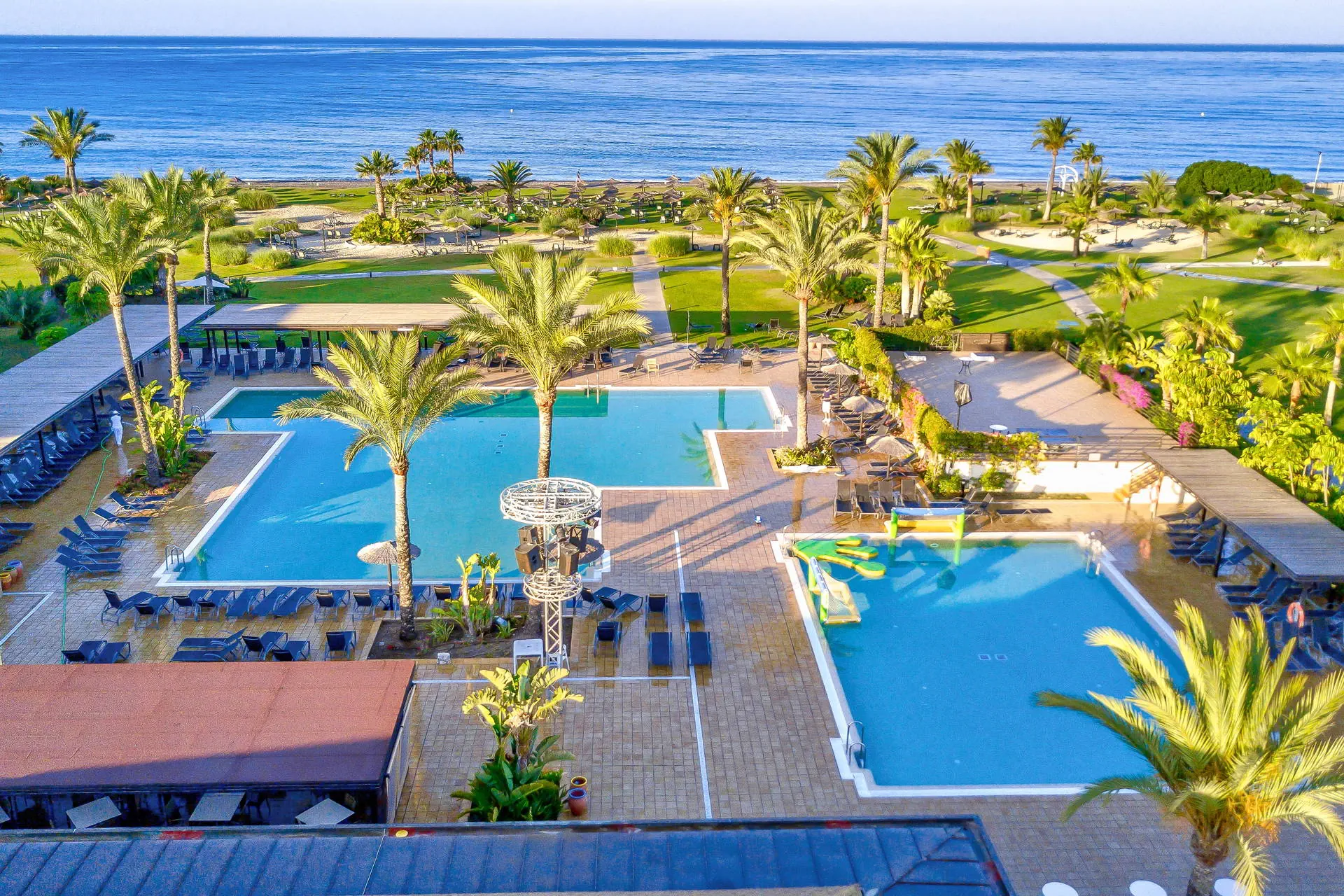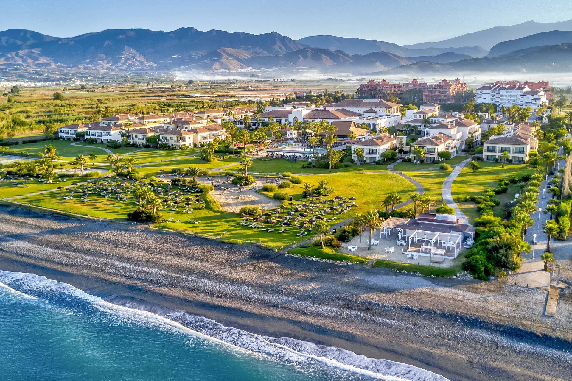 Położenie: Ten nowoczesny kompleks hotelowy położony jest w miejscowości Motril (najbliższe sklepy i bary ok. 500 od hotelu), do portu z restauracjami ok. 2km. Do lotniska w Maladze ok. 100 km. Plaża: Hotel położony jest przy długiej, piaszczysto-żwirowej plaży. Leżaki i parasole na plaży w wyznaczonej przez hotel strefie gratis. Do dyspozycji gości: Recepcja z lobby,windy w części budynków, restauracja główna, restauracja tematyczna, snack bar przy basenie, bar na plaży (nie wliczony w All Inclusive), tarasy słoneczne z leżakami i parasolami, ogród z dwoma dużymi basenami, miniklub z brodzikiem (w basenach słodka woda), sklep z pamiątkami, butik, przechowalnia bagażu, parking (płatny ok. 15 EUR/dzień). Hotel zapewnia ręczniki basenowe (depozyt około 10 Eur/os). Pokoje: Hotel posiada 330 nowocześnie urządzonych pokoiróżnego typu rozlokowane w 17 dwupiętrowych budynkach. Wszystkie klimatyzowane, z łazienką (suszarka do włosów), małą lodówką (gratis), telefonem TV-sat, sejfem balkonem lub tarasem (meble ogrodowe). Łóżeczko dla dziecka do 2 lat bezpłatne. Hotel posiada pokoje dla osób niepełnosprawnych. Pokój standardowy(pow. ok. 30 m2) - dla max. 3 osób, dostawka w formie sofy. Możliwa dopłata do pokoi z frontalnym i bocznym widokiem na morze. Pokój rodzinny (pow. ok. 47 m2) - dla max. 4 osób, dwie sypialnie – jedna z łóżkiem małżeńskim i druga z dwoma łóżkami pojedynczymi. Wyżywienie: All Inclusive: śniadania (07:30-10:30), obiady (12:00-14:00), obiadokolacje (19:00-22:00) w formie bogatego bufetu, późne śniadania kontynentalne (10:00-11:00), podwieczorek i przekąski, lokalne napoje alkoholowe i bezalkoholowe (10:00-24:00). Program sportowy i animacyjny: Dzienne i wieczorne animacje dla dzieci i dorosłych (np. tenis, łucznictwo, piłka wodna, nauka tańca, gimnastyka wodna). Do dyspozycji Gości: 6 kortów tenisowych (depozyt za sprzęt ok. 20EUR), 2 boiska do siatkówki, tor łuczniczy, boisko do piłki halowej. Za opłatą (ok. 15EUR/1,5h) strefa SPA (łaźnia turecka, sauna, bicze wodne, hydromasaże, zabiegi welness) i basen wewnętrzny (ok.10 EUR/godz). Internet: Wi-fi w ogólnodostępnych częsciach hotelu gratis. Kategoria lokalna: **** Strona www: