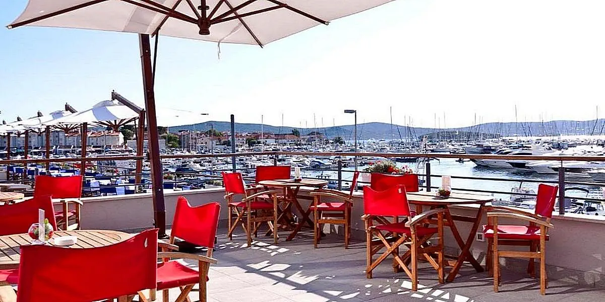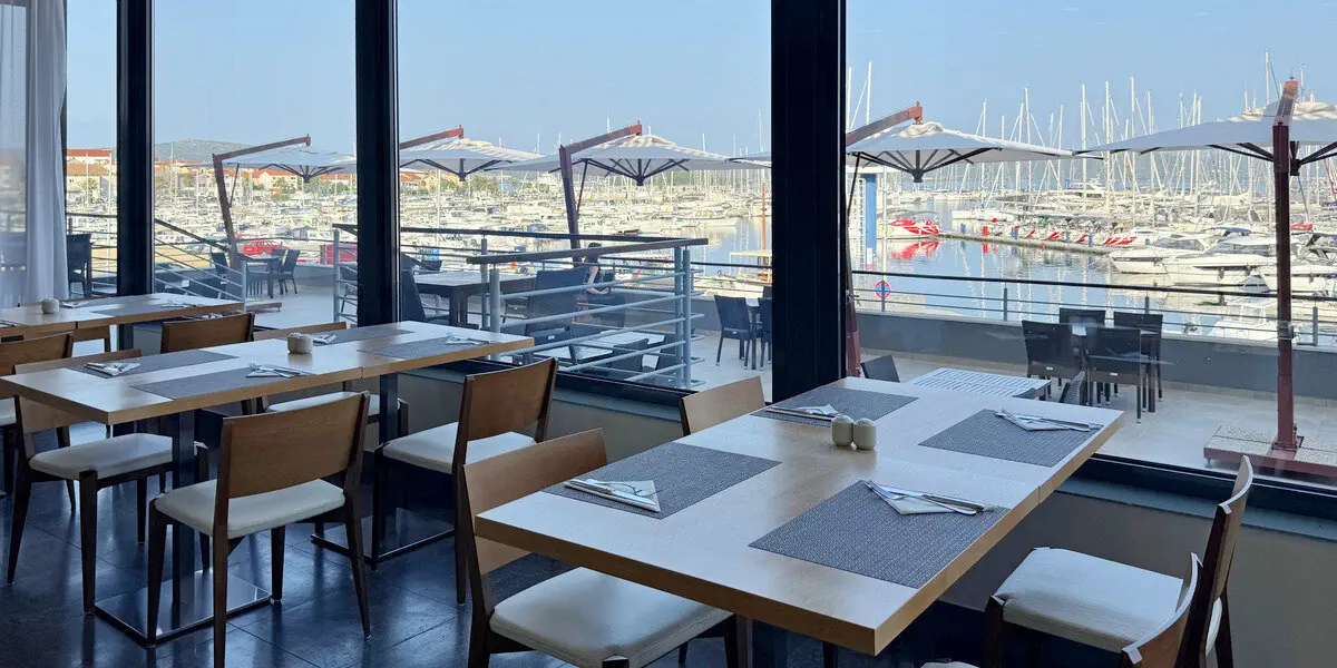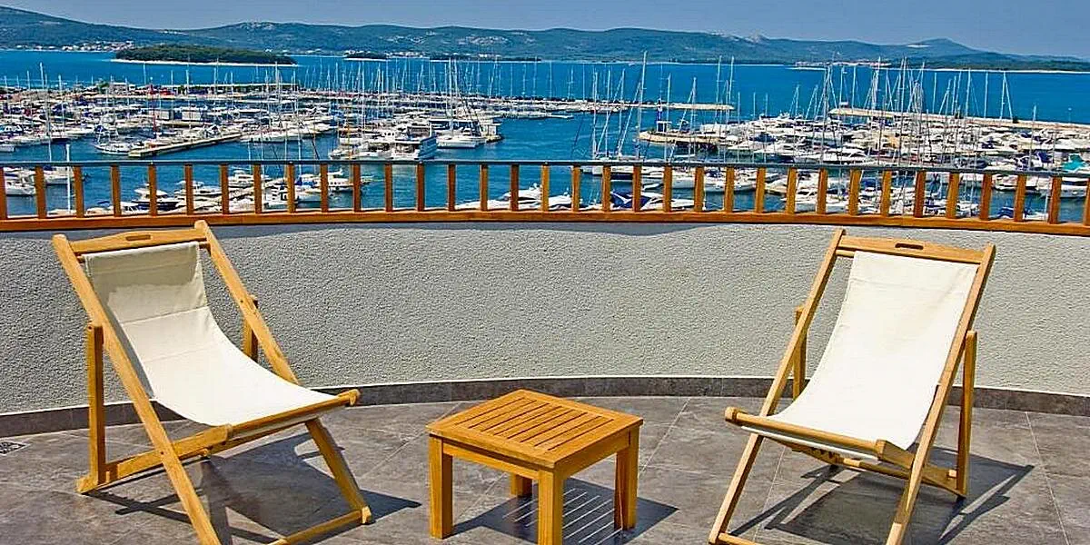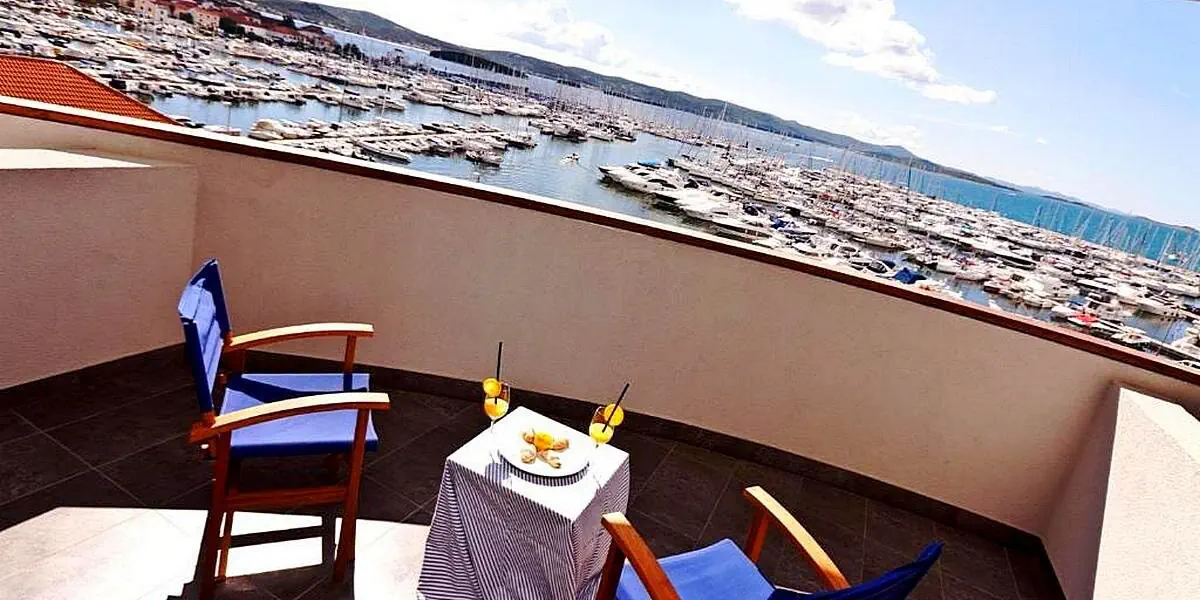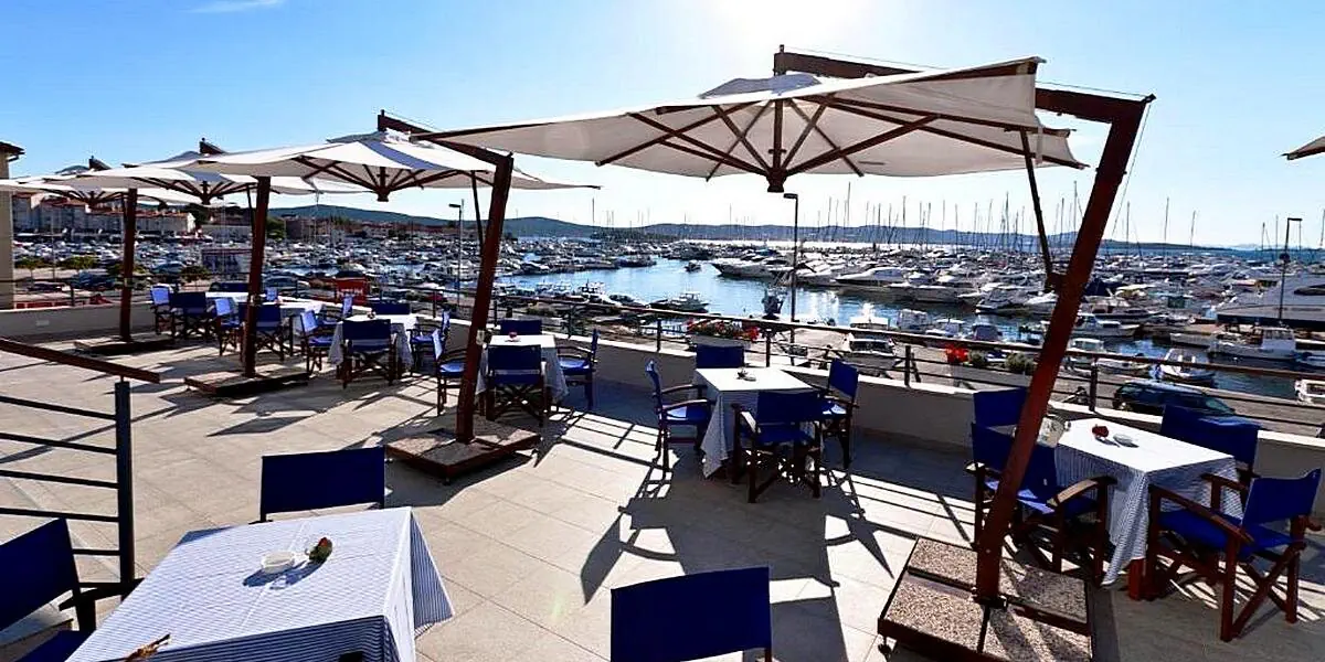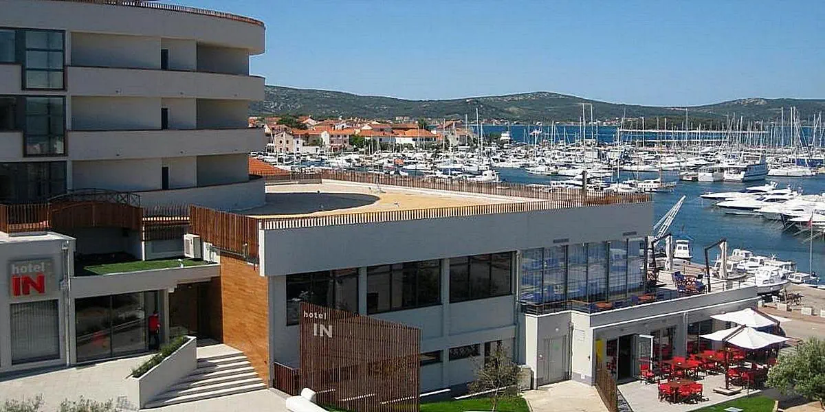 Hotel IN jest położony bezpośrednio przy marinie, w centrum Biograd na Moru. Plaże ciągną się na wschód i zachód od mariny.