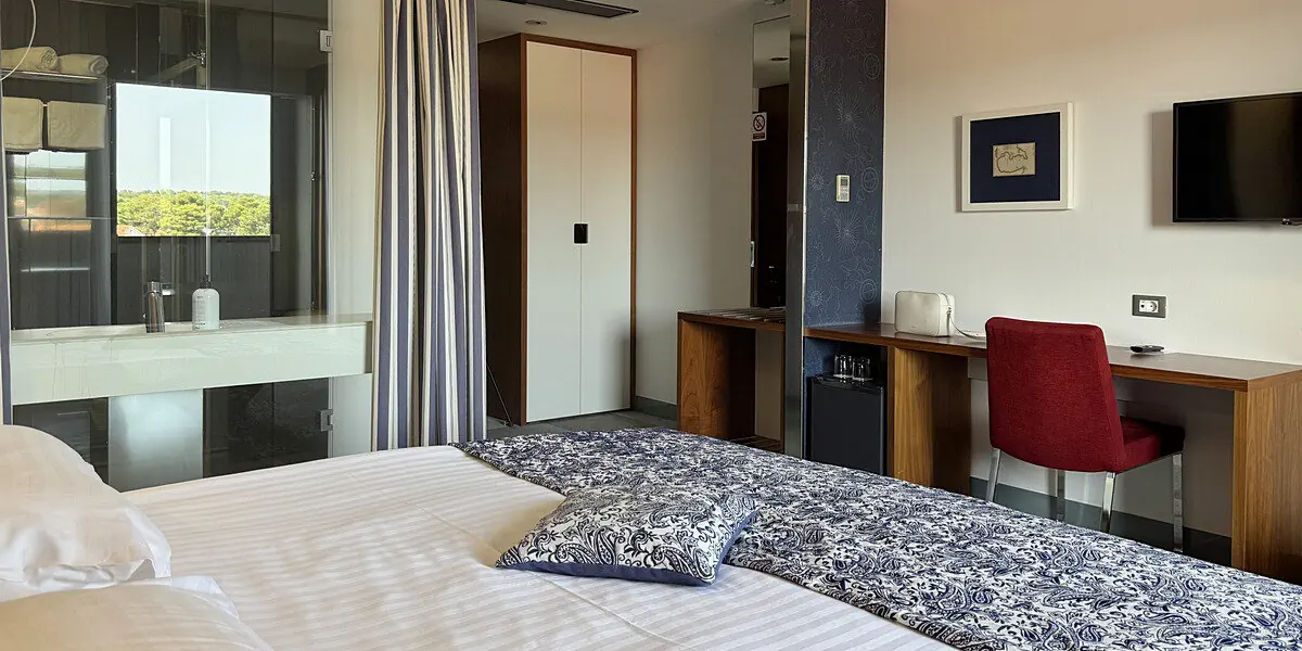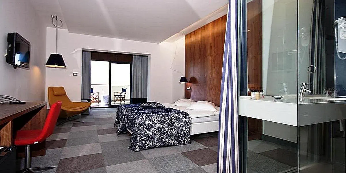 Pokój z balkonem z widokiem na morze, wyposażony w klimatyzację, zestaw do parzenia kawy i herbaty, minibar, TV, sejf, dostęp do Wi-Fi, ręczniki. W łazience jest kabina prysznicowa i suszarka do włosów. Żelazko i deska do prasowania dostępne na życzenie.