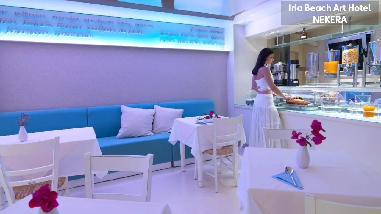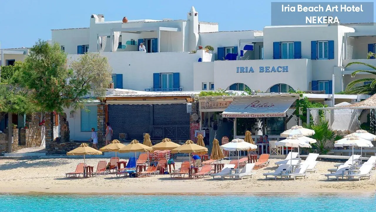 czterogwiazdkowy hotel w tradycyjnym cykladzkim stylu oferuje 25 w komfortowych i świetnie wyposażonych pokoi oraz apartamentów. Do dydspozycji Gości: recepcja (czynna w gdodz. 08:00 - 24:00); parking (ok. 30 m.); kącik telewizyjny, Wi-Fi. Za dodatkową opłatą: restauracja Palatia przy plaży; usługa prania/prasowania; usługi medyczne; wypożyczalnia samochodów, motocykli i rowerów, faks/ksero/druk.