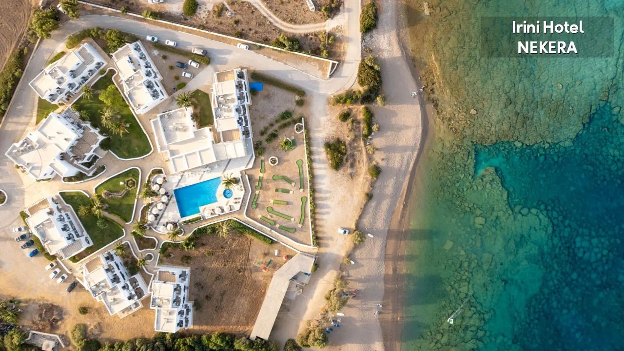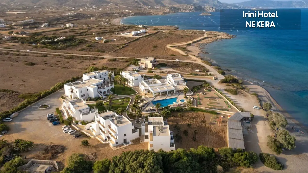 hotel zlokalizowany nieopodal lotniska, w południowej części wyspy, w spokojnej okolicy. Najbliższa tawerna: ok. 1,7 km, centrum sportów wodnych: ok. 1,7 km ruiny mykeńskiego Akropolu w Arkasa: ok. 11 km, antyczna Jaskinia Posejdona: ok. 11 km, starożytne ruiny świątyni Św. Fotini: ok. 12 km, muzeum archeologiczne w stolicy: ok. 14 km, tradycyjna wioska Olympos w górach: ok. 55 km. Port lotniczy oddalony o ok. 1,7 km.