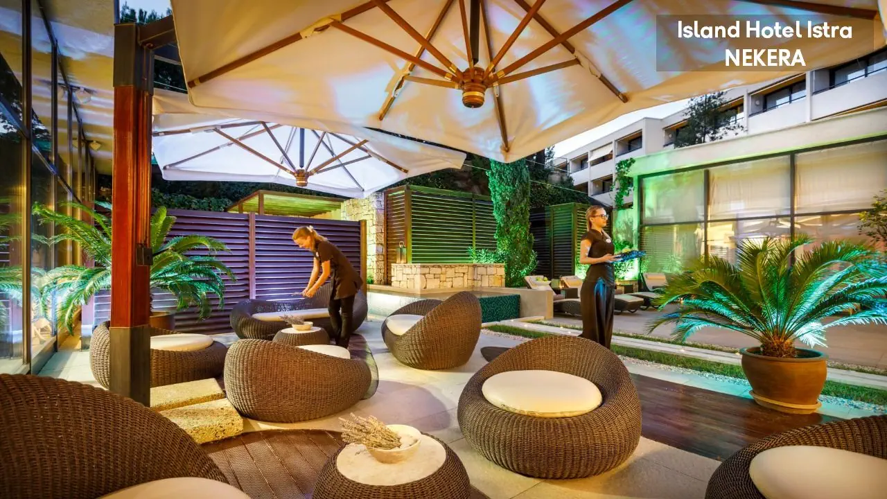 Strefa wellness: ok 1.600 m2. Basen kryty (ok. 122 m2), basen zewnętrzny, leżaki i parasole w cenie, sauna fińska, pokój relaksacyjny, łaźnia fińska. Za opłatą: masaże, centrum urody.