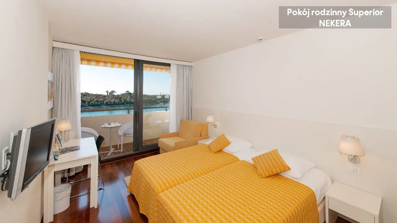 pokoje dwuosobowe superior B21 (ok. 23 m2): wanna, WC, suszarka, telefon, TV, WiFi, klimatyzacja, sejf, mini bar (za opłatą), balkon, ograniczony widok na morze. Pokoje rodzinne FB2 (ok. 46 m2): wyposażone jak pokoje dwuosobowe superior, dwa pokoje połączone drzwiami.