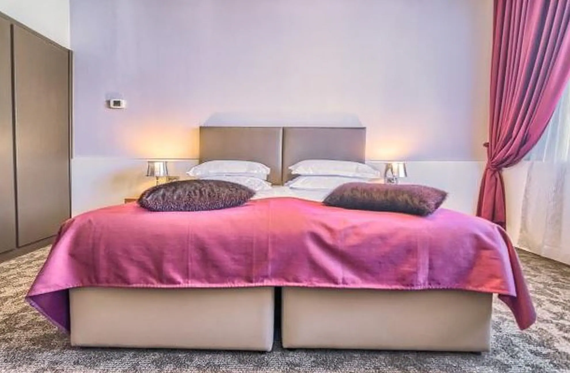 pokoje dwuosobowe standard z widokiem na park (ok. 20 m2): wanna, WC, suszarka, telefon, TV, WiFi, klimatyzacja, sejf, mini bar (za opłatą), widok na park. Pokoje dwuosobowe standard z widokiem na morze (ok. 20 m2): wyposażone jak pokoje dwuosobowe standard z widokiem na park.