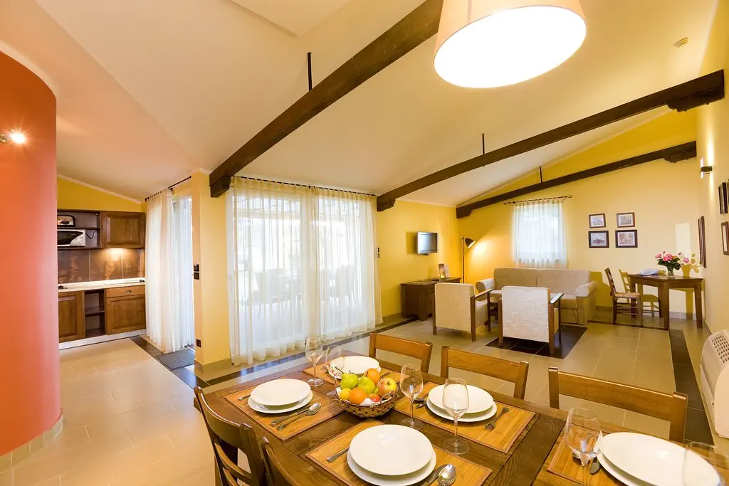 Wille 2-pomieszczeniowe Classic (CV2P2); ok. 42 m2; pomieszczenie dzienno-sypialne z rozkładaną sofą, oddzielna sypialnia z łóżkiem małżeńskim, kuchnia (płyta elektryczna, czajnik, kuchenka mikrofalowa, lodówka, naczynia, sztućce, kącik jadalny), klimatyzacja, TV-Sat., telefon, sejf, taraz z niewielkim ogródkiem, prysznic, WC, suszarka, kosmetyki. Dla max. 4 osób. Wille 3-pomieszczeniowe Classic (CV4P2): ok. 58 m2; pomieszczenie dzienno-sypialne z rozkładaną sofą dwuosobową, sypialnia z łóżkiem małżeńskim, sypialnia z dwoma łóżkami pojedynczymi, 2 łazienki, kuchnia (płyta elektryczna, czajnik, kuchenka mikrofalowa, lodówka, naczynia, sztućce, kącik jadalny), klimatyzacja, TV-Sat., telefon, sejf, taraz z niewielkim ogródkiem, prysznic, WC, suszarka, kosmetyki. Dla max. 6 osób. W cenę wynajmu wliczone: zużycie prądu, wody, ręczniki, pościel (wymiana 2 x w tygdoniu), sprzątanie końcowe. Ręczniki kąpielowe do wypożyczenia za kaucją. Łóżeczko dla dziecka do 2 lat gratis, na zapytanie.