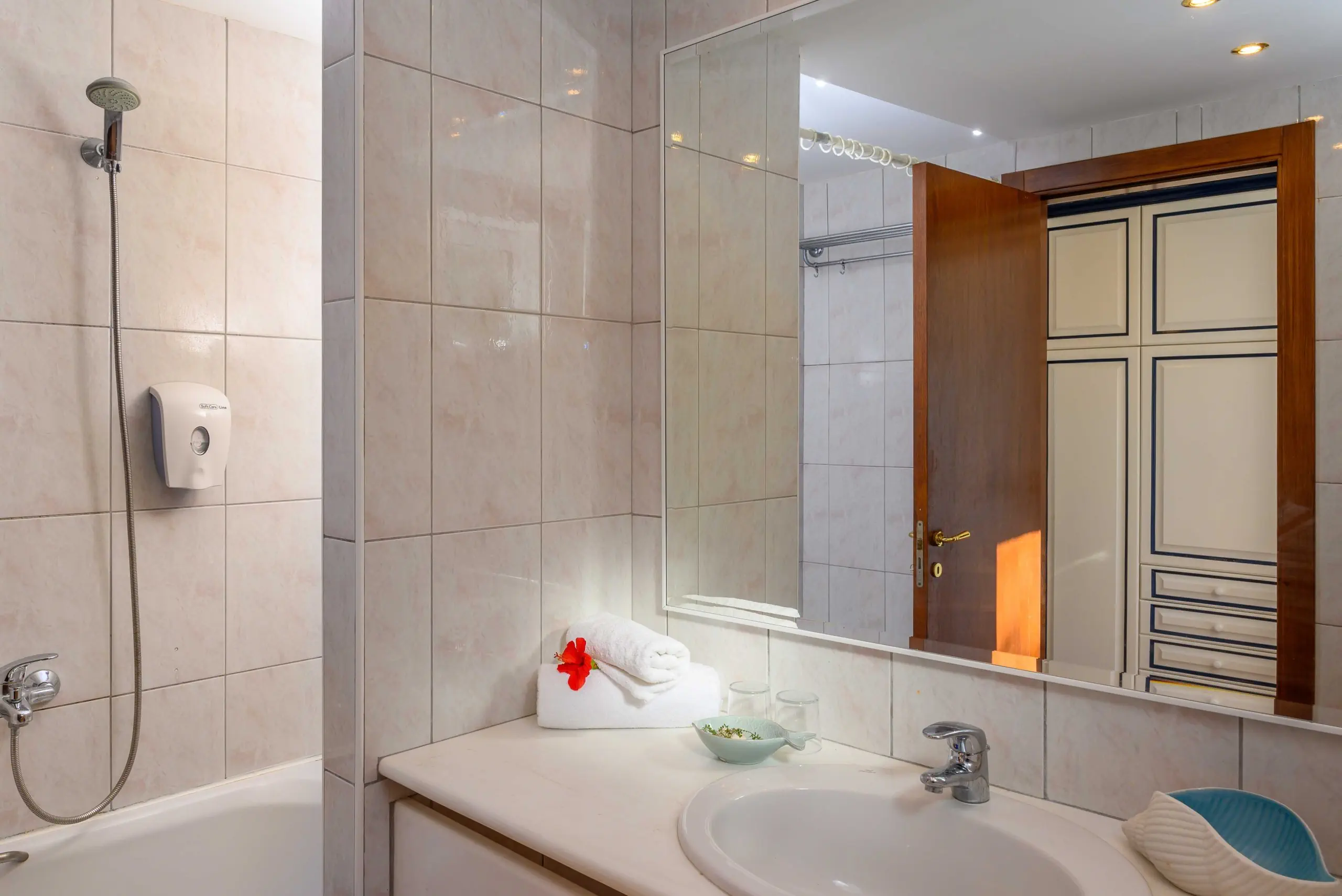 Dla max. 2 osób, Przestrzeń zewnętrzna: Balkon, Kanały telewizji: Angielski, Telefon w pokoju, wanna, Powierzchnia pokoju: ok. 21 - 25 m2, Rodzaj podłogi: laminat, Sprzątanie codziennie, 1 sypialnia, Maksymalna liczba osób dorosłych: 2, Maksymalna liczba dzieci: 0, Częściowy widok na morze, Liczba łazienek: 1, Liczba toalet: 1, Klimatyzacja: Klimatyzacja indywidualna