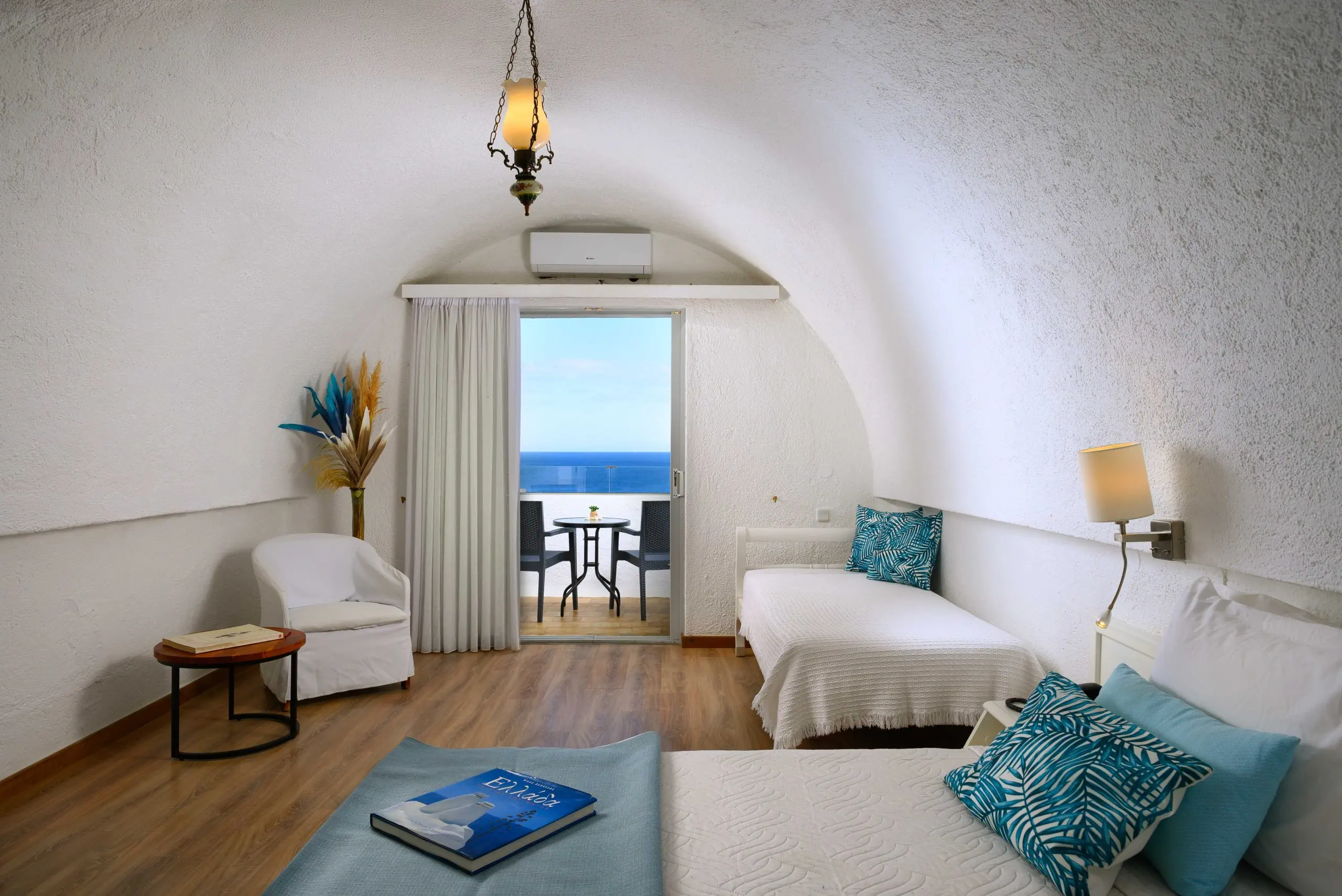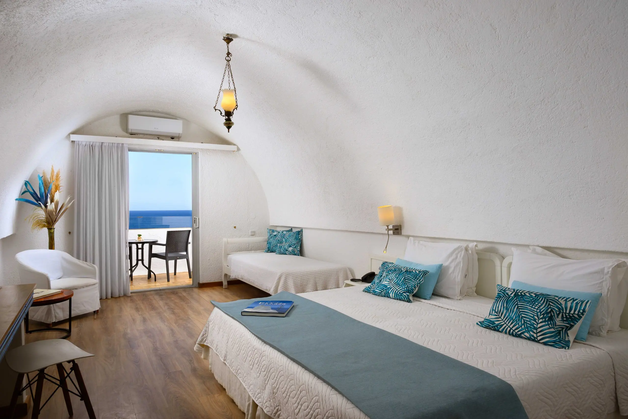 Dla max. 3 osób, Przestrzeń zewnętrzna: Balkon lub taras, Kanały telewizji: Angielski, Telefon w pokoju, wanna, Powierzchnia pokoju: ok. 25 - 30 m2, Dostawka: sofa, Rodzaj podłogi: laminat, Sprzątanie codziennie, 1 sypialnia, Maksymalna liczba osób dorosłych: 3, Maksymalna liczba dzieci: 1, Widok na morze, Liczba łazienek: 1, Liczba toalet: 0, Klimatyzacja: Klimatyzacja indywidualna