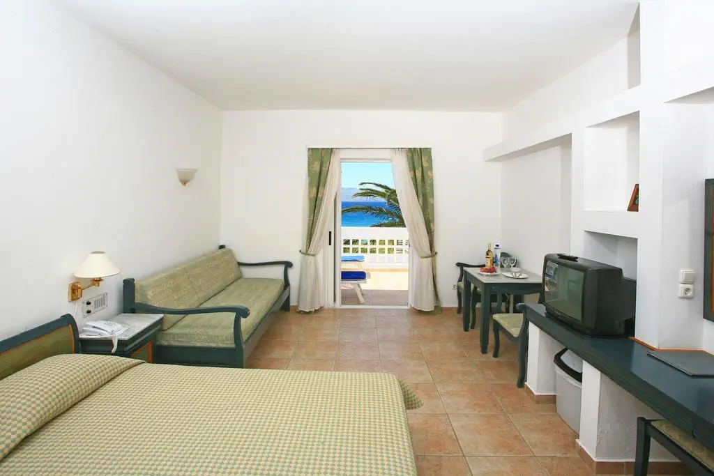 Dla max. 2 osób, Przestrzeń zewnętrzna: Balkon, Kanały telewizji: Angielski, Telefon w pokoju, wanna, Powierzchnia pokoju: ok. 26 - 30 m2, Dostawka: sofa, Rodzaj podłogi: laminat, Sprzątanie codziennie, 1 sypialnia, Maksymalna liczba osób dorosłych: 2, Maksymalna liczba dzieci: 2, Widok na morze, Liczba łazienek: 1, Liczba toalet: 1, Klimatyzacja: Klimatyzacja indywidualna