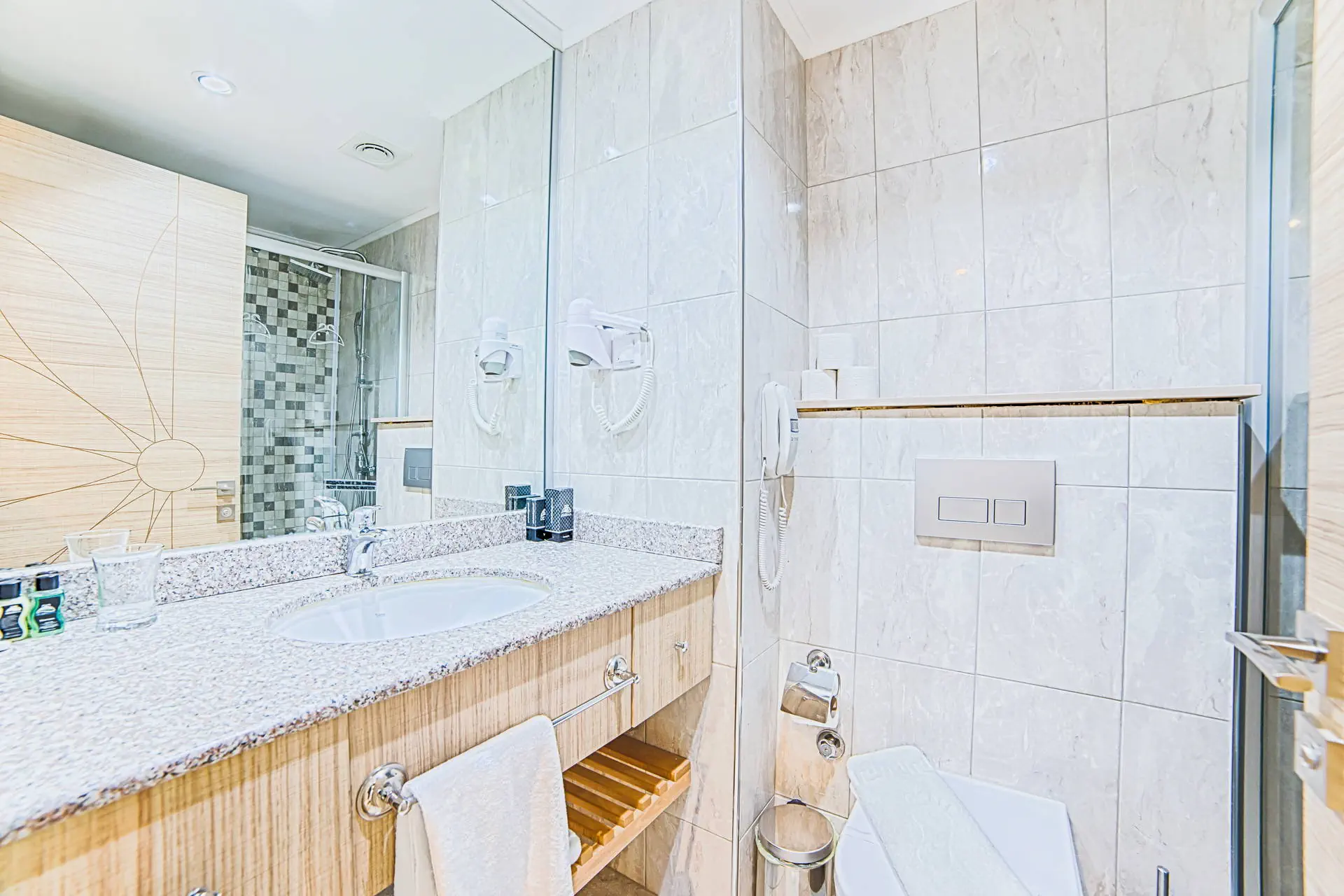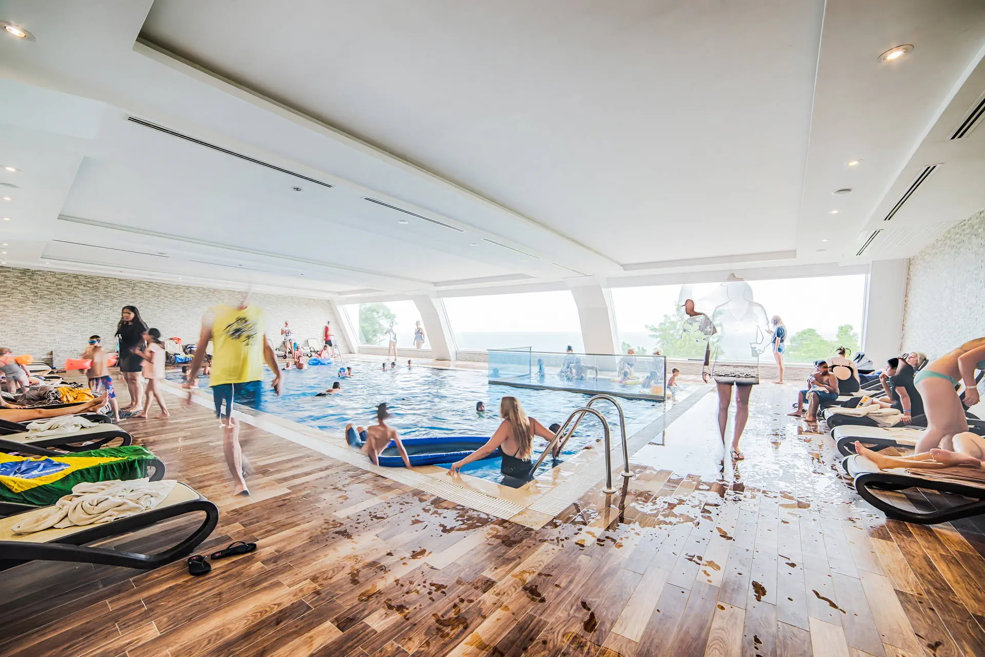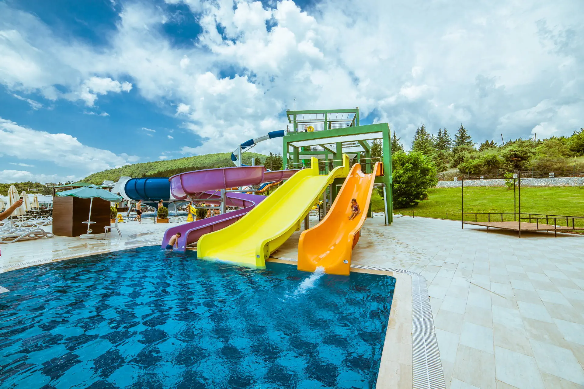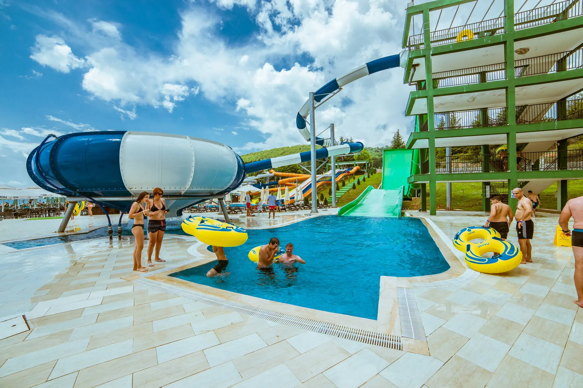 Położenie Ekskluzywny hotel składający się z ośmiopiętrowego, piramidalnie zaprojektowanego budynku głównego, położony na rozległym terenie bezpośrednio nad Jeziorem Ochrydzkim w pobliżu miejscowości Struga. Hotel posiada jeden z największych (17 000 m2) Aquaparków w regionie. Urządzony jest w eleganckim a zarazem nowoczesnym stylu. Otoczony bujną zielenią kompleks, pozwala na błogi relaks w upalne bałkańskie dni. Do centrum Strugi ok. 7 km (przystanek autobusowy przy hotelu - ok. 1 EUR/os, taxi ok. 2 EUR/os), do historycznej Ochrydy ok. 20 km, a do ochrydzkiego lotniska ok. 15km. Plaża Szeroka, piaszczysto – żwirkowa plaża z łagodnym zejściem do jeziora, bezpośrednio sąsiadująca z hotelem (ok. 200m). Na plaży i przy basenie bezpłatne leżaki i parasole. W sezonie bar na palży (płatny, czynny w godzinach (08:00-20:00)) Do dyspozycji gości Recepcja 24h, 4 windy, aquapark ze zjeżdżalniami (ok.10 o różnej wielkości dla dorosłych i dzieci; czynny sezonowo w zależności od pogody), duży lagunowy basen odkryty typu infinity ze słodką wodą oraz brodzik dla dzieci a także basen wewnętrzny, bezpłatne leżaki i parasole przy basenach i na plaży, boisko wielofunkcyjne (siatkówka, koszykówka), boisko do siatkówki plażowej, kort tenisowy, punkt wymiany walut, wypożyczalnia rowerów (dodatkowo płatna), sklep, bankomat. Restauracja główna z tarasem zewnętrznym i widokiem na jezioro, restauracja a la carte (płatna), beach bar (płatny), lobby bar oraz aquapark bar (płatny). Pokoje W hotelu znajduje się ok. 200 przestronnych i komfortowo wyposażonych pokoi 2 os. (z możliwością zakwaterowania 2 dzieci - drugie dziecko śpi z rodzicami; pokoje rodzinne na potwierdzenie) z łazienkami, które są wyposażone w WC, wannę lub prysznic, suszarkę do włosów, kosmetyki toaletowe, szlafroki, kapcie, zestaw do parzenia kawy i herbaty. Wszystkie pokoje posiadają balkon lub taras (stolik + krzesła), klimatyzację, TV SAT, telefon, sejf (bezpłatny), mini bar (za opłatą), bezpłatny dostęp do Wi-Fi. Pokoje z widokiem na las/góry lub na jezioro (za dodatkową opłatą). Wyżywienie Śniadania w formie bufetu (07:00-10:00), możliwa dopłata do obiadokolacji (19:00 - 21:30; napoje do obiadokolacji dodatkowo płatne, posiłki w formie bufetu). W hotelu dostępna jest również restauracja a'la carte (płatna; posiłki serwowane) czynna w porze lunchu (13:00-14:00) i kolacji (19:00 - 21:30). Program sportowy i animacyjny Goście hotelu mają bezpłatny, nielimitowany wstęp do aquaparku. W strefie welness (09:00-21:00): bezpłatnie basen wewnętrzny, sala fitness, łaźnia turecka oraz sauna; jacuzzi, masaże i solarium (dodatkowo płatne). Ponadto bezpłatnie: boiska do gry w siatkówkę, koszykówkę, tenisa oraz tenis stołowy, mini golf. Dla najmłodszych: atrakcje i zjeżdżalnie w aquaparku, brodzik, mini klub . Internet Wi-Fi dostępne bezpłatnie w całym obiekcie, również w pokojach. Kategoria lokalna ***** Naszym zdaniem Luksusowy hotel z bogatym zapleczem rekreacyjno-sportowym, ulokowany bezpośrednio przy jeziorze, zaspokoi oczekiwania wymagających klientów. Odpowiedni na komfortowe wakacje oraz rodzinny relaks i wypoczynek. Strona www