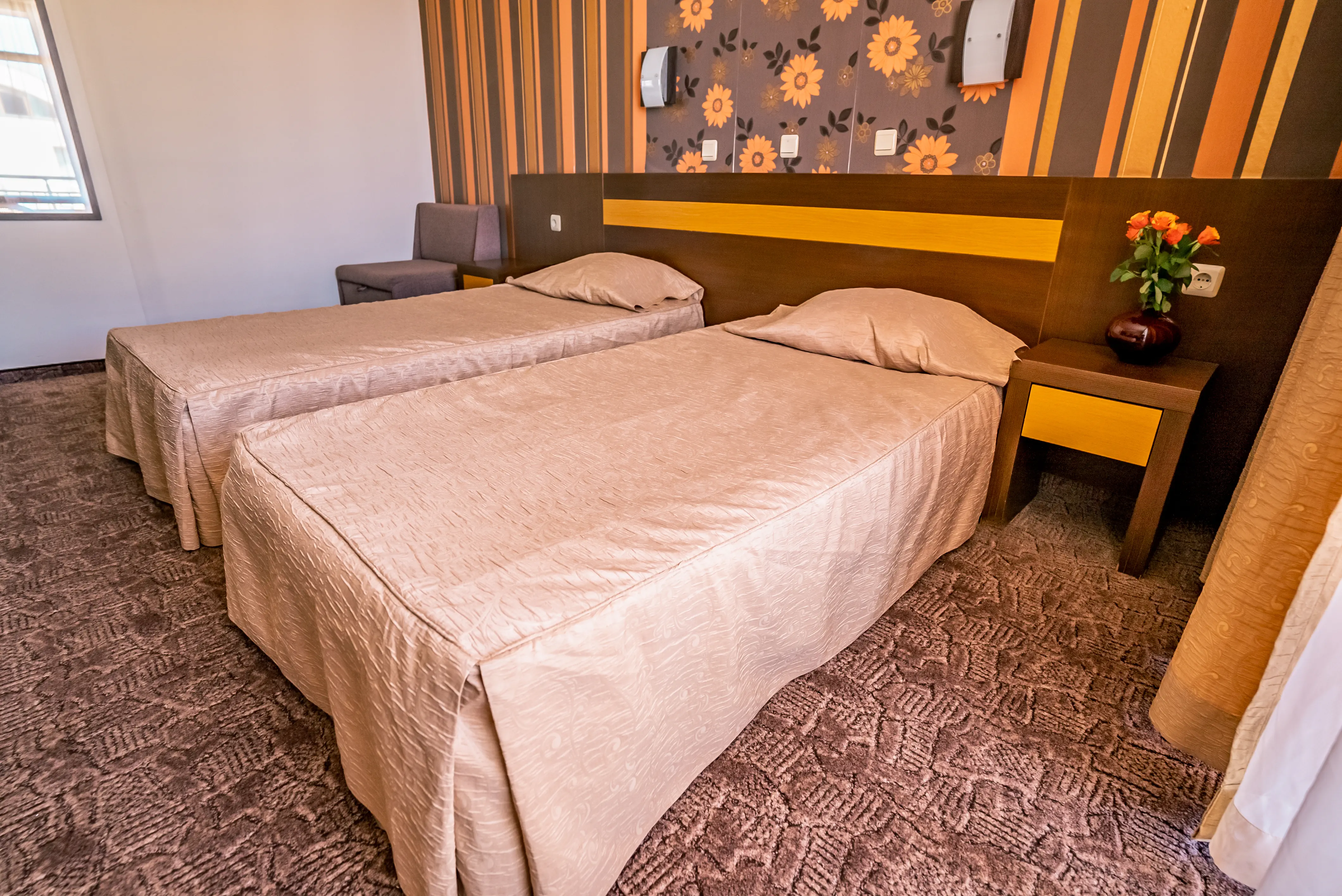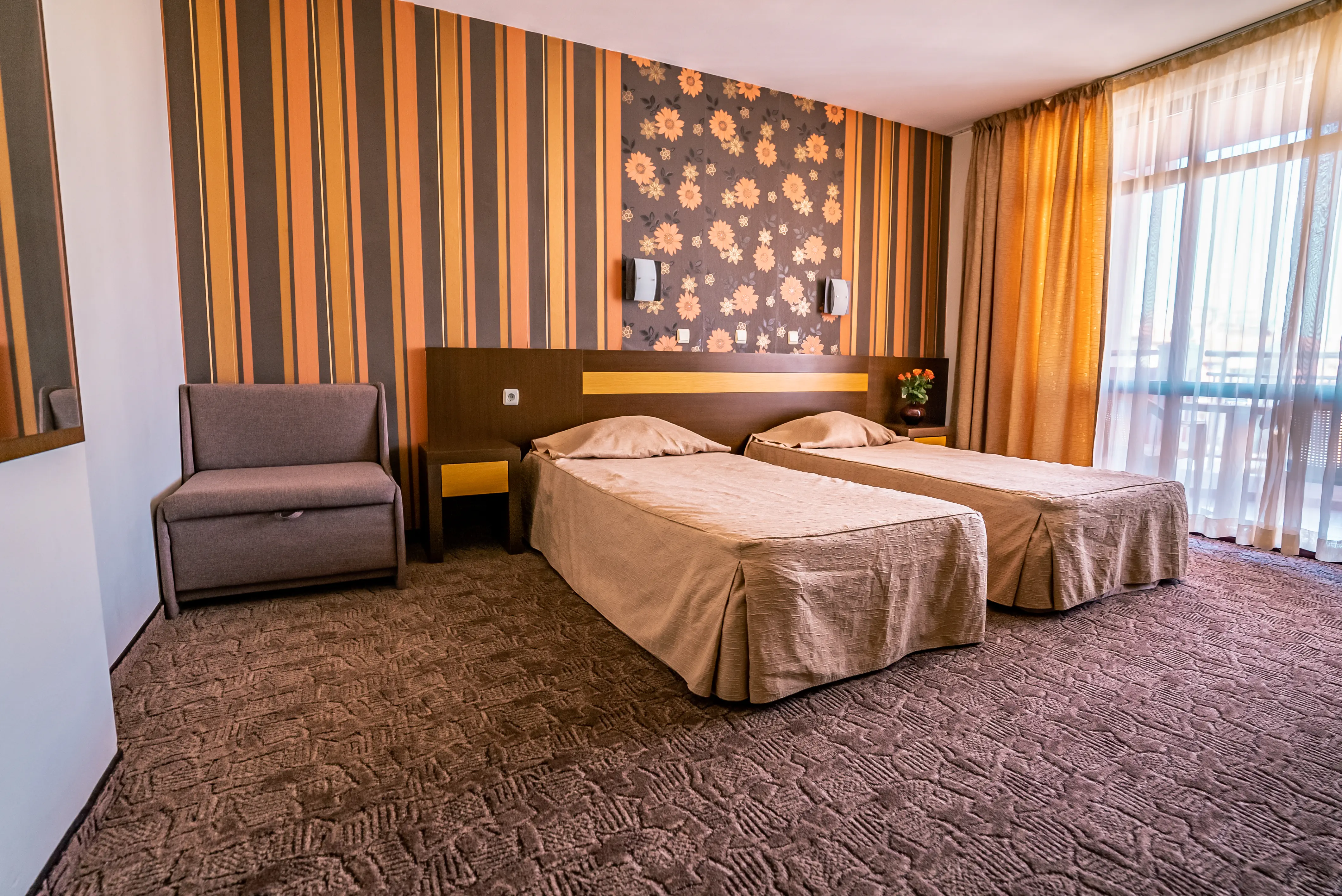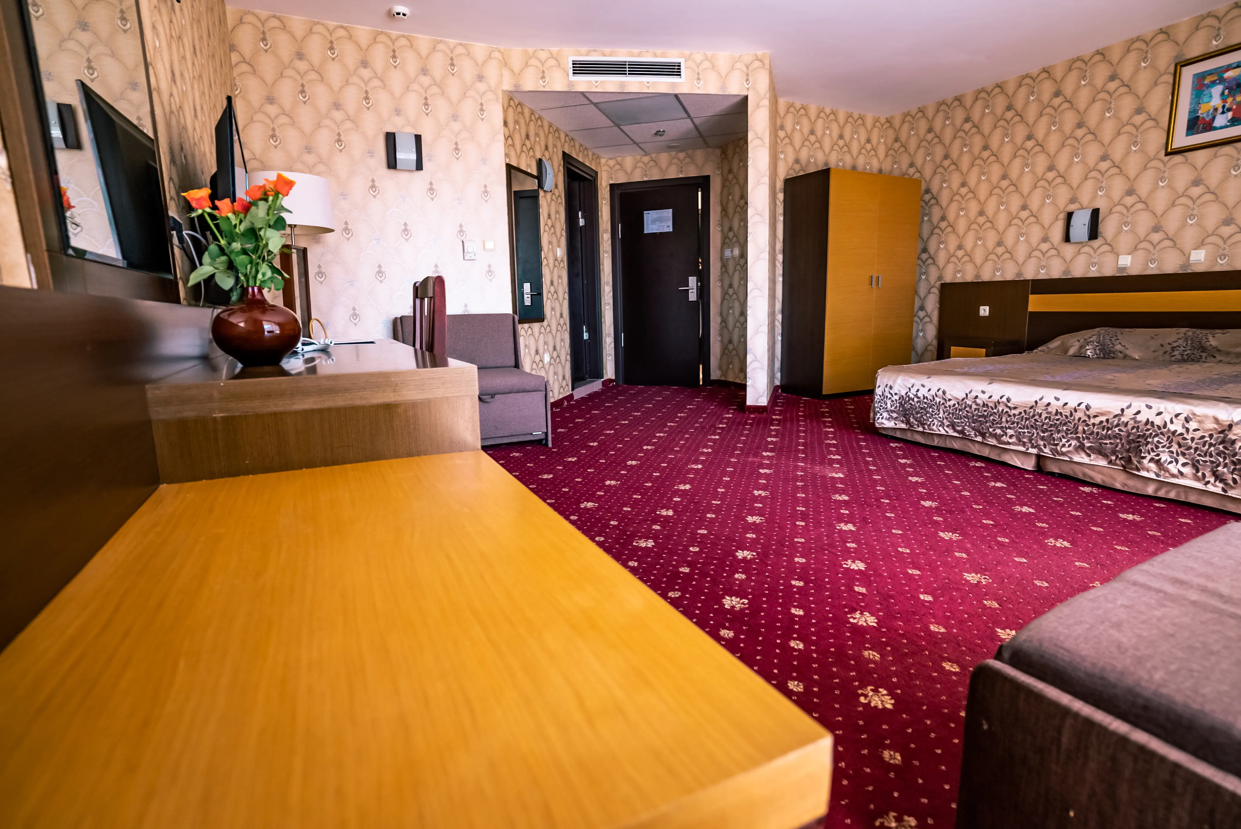 Dla max. 3 osób, Przestrzeń zewnętrzna: Balkon, Kanały telewizji: Polski, Angielski, Telefon w pokoju, prysznic, Powierzchnia pokoju: ok. 25 - 26 m2, Dostawka: sofa, Rodzaj podłogi: laminat, Sprzątanie cykliczne, 1 sypialnia, Maksymalna liczba osób dorosłych: 3, Maksymalna liczba dzieci: 2, Widok na ulicę, Liczba łazienek: 1, Liczba toalet: 1, Klimatyzacja: Klimatyzacja centralna, Działa w godzinach: 08:00-23:00Czerwiec, Lipiec, Sierpień, Wrzesień