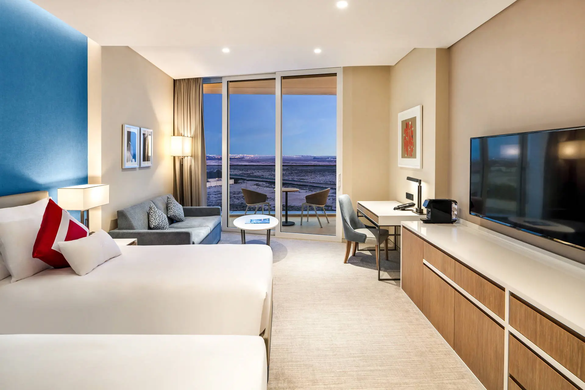 Położenie Obiekt oddalony jest od lotniska w Dubaju (DXB) o około 55 km (transfer około 1 godziny). Odległość od lotniska Fujairah wynosi około 160 km (transfer około 2,5 godziny). Do centrum Dubaju, gdzie znajdują się atrakcje takie jak Burj Khalifa i Dubai Mall, można dojechać taksówką w około pół godziny. Kompleks położony jest w dzielnicy Dubaj Jabal Ali. Plaża Plaża oddalona o ok. 800 m od hotelu. Przejście przez teren JA The Resort lub dojazd meleksem (kursują co ok. 15 min). Piaszczysta, prywatna. Leżaki, parasole oraz ręczniki bezpłatne dla Gości hotelowych. Do dyspozycji gości Całodobowa recepcja, lobby. 7 basenów o różnej temperaturze wody, 1 basen rodzinny, 1 basen tylko dla dorosłych, leżaki i parasole przy basenach. Atrakcje dla dorosłych: Calm Spa & Salon (zabiegi SPA, płatne), boiska do siatkówki plażowej, 4 oświetlone korty tenisowe (płatne), kort do squasha i badmintona, bilard, tenis stołowy, paintball (płatne), nauka jazdy konnej z instruktorem (płatne), 9 dołkowe profesjonalne, oświetlone pole golfowe (płatne), pole do minigolfa (płatne). Restauracje: Restauracja główna Eighty One. Uwaga! Obowiązkowy depozyt przy zakwaterowaniu w wysokości 300 AED za dobę za pokój możliwy jest do opłacenia za pomocą: blokady środków na karcie kredytowej lub debetowej, lub gotówką (zwrot depozytu gotówkowego możliwy jest tylko w walucie lokalnej - AED). Zwrot depozytu nastąpi przy wykwaterowaniu z hotelu. Pokoje Hotel JA Lake View oferuje łącznie 348 pokoi i apartamentów, w tym ponad 200 pokoi typu Standard o powierzchni ok. 40 m2. Pokoje standardowe maksymalnie przeznaczone są dla 2 osób dorosłych i 1 dziecka. Dostępne również pokoje Deluxe z widokiem na pole golfowe. Wszystkie pokoje wyposażone w indywidulnie sterowaną klimatyzację , telewizję satelitarną, sejf, mini bar, wi-fi oraz łazienkę (WC, wanna lub prysznic, suszarka, podstawowe kosmetyki). Wszystkie pokoje posiadają balkon. Internet Bezpłatne Wi-Fi w miejscach ogólnodostępnych oraz w pokojach. Wyżywienie Rodzaje wyżywienia i posiłki: All Inclusive obejmuje: Śniadania: 07:00 - 11:00. Obiady: 12:30 - 15:30. Kolacje: 18:30 - 23:00. Lokalne napoje alkoholowe i bezalkoholowe w restauracjach i barach. Restauracje: Restauracja główna „Eighty One” w formie bufetu. Restauracja „IBN MAJED” zlokalizowana w hotelu JA Beach Hotel. 22 restauracje a'la carte (płatne dodatkowo) z kuchnią azjatycką, włoską, śródziemnomorską, indyjską, czy z daniami z grilla. Bary: Bar przy basenie „Lake Side Cafe”: 09:00 - 18:30. Bar przy plaży „Anchoor”: 09:00 - 18:00. Bar przy basenie „Palmito” zlokalizowany w hotelu JA Beach Hotel. Bar w holu recepcji „Vasco da Gama” zlokalizowany w hotelu JA Beach Hotel. Pozostałe informacje: Napoje alkoholowe serwowane są od godziny 11:00. Hotel zastrzega sobie prawo do zmiany godzin oraz sposobu serwowania posiłków. Alkohol serwowany dla Gości powyżej 21 roku życia. Program sportowy i animacyjny Dla każdego: siatkówka plażowa, turnieje piłkarskie, bilard, rzutki, tenis stołowy, 2 duże siłownie. Dla dzieci: brodzik dla dzieci i niemowląt z regulowaną temperaturą, klub dla dzieci Pirates & Mermaids (od 4 do 12 lat). Za dodatkową opłatą: centrum sportów wodnych organizuje pływanie kajakiem, deską SUP, wakeboarding i wakesurfing. UWAGA: wymienione atrakcje są w pełni otwarte w czasie wysokiego sezonu. Poza sezonem ich dostępność może być ograniczona. Kategoria lokalna ***** Naszym zdaniem Kompleks trzech pięciogwiazdkowych hoteli w Dubaju (JA Beach Hotel, JA Palm Tree Court oraz JA Lake View Hotel) oferuje luksusowe zakwaterowanie w JA Lake View Hotel. Goście mogą odpocząć wśród zieleni, co tworzy oazę spokoju w tętniącym życiem mieście. Dzięki bliskości licznych atrakcji Dubaju, hotel jest doskonałym wyborem zarówno dla wymagających klientów, jak i rodzin z dziećmi. Liczne udogodnienia zapewniają komfortowy pobyt, wyróżniając ten obiekt w regionie. Strona www