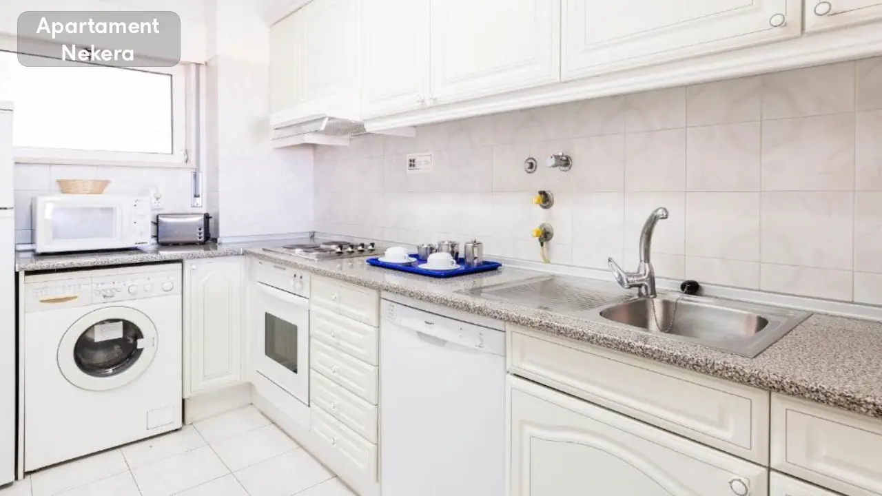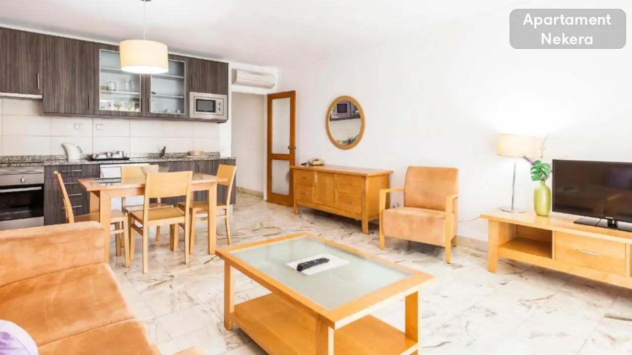 jedna z łóżkiem podwójnym, a druga z dwoma pojedynczymi łóżkami, - oddzielny salon z rozkładaną sofą, - kuchnia wyposażona w pralkę, zmywarkę, lodówkę, kuchenkę, piekarnik, kuchenkę mikrofalową, ekspres do kawy, czajnik elektryczny i toster, - dwie wyposażone łazienki (prysznic lub wanna, suszarka do włosów) - balkon z leżakami, stołem i krzesłami - klimatyzacja, - bezpłatne Wi-Fi - telefon - TV - sejf (płatny) - łóżeczko dziecięce bez dodatkowych opłat