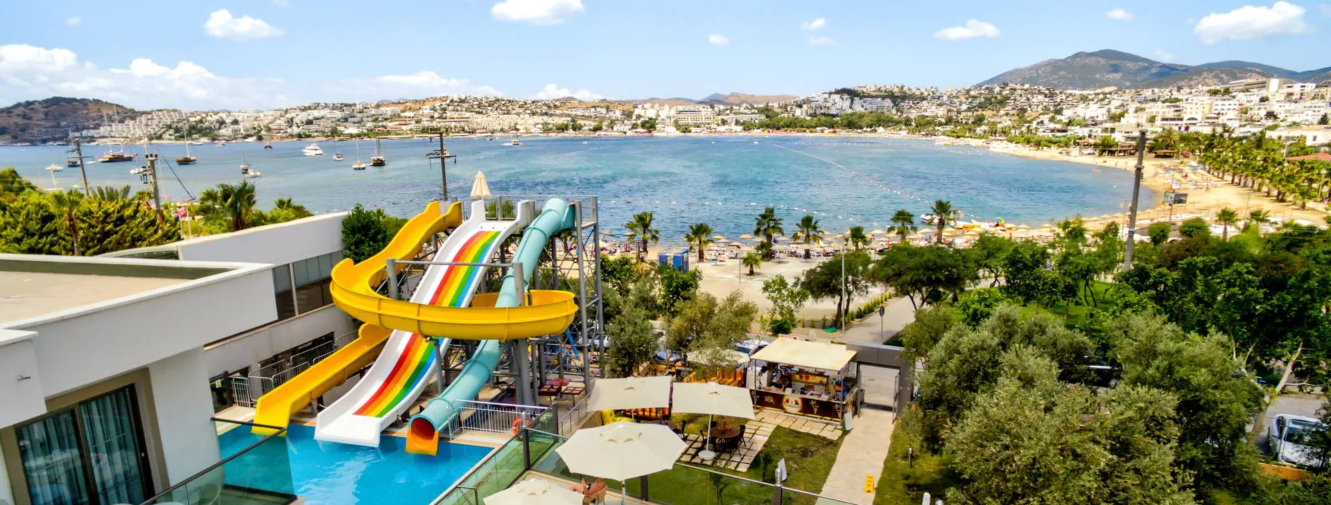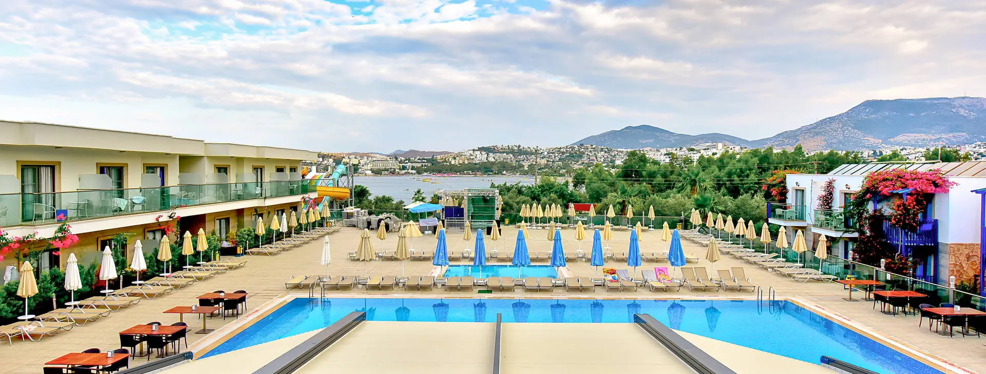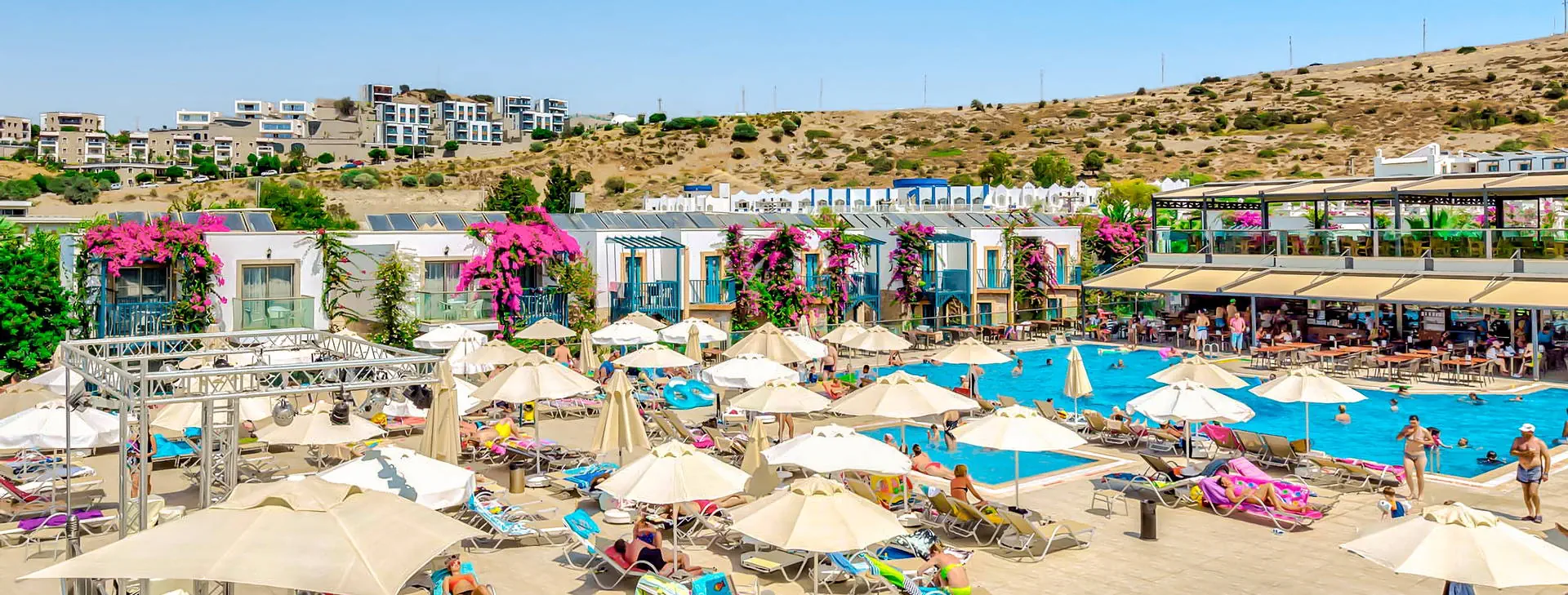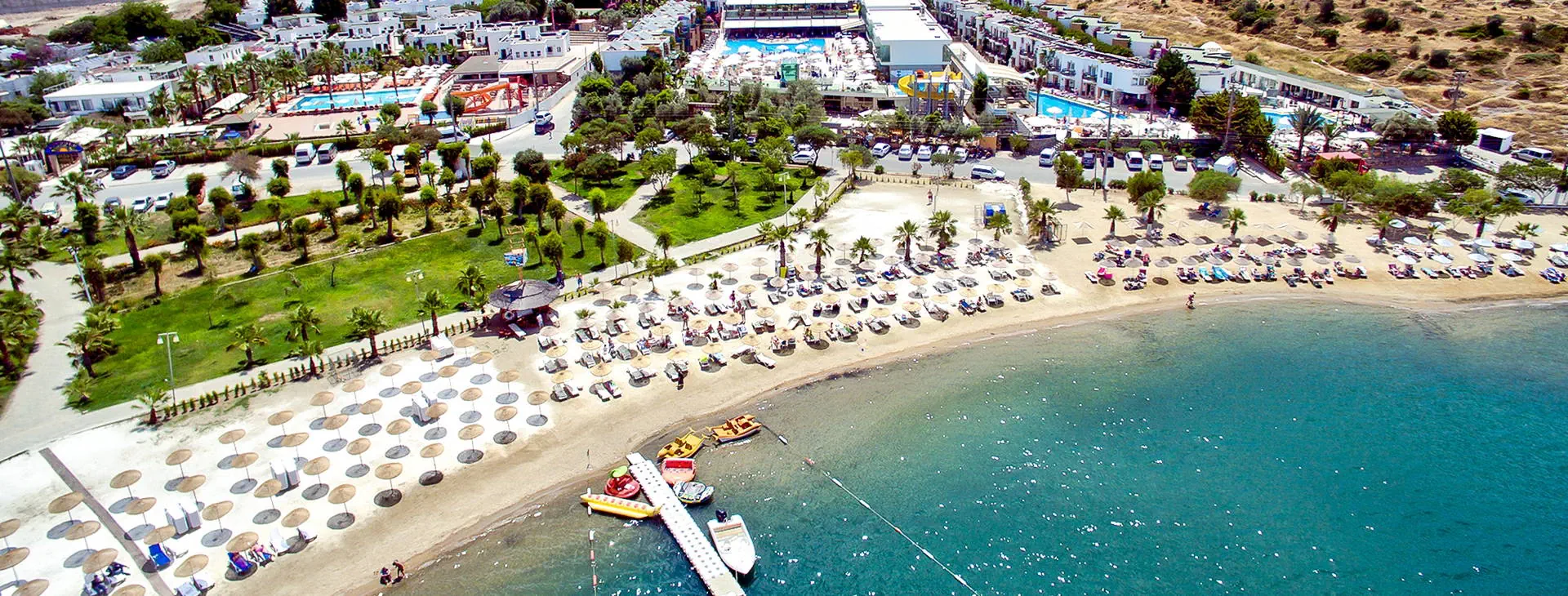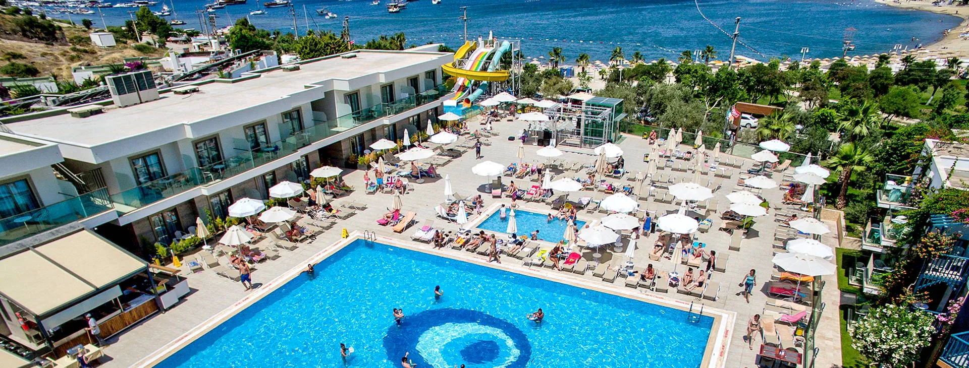Położenie: Hotel położony w miejscowości Gumbet, ok. 1 km od centrum oferującego szeroki wybór rozrywek (restauracje, bary, sklepy, dyskoteki), ok. 3 km od centrum Bodrum oraz ok. 35 km od lotniska Bodrum-Milas. Plaża: Piaszczysto-żwirowa, publiczna plaża znajduje się ok. 50 m od hotelu. Bezpłatne leżaki, parasole oraz ręczniki plażowe. Do dyspozycji gości: Recepcja 24 h, kantor, lobby, restauracja główna, restauracja a’la carte, 3 bary: pool, panorama i lobby bar. 5 basenów ze słodką wodą: jeden ze zjeżdżalniami czynnymi w godz. 11:00-12:00 oraz 15:00-16:00 - tylko dla dzieci powyżej 10 lat, 1 basen kryty, 3 baseny z wydzielonymi brodzikami dla dzieci. Ręczniki kąpielowe, leżaki i parasole przy basenach bezpłatne. Za opłatą: fryzjer, pralnia, mini market 24 h, fotograf, lekarz, kantor, sklep z pamiątkami, pokój gier. Wyżywienie: All Inclusive: śniadanie, lunch i obiadokolacja w formie bogatego bufetu. Przekąski serwowane w restauracji głównej (14:30-16:30), kawa, herbata, ciastka (17:00-18:00). Możliwość skorzystania z restauracji a’la carte (1 raz na pobyt, wymagana rezerwacja) w godz. (19:30-21:30). Lokalne napoje bezalkoholowe oraz alkoholowe (10:00-23:00). Za dodatkową opłatą: importowane napoje bezalkoholowe i alkoholowe, świeżo wyciskane soki, lody, kawa po turecku oraz lokalne napoje bezalkoholowe i alkoholowe serwowane po godz. 23:00. Program sportowy i animacyjny: Hotel prowadzi animacje dzienne i wieczorne w wersji soft. Ponadto: siłownia, łaźnia turecka, sauna sucha i parowa, tenis stołowy, bilard, rzutki. Za opłatą: zabiegi i masaże w centrum SPA, centrum sportów wodnych na plaży (narty wodne, banan, ringo, skutery wodne, parasailing). Internet: Bezpłatny Internet Wi-Fi w lobby i przy basenie. Kategoria lokalna: **** Strona www: