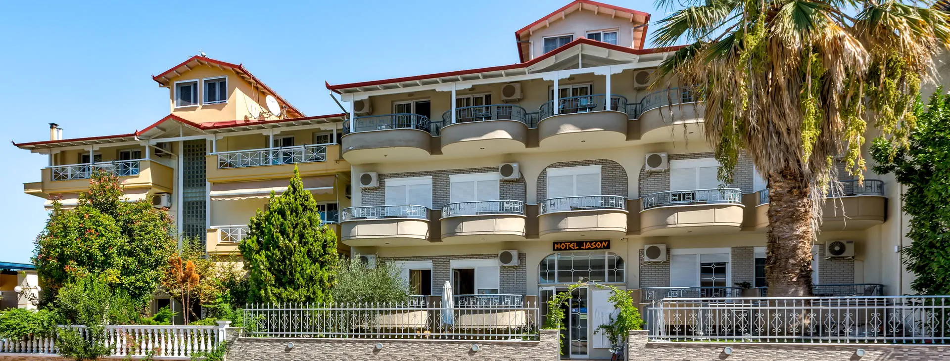 Położenie: Hotel oddalony o ok. 800 m od centrum Paralii, gdzie znajdują się sklepy, bary, restauracje, dyskoteka itp. (dojście do centrum przez pierwsze 400 m zwykłą drogą, następnie zaczyna się główny deptak Paralii prowadzący przez kolejne 400 m, aż do jej ścisłego centrum). Transfer z lotniska do obiektu trwa ok. 80 min. W odległości ok. 800 m od Aparthotelu, w centrum Paralii, znajduje się przystanek autobusu komunikacji miejskiej, z którego można dostać się do innych miasteczek Riwiery Olimpijskiej lub do Katerini, stolicy Prierii . Najbliższy sklep znajduje się ok. 150 m od obiektu. Cena nie obejmuje lokalnego podatku turystycznego w wysokości 1.50 EUR/pokój/dzień. Podatek jest obligatoryjny i płatny bezpośrednio w recepcji, przed zakwaterowaniem Klientów w hotelu Plaża: Obiekt zlokalizowany ok. 300 m od pięknej, piaszczystej i szerokiej plaży. Leżaki i parasole na plaży - dodatkowo płatne ok. 6 EUR/komplet lub przy zamówieniu czegoś w barze plażowym - bezpłatnie. Do dyspozycji gości: Recepcja (czynna tylko przy kwaterowaniu gości), ogród, basen bez wydzielonej części dla dzieci (ze słodką wodą), leżaki i parasole przy basenie - bezpłatne, brak ręczników kąpielowych. Obiekt posiada dostęp dla wózków inwalidzkich. Pokoje: Obiekt posiada 23 wygodnie umeblowane pokoje typu studia 2 - 3- 4 osobowe, które składają się z pokoju dziennego pełniącego jednocześnie funkcję aneksu kuchennego z pełnym wyposażeniem (lodówka, kuchenka, naczynia i sztućce, czajnik elektryczny, mini sejf, suszarka do włosów), łazienki z WC oraz balkonu (meble ogrodowe: krzesła + stolik). Ponadto klimatyzacja (na zamówienie, indywidualnie sterowana, dodatkowo płatna ok. 5 EUR/dzień), TV- sat, oraz Wi-Fi (bezpłatny). Łóżeczko dla dzieci do 2 lat bezpłatne – na wcześniejsze zamówienie. Środki czystości we własnym zakresie. Pokoje zostały odnowione w 2015 r. Wyżywienie: We własnym zakresie. Istnieje możliwość wykupienia wyżywienia w pobliskiej tawernie: śniadania (ok. 4 EUR), obiadokolacje (ok. 8 EUR). Internet: W ogólnodostępnych częściach hotelu oraz w pokojach inetrnet Wi-Fi - bezpłatny. Kategoria lokalna: ** Naszym zdaniem: Dla osób dysponujących skromniejszym budżetem oraz ceniących sobie niezależność. Polecamy rodzinom z dziećmi ze względu na nieco spokojniejszą okolicę oraz piękną, szeroką plażę.