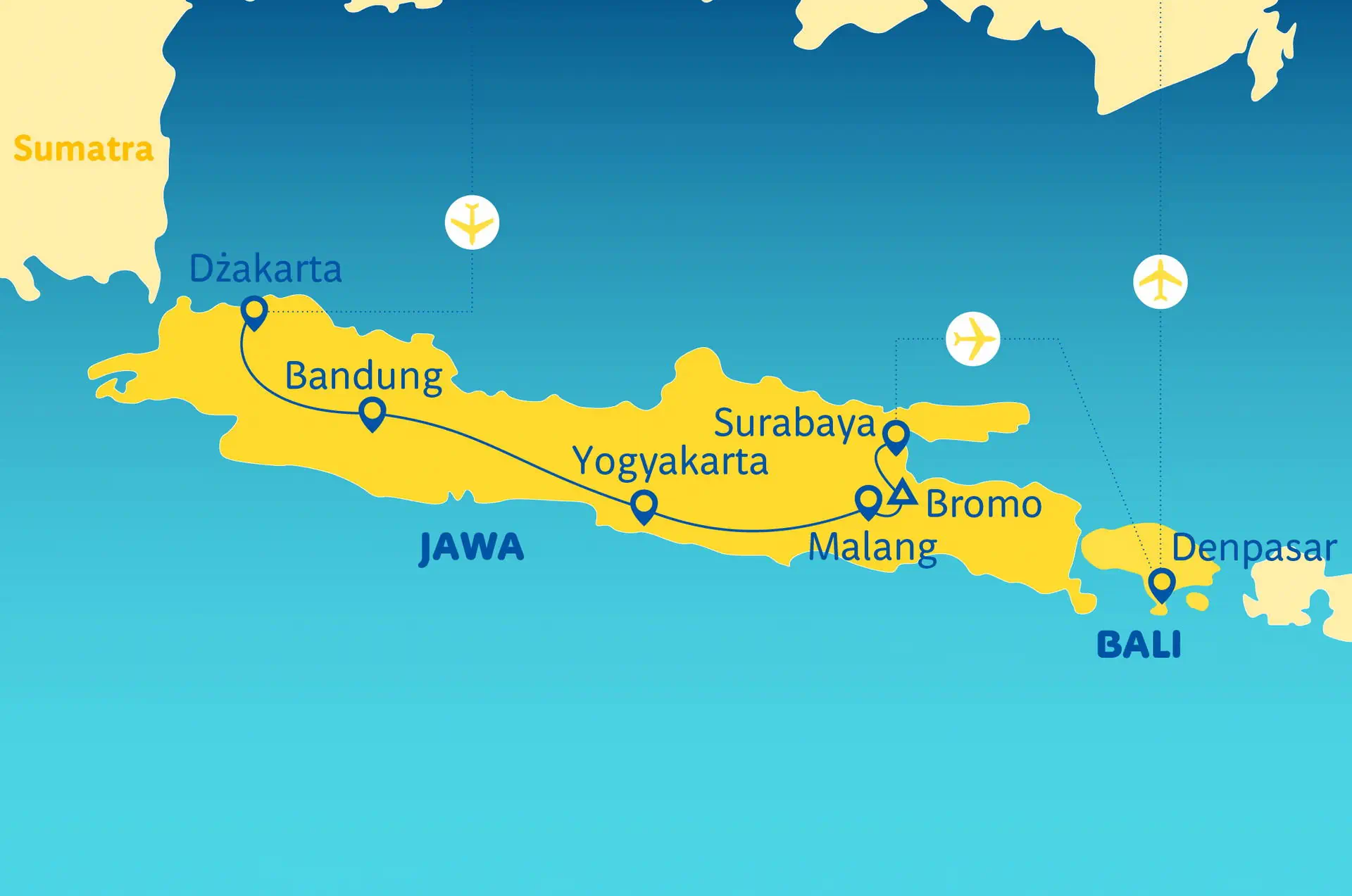 Do dyspozycji gości w hotelu restauracja i bar Zakwaterowanie Hotele odpowiadające standardowi ***/**** w ocenie organizatora, wyjątek! 1 noc: w Bromo Cottage, kiedy to zapewniamy hotele **, z braku wyższej klasy hoteli. Pokoje: 2- osobowe, we wszystkich hotelach są wyposażone w łazienki z wc, klimatyzację i TV. Pokój 3- osobowy, to z reguły pokój 2 - osobowy z dostawką (dostawka na ogół w formie łóżka polowego lub rozkładanej kanapy). Część pobytowa Hotele: opisy poszczególnych hoteli w części dotyczących wczasów na Bali.