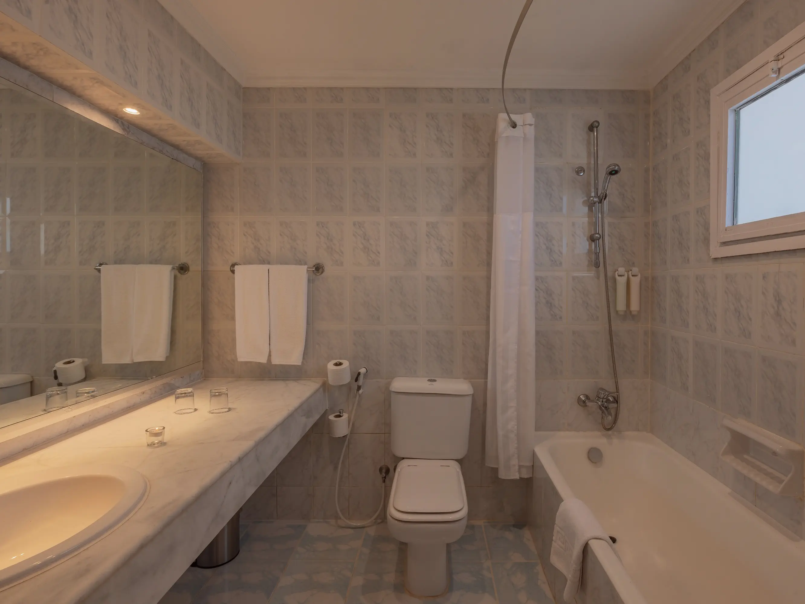 Dla max. 3 osób, Przestrzeń zewnętrzna: Taras, Kanały telewizji: Polski, Angielski, Telefon w pokoju, wanna, Powierzchnia pokoju: ok. 30 m2, Dostawka: sofa, Rodzaj podłogi: płytki, Sprzątanie codziennie, 1 sypialnia, Maksymalna liczba osób dorosłych: 2, Maksymalna liczba dzieci: 2, Od strony morza, Liczba łazienek: 1, Liczba toalet: 1, Zestaw do parzenia kawy i herbaty, Klimatyzacja: Klimatyzacja indywidualna