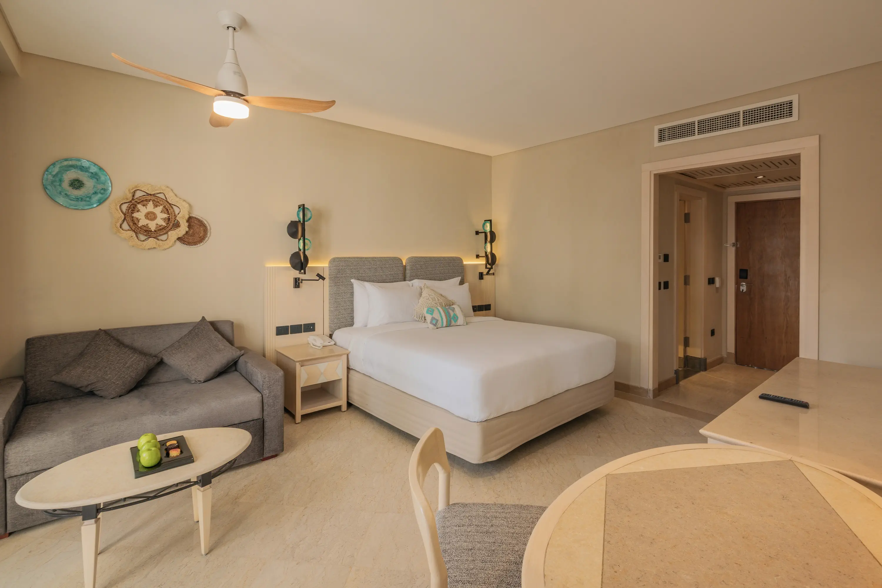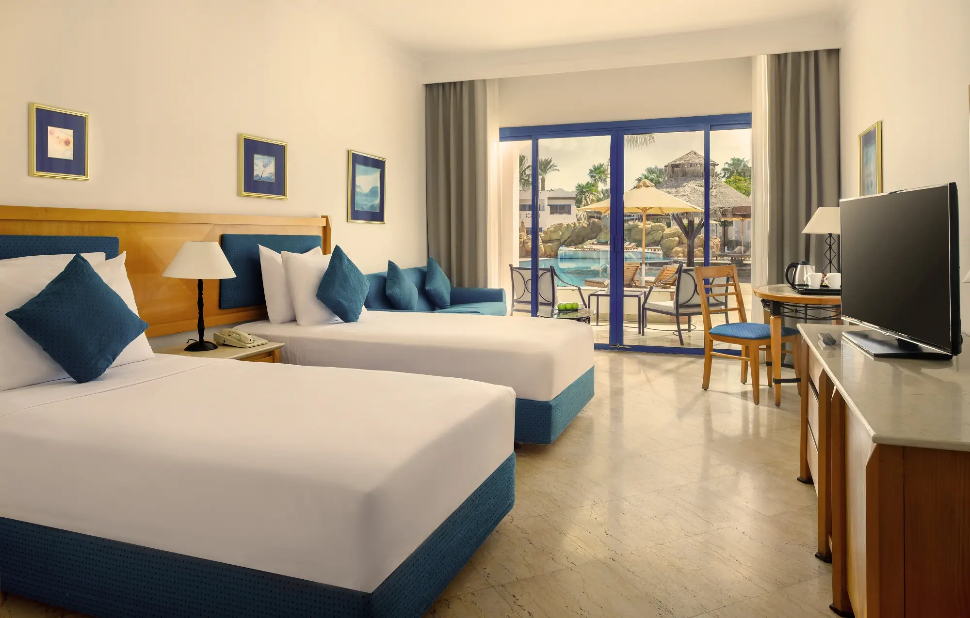 Dla max. 4 osób, Przestrzeń zewnętrzna: Balkon lub taras, Kanały telewizji: Polski, Angielski, Telefon w pokoju, wanna, Powierzchnia pokoju: ok. 36 m2, Dostawka: sofa, Rodzaj podłogi: płytki, Sprzątanie codziennie, 1 sypialnia, Maksymalna liczba osób dorosłych: 3, Maksymalna liczba dzieci: 2, Frontalny widok na basen, Liczba łazienek: 1, Liczba toalet: 1, Zestaw do parzenia kawy i herbaty, Klimatyzacja: Klimatyzacja indywidualna