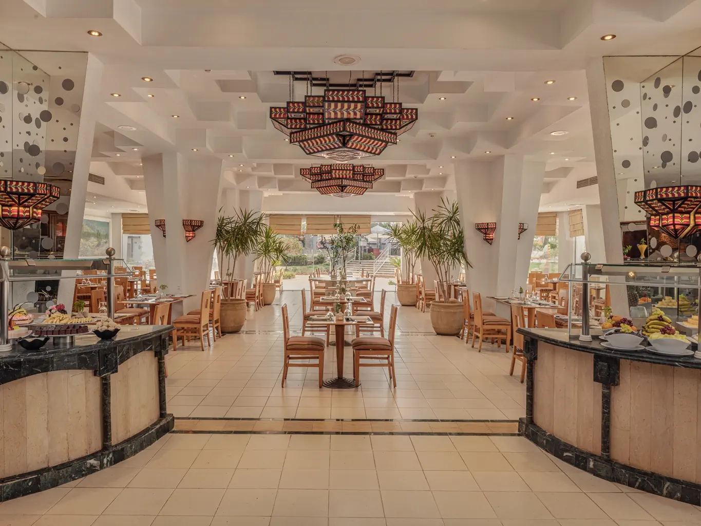 Śniadanie (07:00 - 10:00) - El Wadi Restaurant, stół szwedzki, Obiad (12:30 - 15:00) - El Wadi Restaurant, stół szwedzki ¹⁾, Przekąski (16:00 - 17:00) - Al Fresco, stół szwedzki ¹⁾, Kolacja (19:00 - 21:30) - El Wadi Restaurant, stół szwedzki, Al Fresco Restaurant (19:00 - 21:00) (19:00 - 21:00), raz podczas pobytu, Kuchnia: Włoska, Wymagana rezerwacja: Tak ¹⁾, Flambi Bar (10:00 - 00:00), Napoje: alkohole lokalne (10:00 - 00:00), Havan Bar (10:00 - 00:00), Napoje: alkohole lokalne (10:00 - 00:00), Beach Bar (10:00 - 17:00), Napoje: napoje bezalkoholowe (10:00 - 17:00), napoje bezalkoholowe ¹⁾, alkohole lokalne ¹⁾, lody ¹⁾, pakiety dla nowożeńców ¹⁾, pakiety urodzinowe (na życzenie) ¹⁾, cukiernia, room service ¹⁾ ¹⁾ - dodatkowo płatne