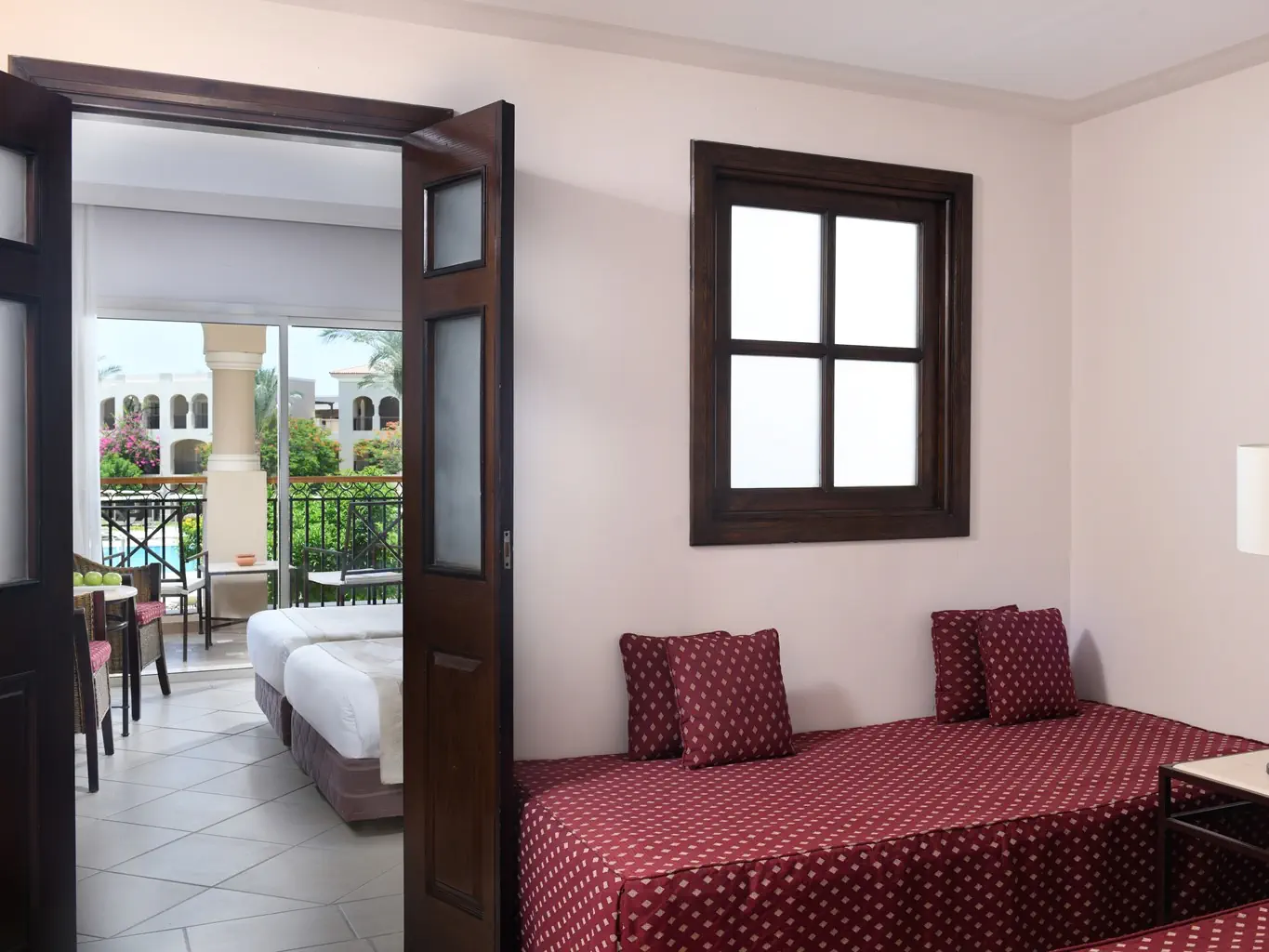 Dla max. 3 osób, Przestrzeń zewnętrzna: Balkon lub taras, Kanały telewizji: Polski, Angielski, Telefon w pokoju, prysznic, Powierzchnia pokoju: ok. 37 m2, Rodzaj podłogi: płytki, Sprzątanie codziennie, 1 sypialnia, Drzwi przesuwne, Maksymalna liczba osób dorosłych: 3, Maksymalna liczba dzieci: 1, Widok na basen, Liczba łazienek: 1, Liczba toalet: 1, Zestaw do parzenia kawy i herbaty, Klimatyzacja: Klimatyzacja indywidualna