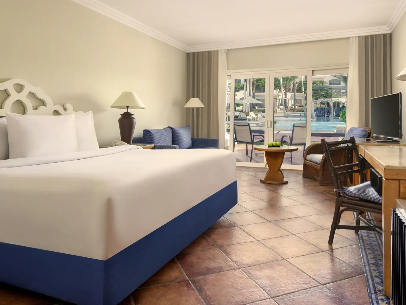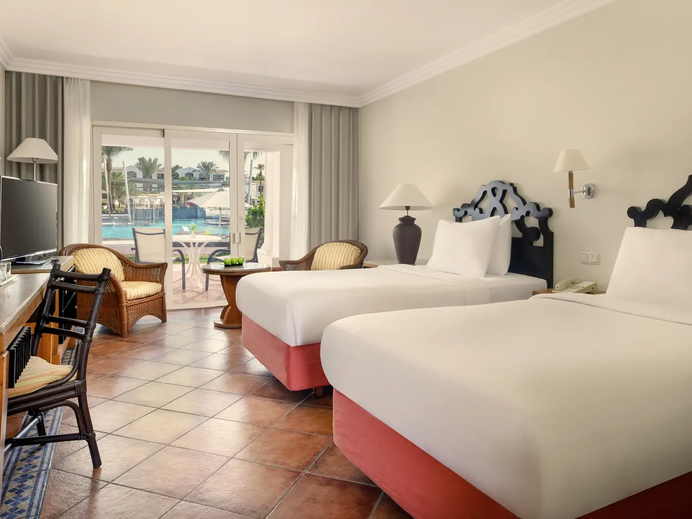 Dla max. 4 osób, Przestrzeń zewnętrzna: Balkon, Kanały telewizji: Polski, Angielski, Telefon w pokoju, wanna, Powierzchnia pokoju: ok. 34 m2, Dostawka: łóżko rozkładane, Rodzaj podłogi: płytki, Sprzątanie codziennie, 1 sypialnia, Maksymalna liczba osób dorosłych: 3, Maksymalna liczba dzieci: 2, Frontalny widok na basen, Liczba łazienek: 1, Liczba toalet: 1, Zestaw do parzenia kawy i herbaty, Klimatyzacja: Klimatyzacja centralna, Działa w godzinach: 24h, przez cały rok