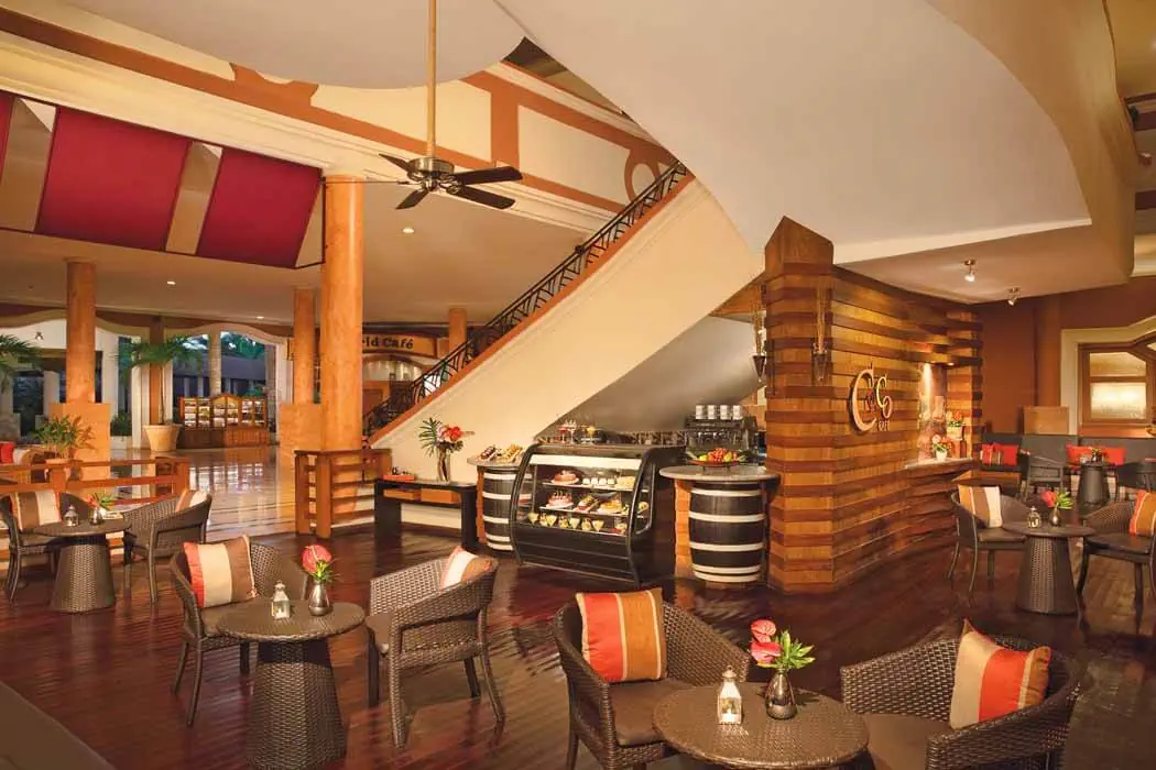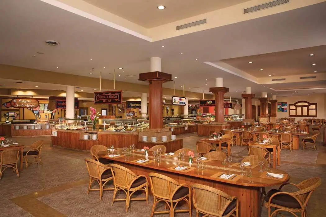 - restauracje, restauracje a la carte (6), bary (9) All Inclusive (24h) - śniadanie (07:00-11:00), obiad (12:30-15:00), kolacja (18:00-23:00) - przekąski (12:00-18:00) - wybrane lokalne napoje alkoholowe i bezalkoholowe Restauracje a la carte Wymagana rezerwacja. - "Seaside Grill" międzynarodowa - jedna wizyta podczas pobytu gratis - "Portofino" włoska - j.w - "Oceana" owoce morza - j.w - "La Trattoria" włoska - j.w - "Himitsu" azjatycka - j.w - `"Bordeaux" francuska - j.w