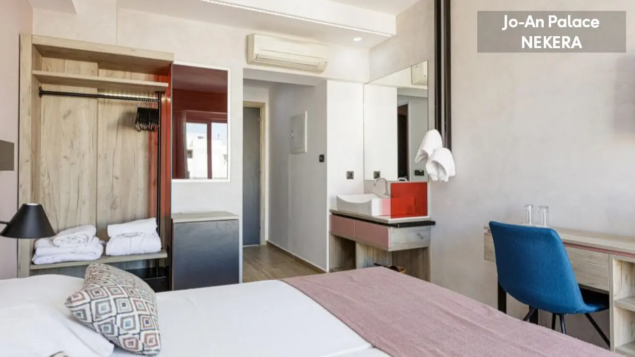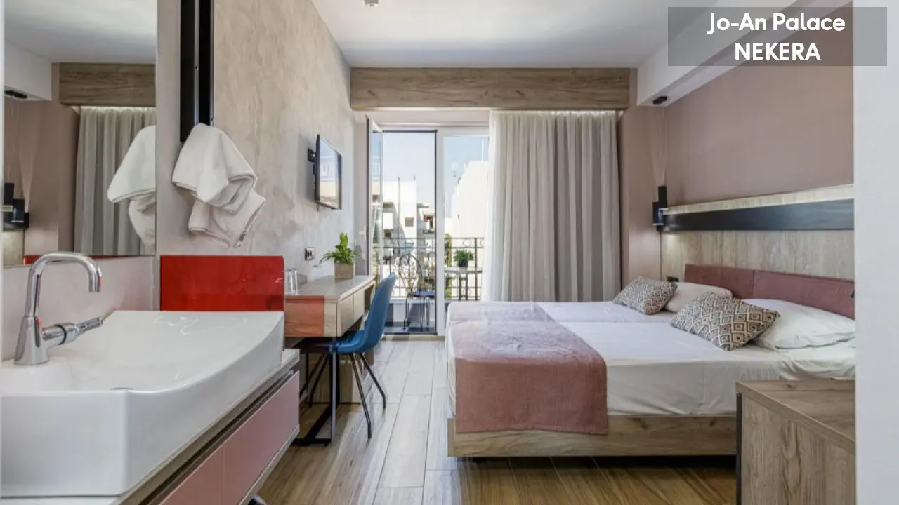Hotel Jo An Palace na Krecie wyróżnia się świeżo odnowionym, wysokim standardem oraz eleganckimi wnętrzami, które tworzą atmosferę pełnego komfortu. Położony w samym sercu miasta Rethymno, pozwala gościom cieszyć się bliskością zabytków, restauracji i lokalnych atrakcji. To idealna baza zarówno do miejskich spacerów, jak i odkrywania uroków całej wyspy. Każdy pobyt staje się tu połączeniem wygody, stylu i autentycznej kreteńskiej gościnności.