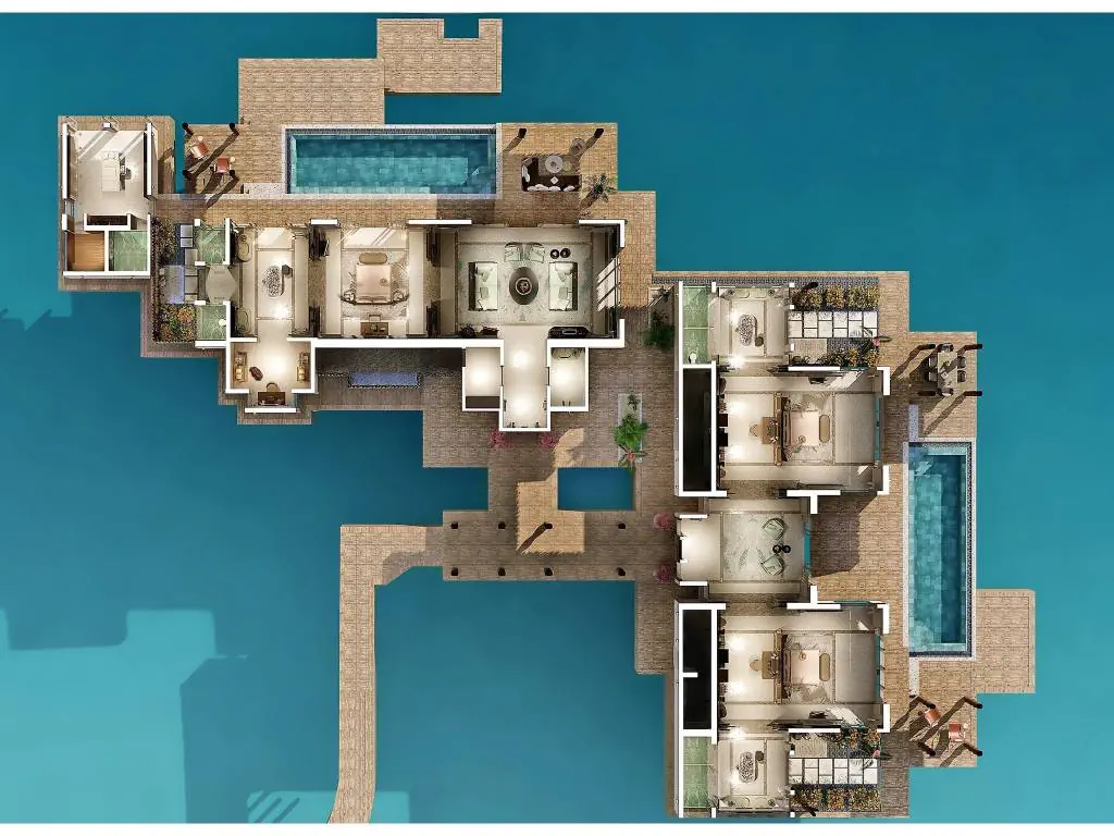 Dla max. 9 osób, Przestrzeń zewnętrzna: Taras, Kanały telewizji: Angielski, Telefon w pokoju, Aneks kuchenny, wanna i prysznic , jacuzzi, Powierzchnia pokoju: ok. 400 - 990 m2, Dostawka: łóżko standardowe, Rodzaj podłogi: płytki, Sprzątanie codziennie, Salon, część jadalniana, miejsce do pracy, 3 sypialnie, Drzwi łączące między pokojami, Drzwi przesuwne, Maksymalna liczba osób dorosłych: 6, Maksymalna liczba dzieci: 3, Concierge (bezpłatnie), Kwiaty i owoce, Bezpłatna pralnia, Sauna, Prysznic na świeżym powietrzu, Frontalny widok na plażę,Widok na lagunę,Widok panoramiczny,Frontalny widok na basen,Widok na basen i morze,Widok na basen,Frontalny widok na morze,Widok na morze, Prywatny basen, Liczba łazienek: 3, Liczba toalet: 4, Kuchenka mikrofalowa, Zestaw do parzenia kawy i herbaty, Klimatyzacja: Klimatyzacja indywidualna