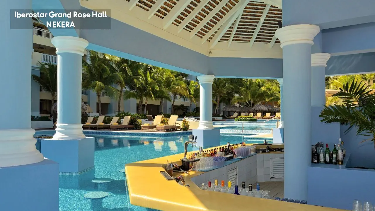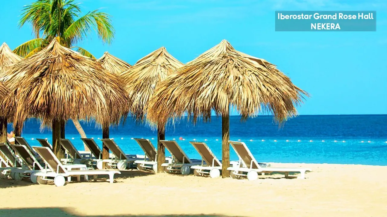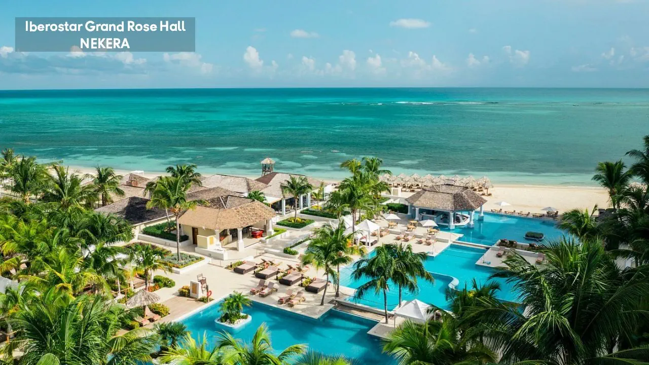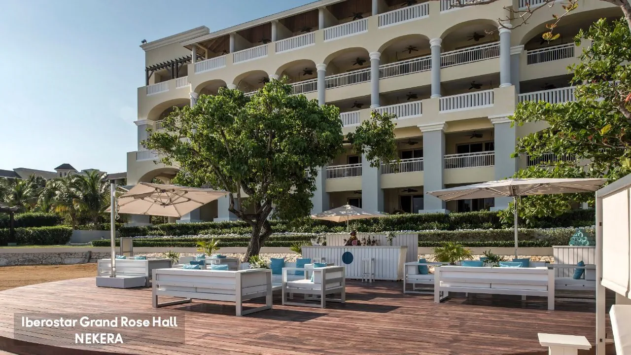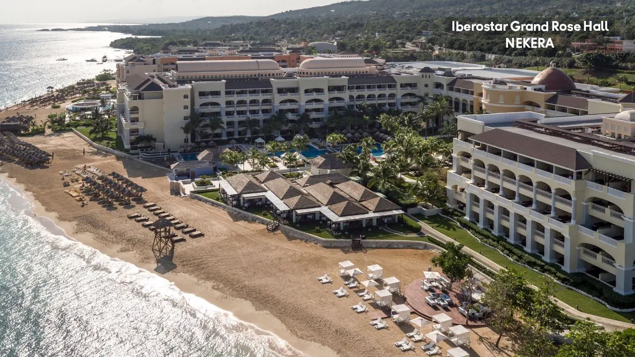 luksusowy hotel renomowanej sieci Iberostar z 295 pokojami zbudowany w stylu kolonialnym. Hol powitalny z recepcją z widokiem na morze, restauracja główna serwująca posiłki w formie bufetu, 5 restauracji a la carte (m. in. kuchnia gourmet, włoska, jamajska, japońska, Surf & Turf), restauracja na plaży, 5 barów (m.in. bar w lobby, bar przy basenie typu swim-up) oraz pasaż handlowy. W zadbanym zespole ogrodowym znajdują się 3 baseny z whirlpoolem oraz tarasy słoneczne. Leżaki, parasole, ręczniki kąpielowe przy basenie bez opłaty. Goście hotelu Iberostar Grand mogą korzystać z infrastruktury 2 siostrzanych obiektów należących do kompleksu – Iberostar Rose Hall Beach oraz Iberostar Rose Hall Suites. Uwaga! Hotel przeznaczony tylko dla dorosłych!