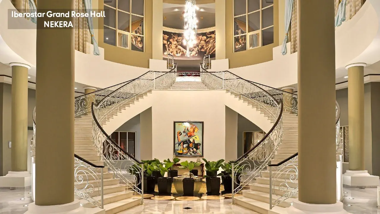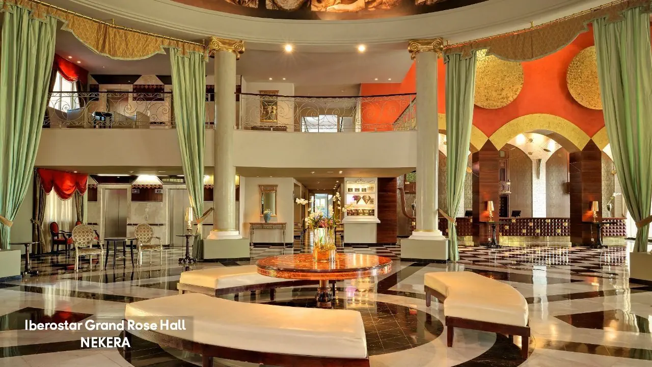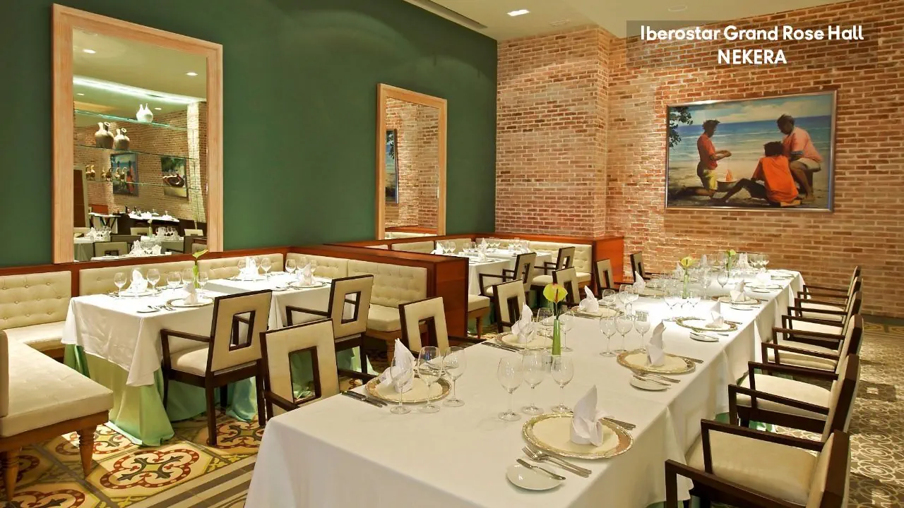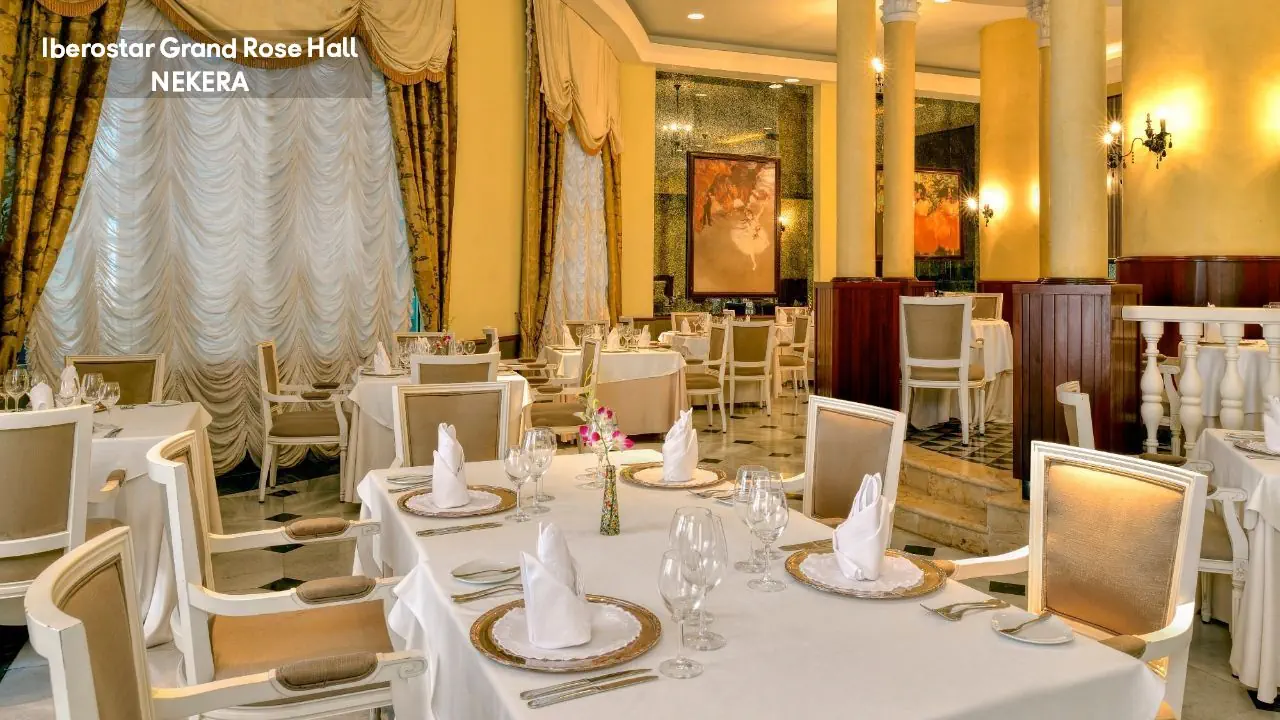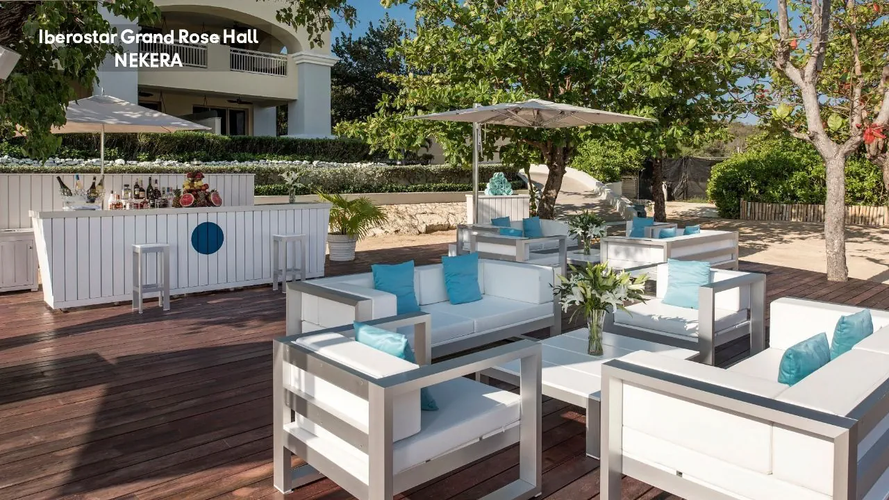 luksusowy hotel renomowanej sieci Iberostar z 295 pokojami zbudowany w stylu kolonialnym. Hol powitalny z recepcją z widokiem na morze, restauracja główna serwująca posiłki w formie bufetu, 5 restauracji a la carte (m. in. kuchnia gourmet, włoska, jamajska, japońska, Surf & Turf), restauracja na plaży, 5 barów (m.in. bar w lobby, bar przy basenie typu swim-up) oraz pasaż handlowy. W zadbanym zespole ogrodowym znajdują się 3 baseny z whirlpoolem oraz tarasy słoneczne. Leżaki, parasole, ręczniki kąpielowe przy basenie bez opłaty. Goście hotelu Iberostar Grand mogą korzystać z infrastruktury 2 siostrzanych obiektów należących do kompleksu – Iberostar Rose Hall Beach oraz Iberostar Rose Hall Suites. Uwaga! Hotel przeznaczony tylko dla dorosłych!