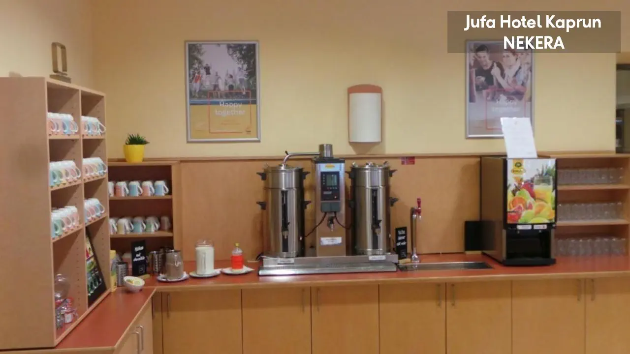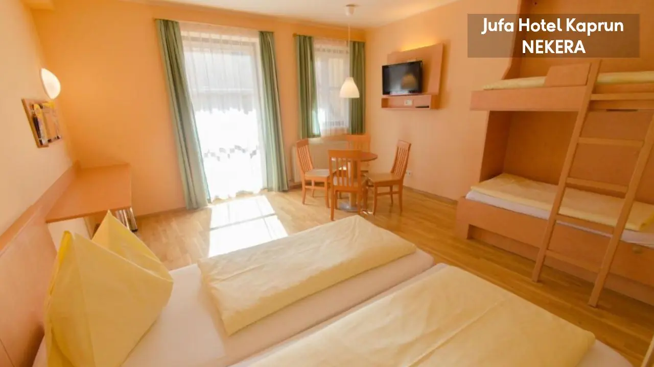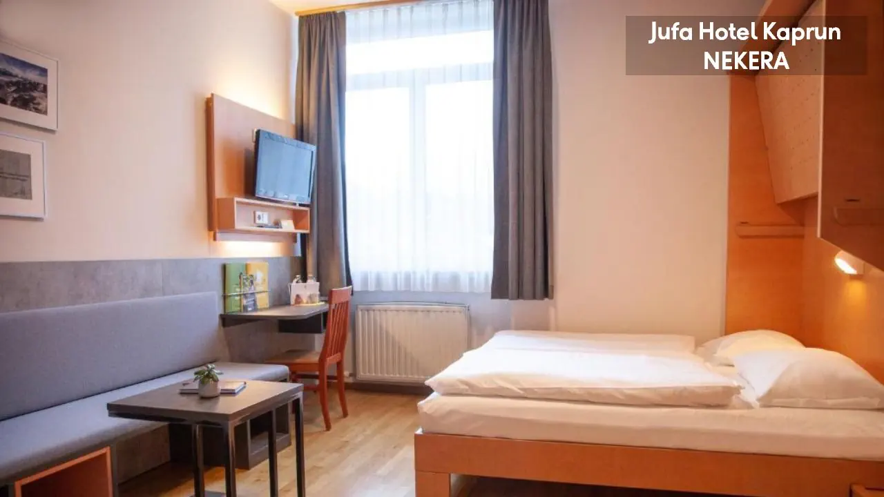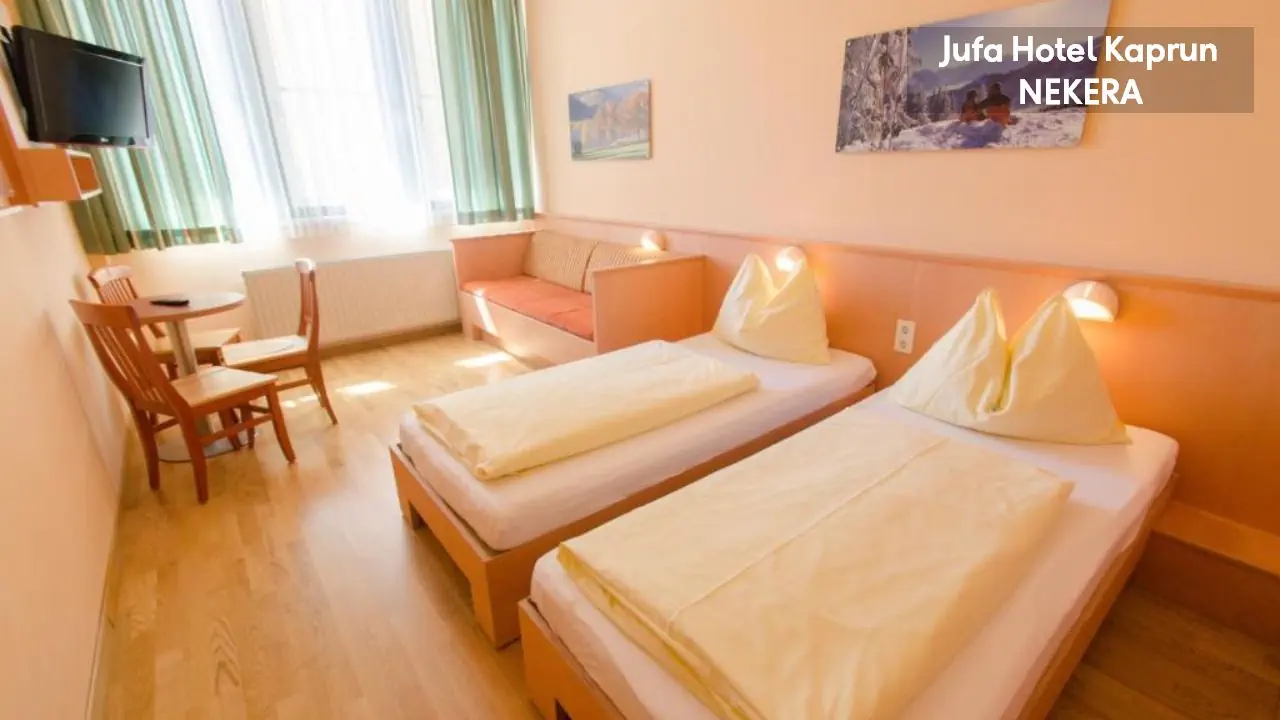 budżetowy hotel Jufa Kaprun składa sie z 66 pokoi, recepcja, lobby, sala konferencyjna, narciarnia, restauracja, bar, taras.