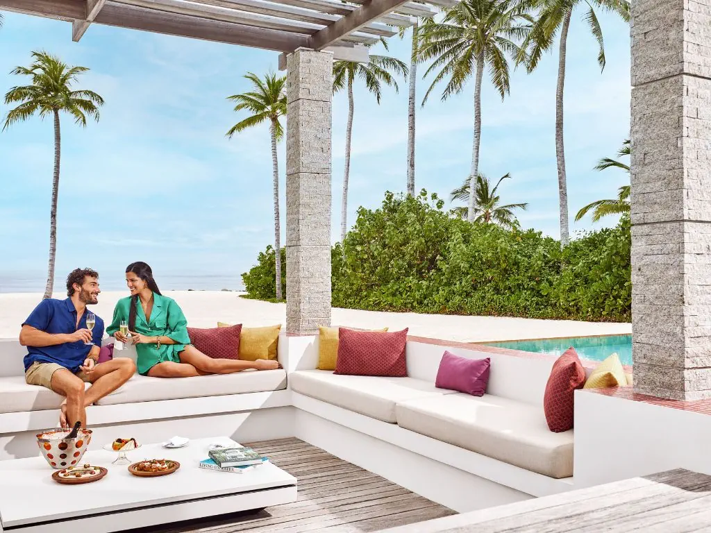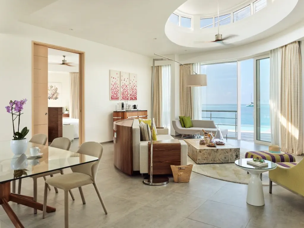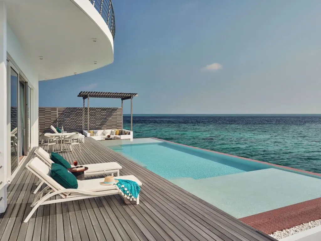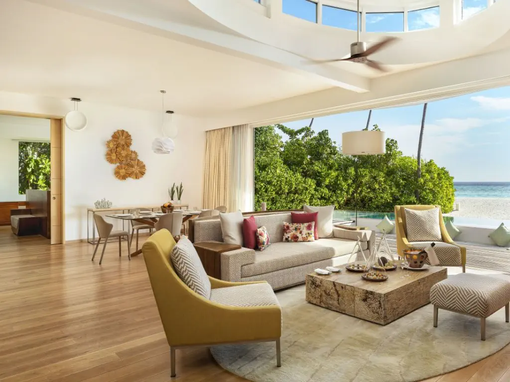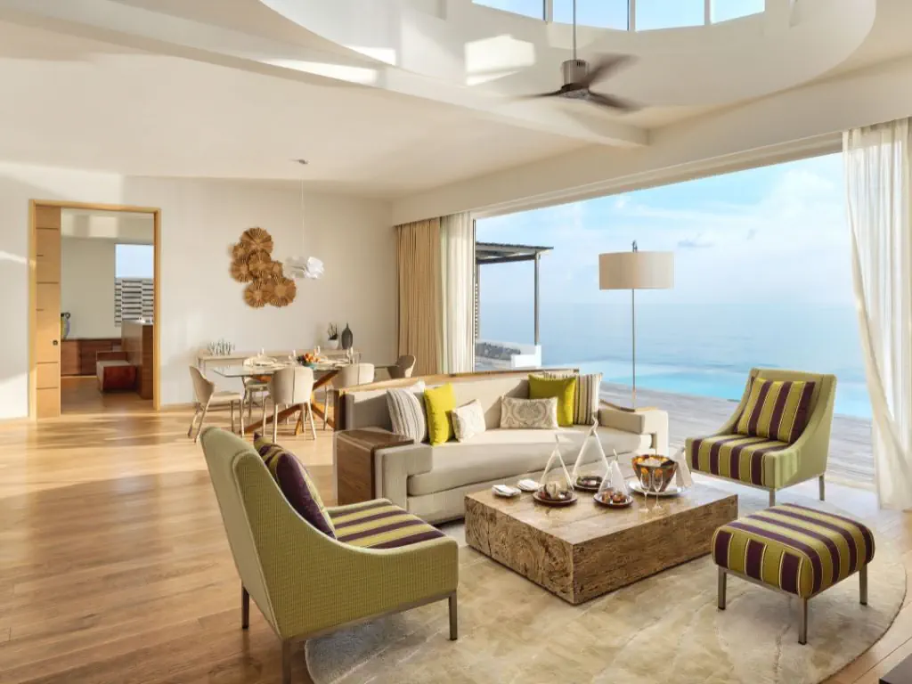 Dla max. 4 osób, Przestrzeń zewnętrzna: Taras, Kanały telewizji: Angielski, Telefon w pokoju, wanna i prysznic , Powierzchnia pokoju: ok. 351 m2, Dostawka: łóżko standardowe, Rodzaj podłogi: płytki, Sprzątanie codziennie, Salon, miejsce do pracy, 1 sypialnia, Drzwi przesuwne, Maksymalna liczba osób dorosłych: 3, Maksymalna liczba dzieci: 3, Concierge (bezpłatnie), Kwiaty i owoce, Prysznic na świeżym powietrzu, Frontalny widok na plażę,Od strony morza, Bezpośredni dostęp do plaży, Prywatny basen, Liczba łazienek: 1, Liczba toalet: 2, Zestaw do parzenia kawy i herbaty, Klimatyzacja: Klimatyzacja indywidualna
