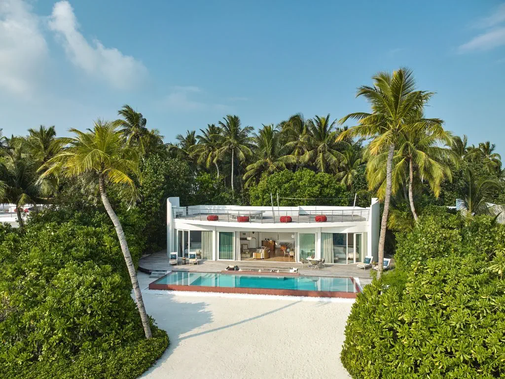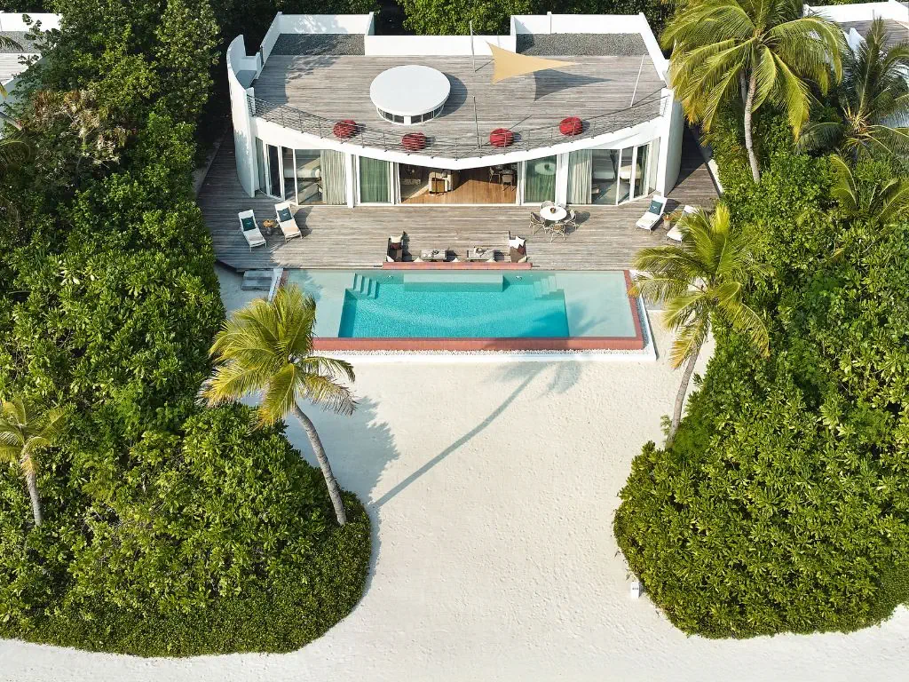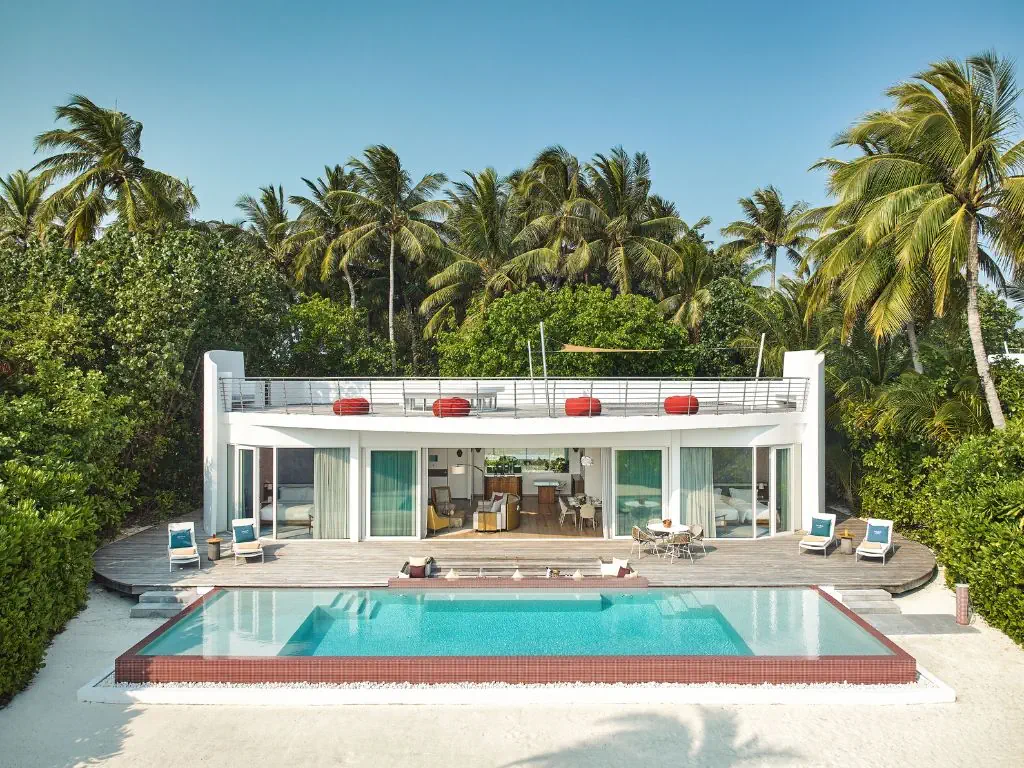 Dla max. 6 osób, Przestrzeń zewnętrzna: Taras, Kanały telewizji: Angielski, Telefon w pokoju, wanna i prysznic , Powierzchnia pokoju: ok. 680 m2, Dostawka: łóżko standardowe, Rodzaj podłogi: drewno, Sprzątanie codziennie, Salon, część jadalniana, miejsce do pracy, 2 sypialnie, Drzwi przesuwne, Maksymalna liczba osób dorosłych: 5, Maksymalna liczba dzieci: 5, Concierge (bezpłatnie), Kwiaty i owoce, Prysznic na świeżym powietrzu, Frontalny widok na plażę,Od strony morza, Bezpośredni dostęp do plaży, Prywatny basen, Liczba łazienek: 2, Liczba toalet: 3, Zestaw do parzenia kawy i herbaty, Klimatyzacja: Klimatyzacja indywidualna