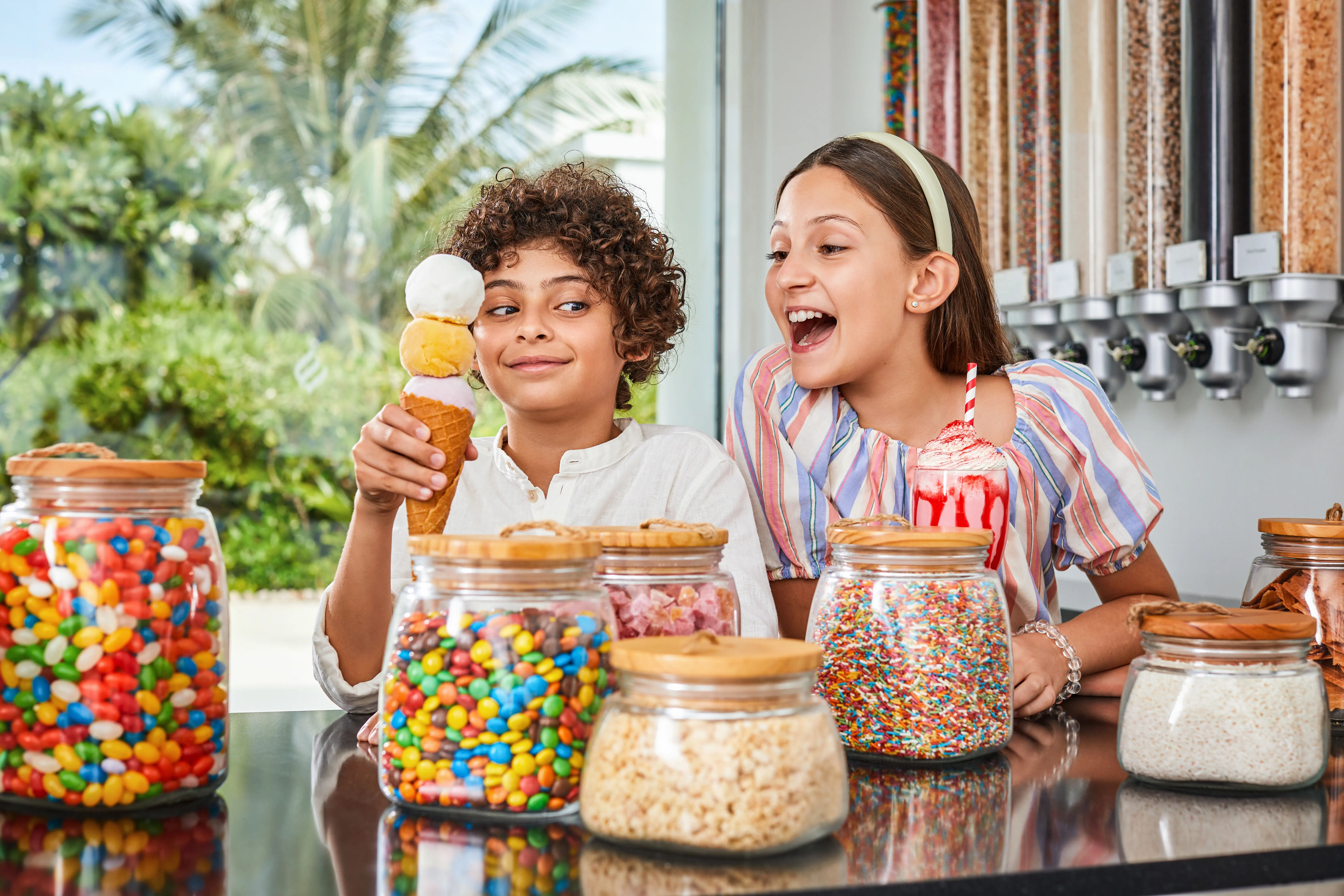 Śniadanie (07:00 - 10:30) - Glow, stół szwedzki, Śniadanie (24h) - In Villa Dining, a la carte ¹⁾, Obiad (11:30 - 15:00) - Shimmers, a la carte ¹⁾, Obiad (12:30 - 15:00) - Glow, a la carte ¹⁾, Obiad (24h) - In Villa Dining, a la carte ¹⁾, Przekąski (10:00 - 19:00) - Cafe Lounge, a la carte ¹⁾, Przekąski (10:30 - 18:00) - Gelateria, a la carte ¹⁾, Przekąski (24h) - In Villa Dining, a la carte ¹⁾, Podwieczorek (10:00 - 19:00) - Cafe Lounge, a la carte ¹⁾, Podwieczorek (10:00 - 00:00) - Glow Bar, a la carte ¹⁾, Kolacja (18:30 - 22:00) - Kayto, a la carte, Kolacja (18:30 - 22:00) - Shimmers, a la carte, Kolacja (18:30 - 22:00) - Glow, a la carte, Kolacja (24h) - In Villa Dining, a la carte ¹⁾, Późna kolacja (24h) - In Villa Dining, a la carte ¹⁾, Glow (06:30 - 22:00) (06:30 - 22:00), bez limitu, Kuchnia: owoce morza , międzynarodowa, Wymagana rezerwacja: Nie, Kayto (18:30 - 22:00) (18:30 - 22:00), bez limitu, Kuchnia: Japońska, owoce morza , lokalna, Wymagana rezerwacja: Nie, Shimmers (11:30 - 22:00) (11:30 - 22:00), bez limitu, Kuchnia: Grecka, śródziemnomorska, owoce morza , Wymagana rezerwacja: Nie, napoje bezalkoholowe ¹⁾, alkohole lokalne ¹⁾, wybrane alkohole importowane ¹⁾, lody ¹⁾, pakiety dla nowożeńców ¹⁾, pakiety urodzinowe (na życzenie), cukiernia ¹⁾, room service ¹⁾, Minibar w pokoju ¹⁾ ¹⁾ - dodatkowo płatne