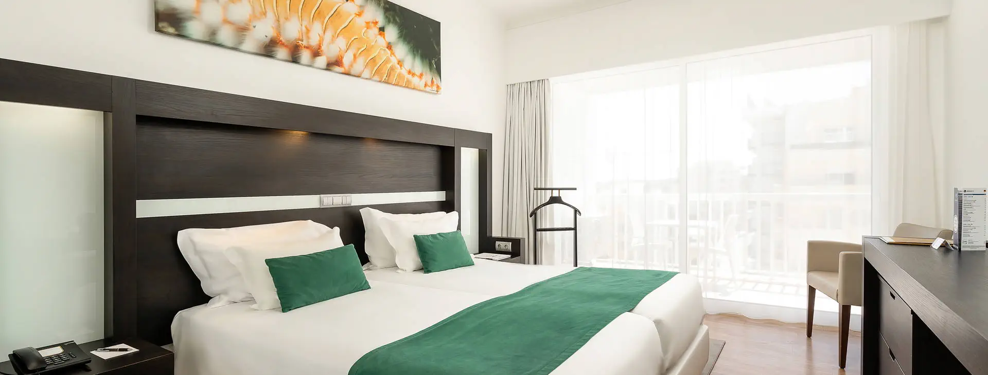 Położenie: Hotel znajduje się w centrum Praia da Rocha – w okolicy, restauracje i bary. Do centrum Portimao ok. 2km, do przystanku autobusowego ok. 50m. Do lotniska w Faro ok. 75 km. Cena nie obejmuje lokalnego podatku turystycznego w wysokości ok.1,5 Eur/os./dzień. Podatek jest obligatoryjny i płatny bezpośrednio w recepcji, przed zakwaterowaniem Klientów w hotelu. Plaża: Hotel położony 50 metrów od najsłynniejszej plaży Algarve – Praia da Rocha (przejście przez ulicę, zejście na plażę schodami). Leżaki i parasole na plaży płatne (ok. 10 Eur/os). Do dyspozycji gości: Recepcja, lobby, windy, restauracja bufetowa, bar, taras słoneczny z leżakami i parasolami, basen (słodka woda), sale konferencyjne. Dodatkowo płatne: pralnia, wypożyczalnia samochodów, parking. Hotel zapewnia ręczniki basenowe (depozyt ok. 20 Eur). Hotel nie akceptuje zwierząt. Hotel zastrzega sobie prawo do pobrania depozytu w wysokości 250EUR/pokój. Pokoje: Hotel posiada 183 wyremontowanych i nowocześnie urządzonych pokoi różnego typu: Wszystkie z łazienką (suszarka do włosów), TVsat, telefonem, sejfem (możliwa opłata). - Pokój standardowy (ok. 19m2) - dla max 3 osób, z widokiem na miasto, balkon francuski. - Pokój superior (ok. 28m2) - dla max. 3 osób, z bocznym widokiem na morze oraz balkonem. - Pokój premium (ok. 28m2) - dla max. 3 osób. Wszystkie z frontalnym widokiem na morze oraz balkonem. Wyżywienie: Śniadania w formie bufetu. Możliwość dopłaty do obiadokolacji (HB), HB+ (do kolacji szklanka wody i kieliszek wina lub napój bezalkoholowy lub szklanka piwa) i do pełnego wyżywienia (FB) - bufet/a'la carte. Dieta bezglutenowa na zapytanie. Program sportowy i animacyjny: Muzyka na żywo kilka razy w tygodniu. Bezpłatna siłownia. Za dodatkową opłatą centrum SPA: sauna, łaźnia turecka, basen wewnętrzy, masaże, zabiegi na ciało. Internet: Wi-Fi bezpłatnie w całym hotelu. Kategoria lokalna: **** Strona www: