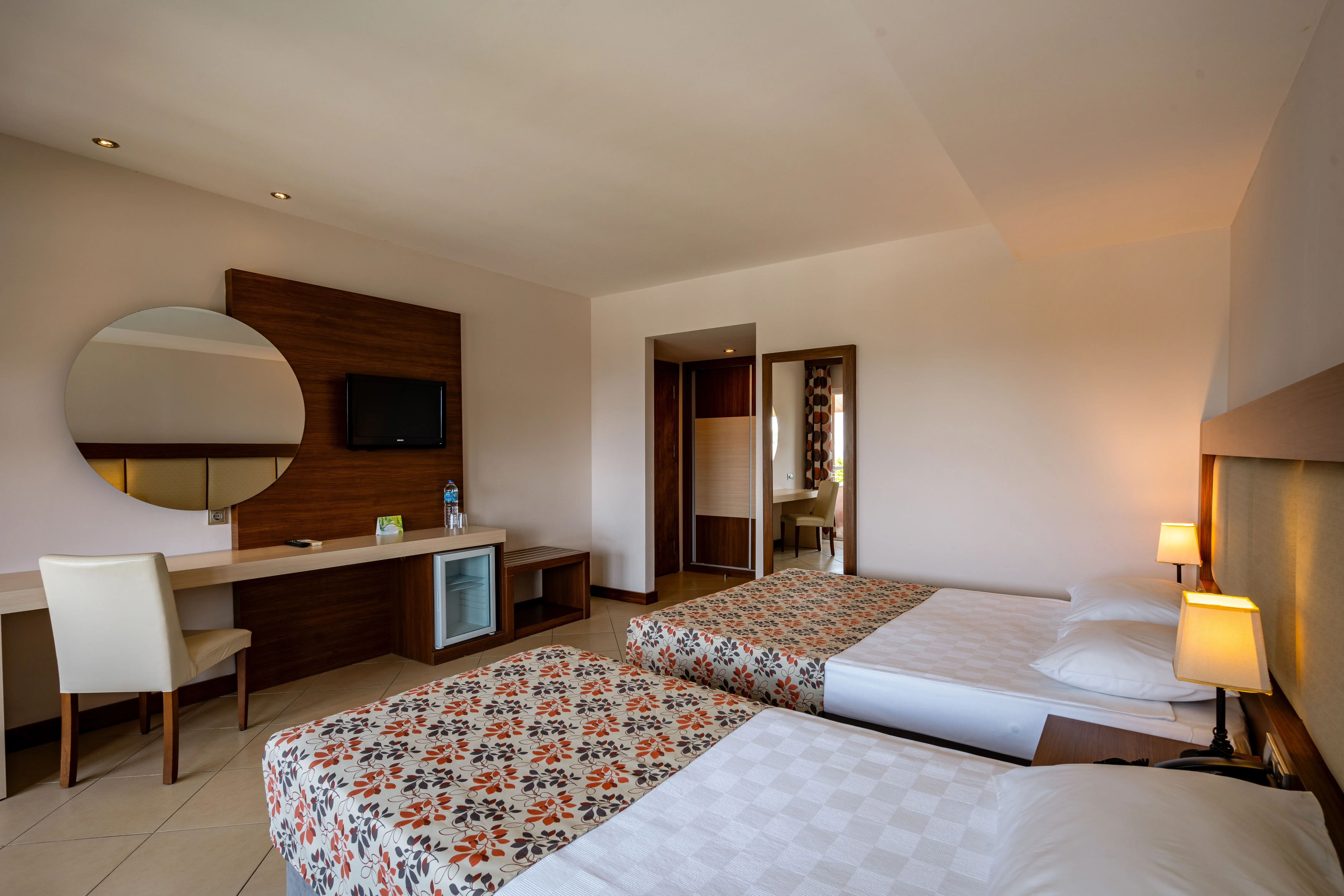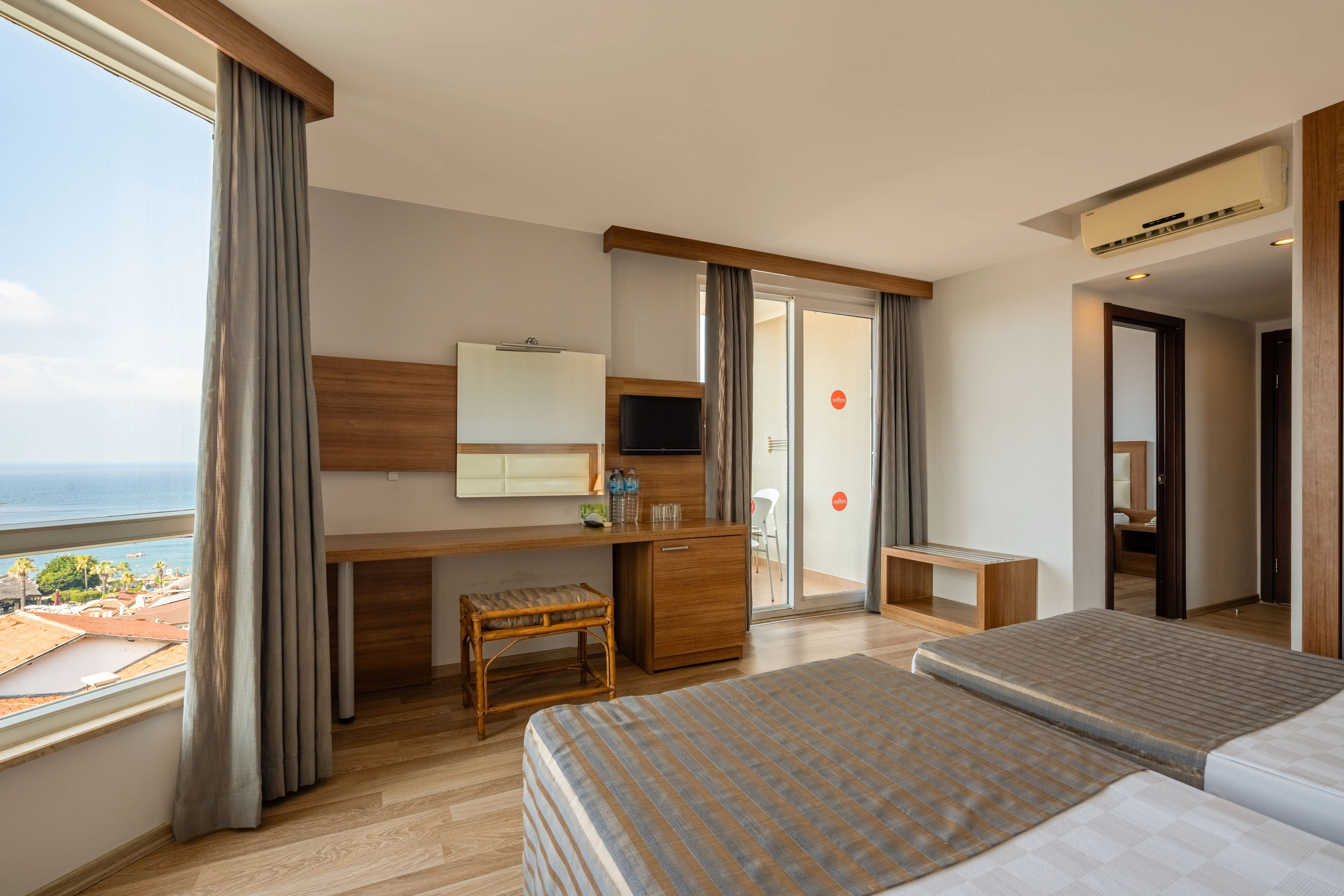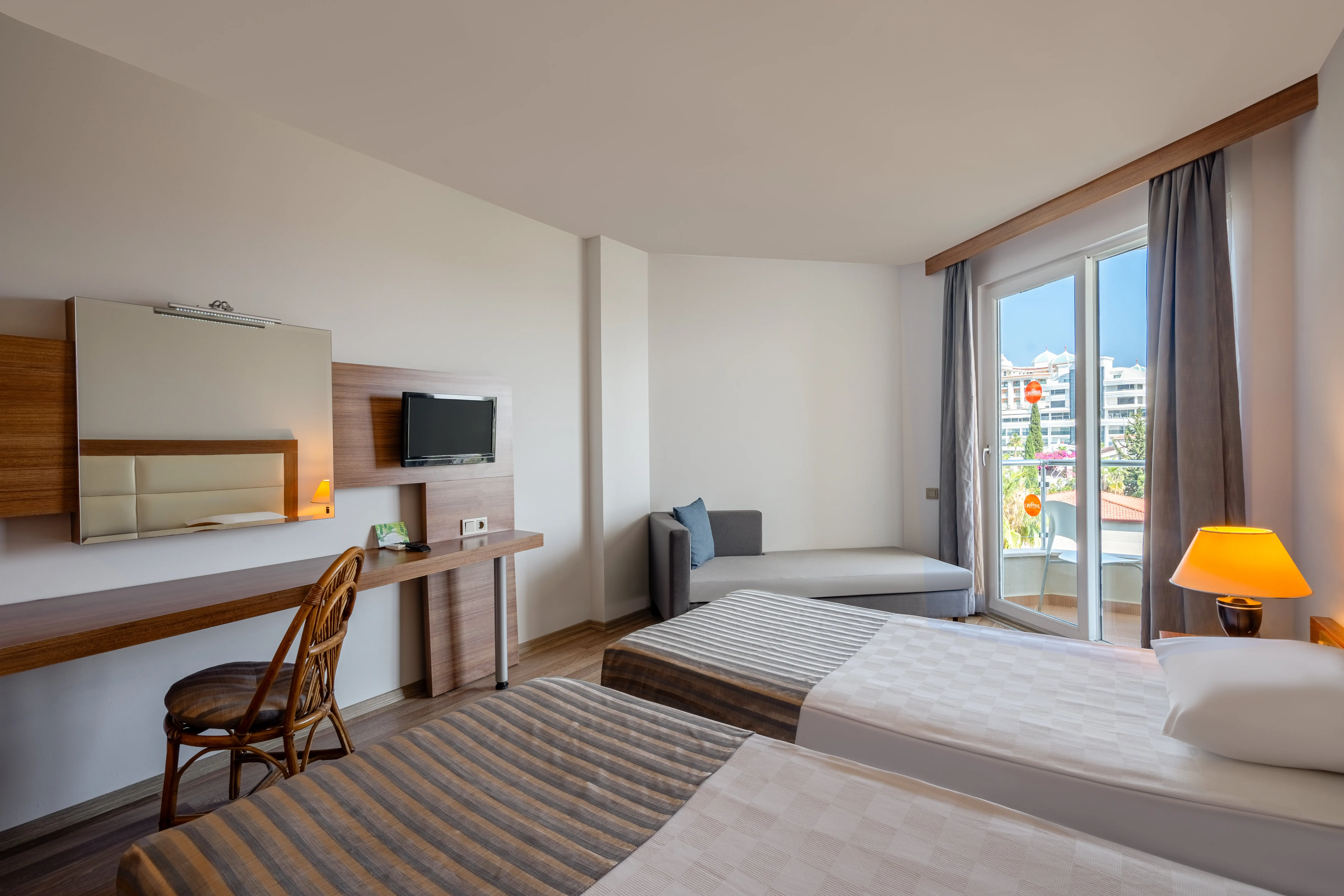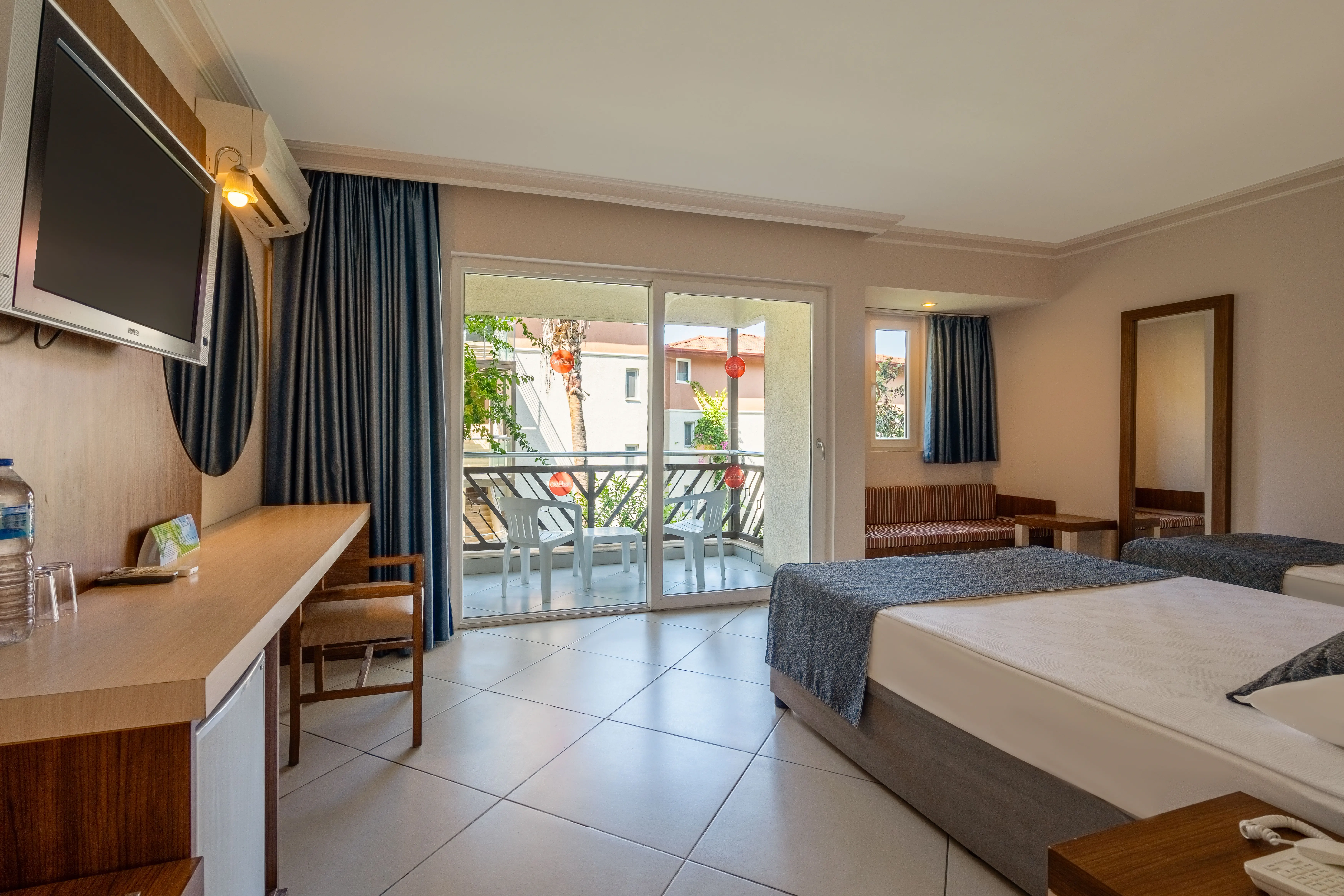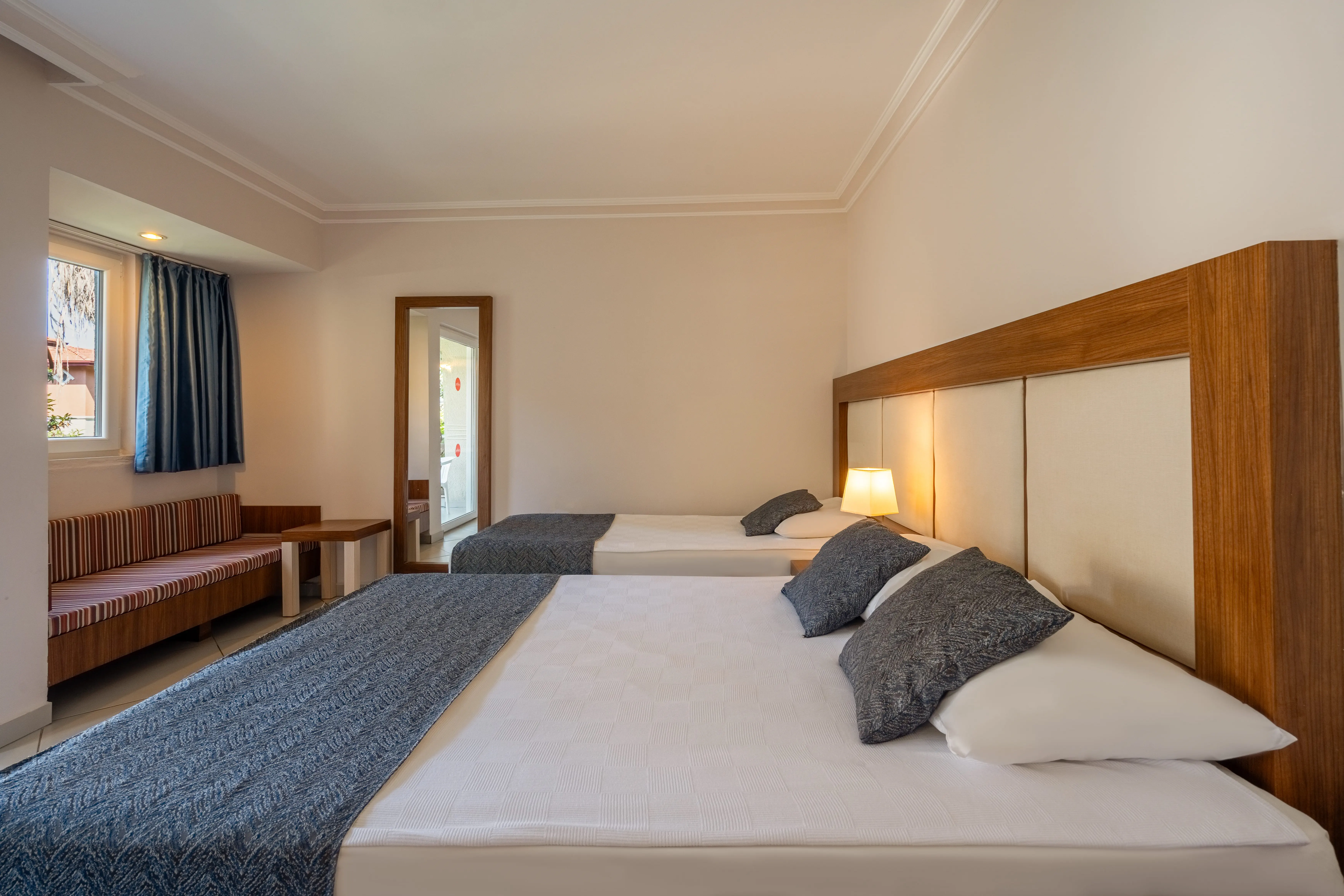 Dla max. 3 osób, Przestrzeń zewnętrzna: Balkon, Telefon w pokoju, prysznic, Powierzchnia pokoju: ok. 23 - 25 m2, Dostawka: sofa, Rodzaj podłogi: płytki, Sprzątanie codziennie, 1 sypialnia, Maksymalna liczba osób dorosłych: 3, Maksymalna liczba dzieci: 2, Widok na ogród,Widok panoramiczny, Liczba łazienek: 1, Liczba toalet: 1, Klimatyzacja: Klimatyzacja indywidualna