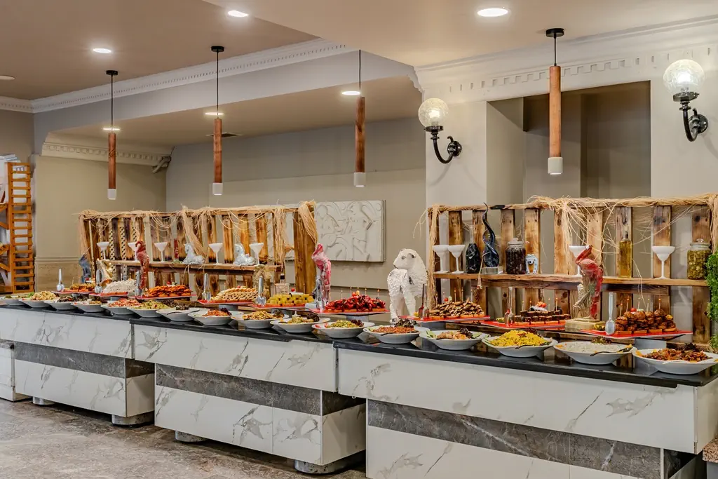 Śniadanie (07:00 - 10:00) - Main Restaurant, stół szwedzki, Późne śniadanie (10:00 - 11:00) - Main Restaurant, stół szwedzki, Obiad (12:30 - 14:00) - Main Restaurant, stół szwedzki, Przekąski (12:00 - 16:00) - Snack Bar, stół szwedzki, Podwieczorek (16:00 - 17:00) - Snack Bar, stół szwedzki, Kolacja (19:00 - 21:00) - Main Restaurant, stół szwedzki, Późna kolacja (23:00 - 00:00) - Main Restaurant, stół szwedzki, Sunset A La Carte Restaurant (19:00 - 21:00) (19:00 - 21:00), raz podczas pobytu, Kuchnia: owoce morza , Wymagana rezerwacja: Tak, LOBBY BAR (10:00 - 21:00), Napoje: alkohole lokalne, napoje bezalkoholowe (10:00 - 21:00), POOL BAR (10:00 - 23:59), Napoje: alkohole lokalne, napoje bezalkoholowe (10:00 - 23:59), DISCO BAR (00:01 - 01:30), Napoje: alkohole lokalne, napoje bezalkoholowe (00:01 - 01:30), napoje bezalkoholowe, alkohole lokalne, lody, pakiety dla nowożeńców, pakiety urodzinowe (na życzenie), cukiernia, Minibar w pokoju