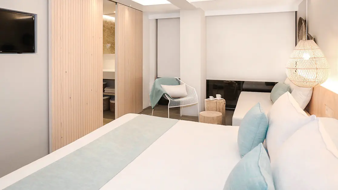 Dla max. 3 osób, Przestrzeń zewnętrzna: Balkon, Telefon w pokoju, prysznic, Powierzchnia pokoju: ok. 24 - 26 m2, Dostawka: łóżko standardowe, Rodzaj podłogi: płytki, Sprzątanie codziennie, 1 sypialnia, Maksymalna liczba osób dorosłych: 3, Maksymalna liczba dzieci: 2, Boczny widok na morze,Od strony morza, Liczba łazienek: 1, Liczba toalet: 1, Klimatyzacja: Klimatyzacja centralna, Działa w godzinach: 09:00-09:00, przez cały rok