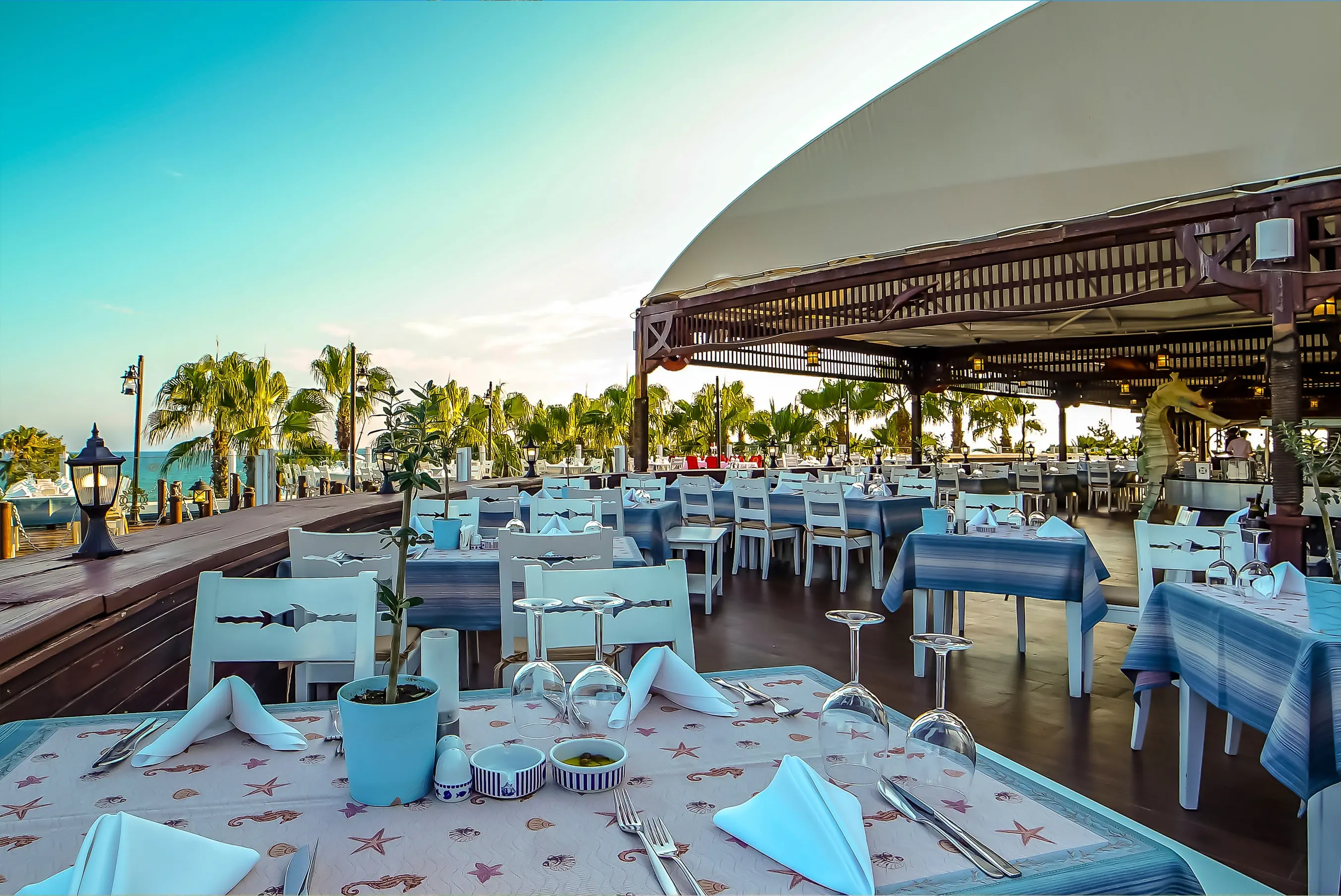 Śniadanie (07:00 - 10:30) - AMBER MAIN RESTAURANT, stół szwedzki, Śniadanie (03:30 - 06:30) - YULA MAIN RESTAURANT (FULYA HOTEL), stół szwedzki, Śniadanie (08:30 - 10:30) - HONEYMOON BREAKFAST, a la carte, Późne śniadanie (07:00 - 14:30) - AMBER MAIN RESTAURANT (ONLY ON SUNDAYS), stół szwedzki, Obiad (12:30 - 14:30) - AMBER MAIN RESTAURANT, stół szwedzki, Przekąski (12:00 - 15:30) - SOGUT SNACK RESTAURANT, określone menu, Przekąski (12:00 - 15:30) - BBQ SNACK RESTAURANT, określone menu, Przekąski (12:00 - 15:30) - LUNA SNACK RESTAURANT, określone menu, Przekąski (12:00 - 15:30) - TERRACE SNACK RESTAURANT, określone menu, Przekąski (12:00 - 16:00) - PALM SNACK RESTAURANT, stół szwedzki, Przekąski (12:00 - 16:00) - LIA SNACK RESTAURANT, stół szwedzki, Przekąski (12:00 - 18:00) - ATLANTIC SNACK RESTAURANT, stół szwedzki, Przekąski (12:00 - 18:00) - PACIFIC SNACK RESTAURANT, stół szwedzki, Przekąski (10:30 - 16:00) - GOZLEME, stół szwedzki, Podwieczorek (10:30 - 18:00) - HOT PATISSERIE, stół szwedzki, Podwieczorek (10:30 - 18:00) - FIKA PATISSERIE, stół szwedzki, Podwieczorek (10:30 - 18:00) - THE POINT PATISSERIE, stół szwedzki, Kolacja (19:00 - 21:30) - AMBER MAIN RESTAURANT, stół szwedzki, Późna kolacja (00:00 - 02:30) - YULA MAIN RESTAURANT (FULYA HOTEL), stół szwedzki, YENGEC FISH RESTAURANT (19:00 - 21:00) (19:00 - 21:00), bez limitu, Kuchnia: owoce morza , Wymagana rezerwacja: Tak ¹⁾, CHINA TOWN RESTAURANT (19:00 - 21:00) (19:00 - 21:00), bez limitu, Kuchnia: Chińska, Wymagana rezerwacja: Tak ¹⁾, LA PERLA RESTAURANT (19:00 - 21:00) (19:00 - 21:00), bez limitu, Kuchnia: śródziemnomorska, Wymagana rezerwacja: Tak ¹⁾, AZTECA RESTAURANT (19:00 - 21:00) (19:00 - 21:00), bez limitu, Kuchnia: Meksykańska, Wymagana rezerwacja: Tak ¹⁾, TURKUAZ RESTAURANT (19:00 - 21:00) (19:00 - 21:00), raz w tygodniu, Kuchnia: lokalna, Wymagana rezerwacja: Tak, MA BELLE RESTAURANT (19:00 - 21:00) (19:00 - 21:00), bez limitu, Kuchnia: Francuska, Wymagana rezerwacja: Tak ¹⁾, napoje bezalkoholowe, alkohole lokalne, wybrane alkohole importowane, lody, pakiety dla nowożeńców, pakiety urodzinowe (na życzenie) ¹⁾, cukiernia, Minibar w pokoju ¹⁾ - dodatkowo płatne