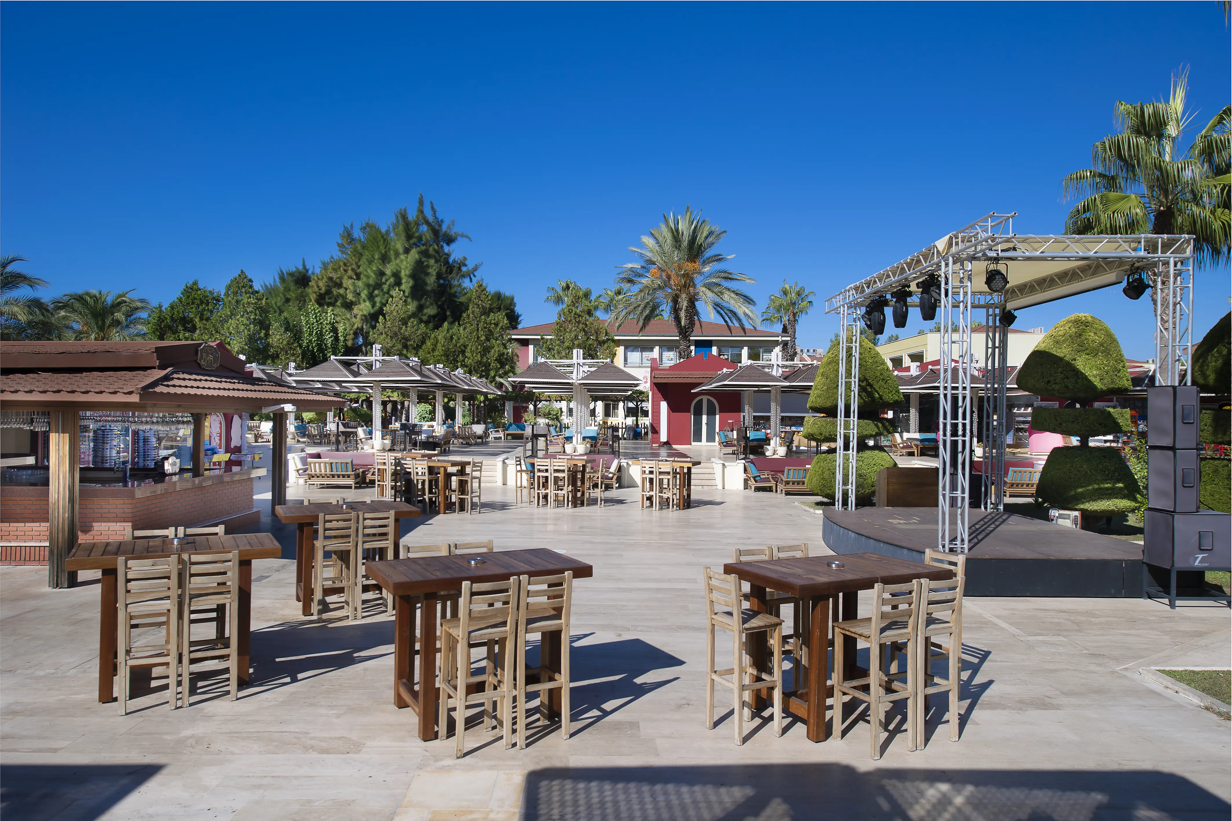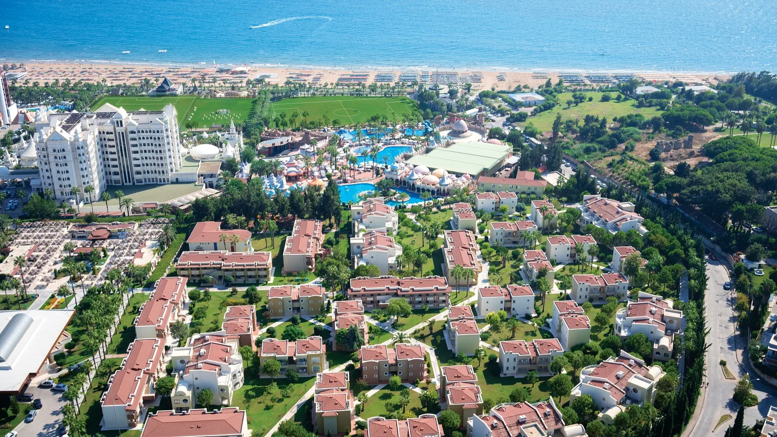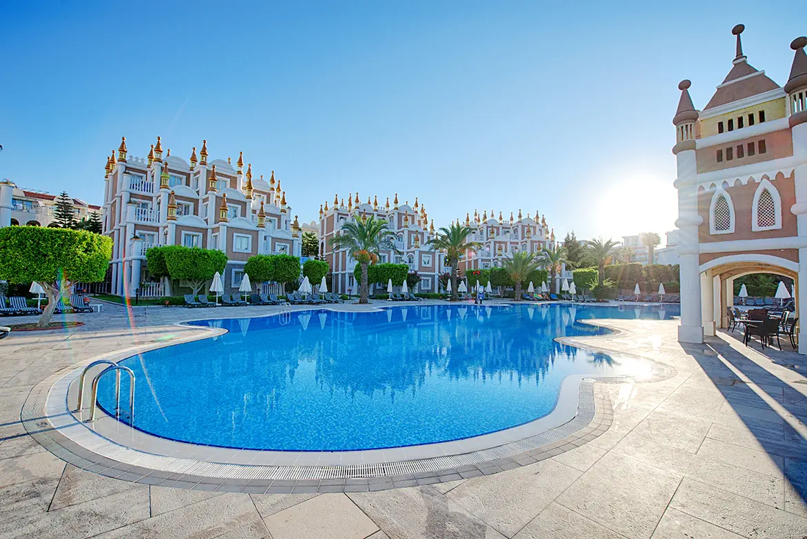 Ten duży i komfortowy kompleks hotelowy leży przy długiej i szerokiej plaży z łagodnym zejściem do morza w otoczeniu rozległego ogrodu. Goście mogą korzystać z urozmaiconej infrastruktury kompleksu, mają do dyspozycji baseny, zjeżdżalnie oraz szeroką ofertę rozrywkową i sportowo - rekreacyjną. Ok. 5 km od hotelu znajduje się antyczne miasto Side z wieloma barami, restauracjami i sklepami. Wspaniałe miejsce na rodzinne wakacje. Polskie animacje wspólne dla kompleksu hoteli Kamelya Collection odbywają się na terenie hotelu Kamelya Aishen Club. Prowadzone są od 15.06.2026 do 15.09.2026 w wybrane dni tygodnia w określonych godzinach, ustalanych każdorazowo przez hotel.
