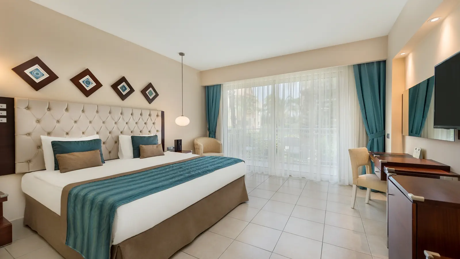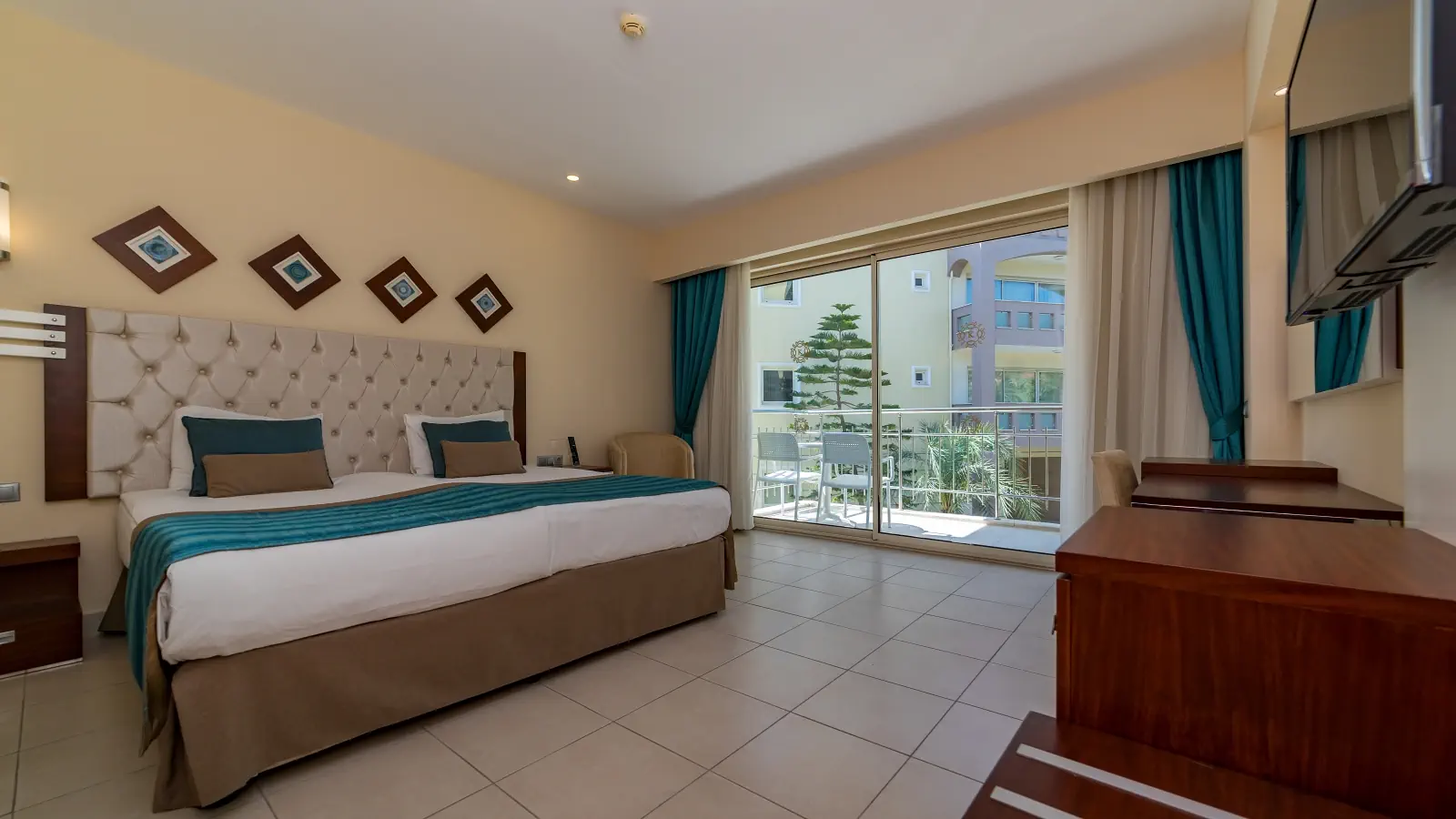 Dla max. 4 osób, Przestrzeń zewnętrzna: Balkon, Kanały telewizji: Angielski, Telefon w pokoju, wanna lub prysznic , Powierzchnia pokoju: ok. 36 - 44 m2, Dostawka: łóżko rozkładane, Rodzaj podłogi: płytki, Sprzątanie codziennie, 1 sypialnia, Maksymalna liczba osób dorosłych: 4, Maksymalna liczba dzieci: 2, Widok na ogród, Liczba łazienek: 1, Liczba toalet: 1, Zestaw do parzenia kawy i herbaty, Klimatyzacja: Klimatyzacja centralna, Działa w godzinach: Kwiecień, Maj, Czerwiec, Lipiec, Sierpień, Wrzesień, Październik, Listopad