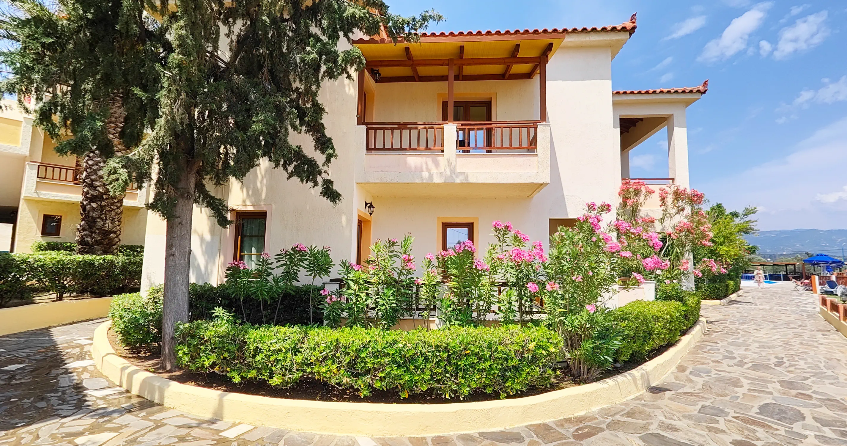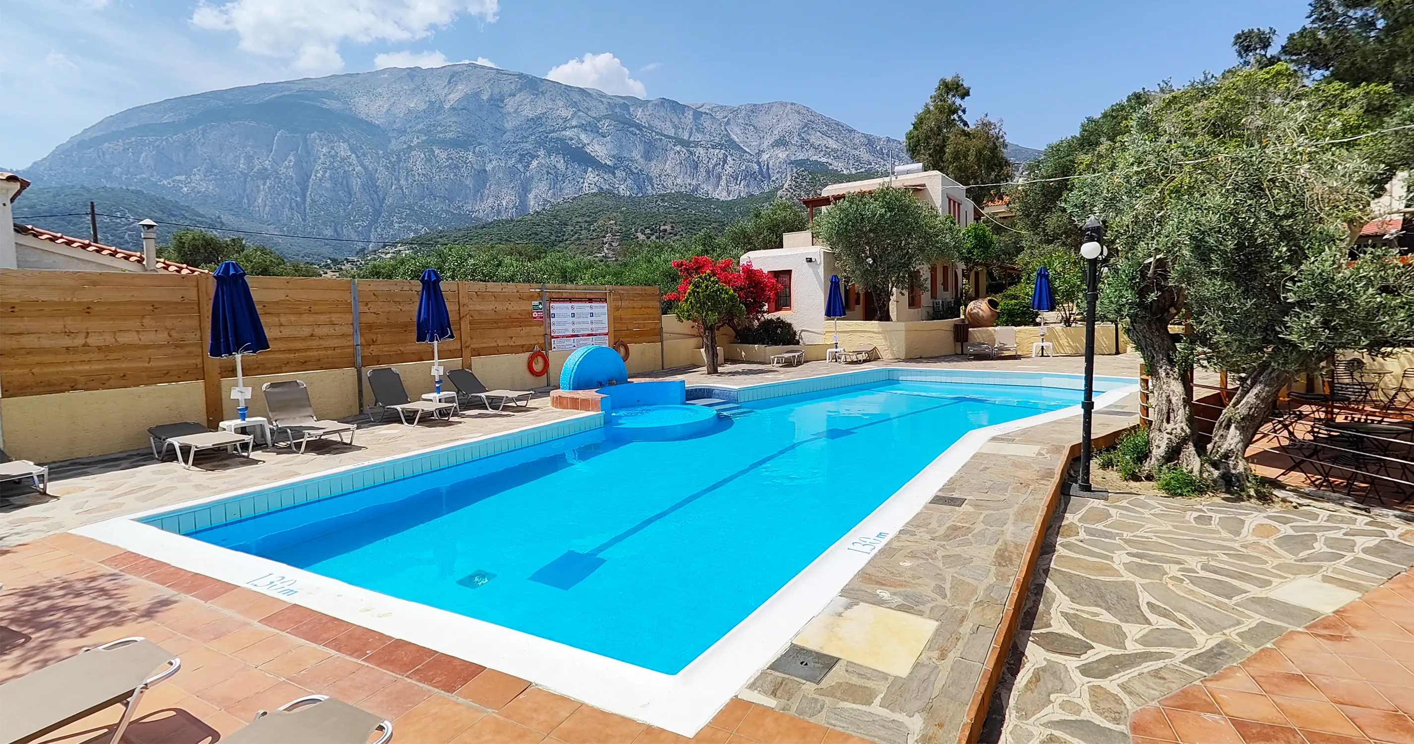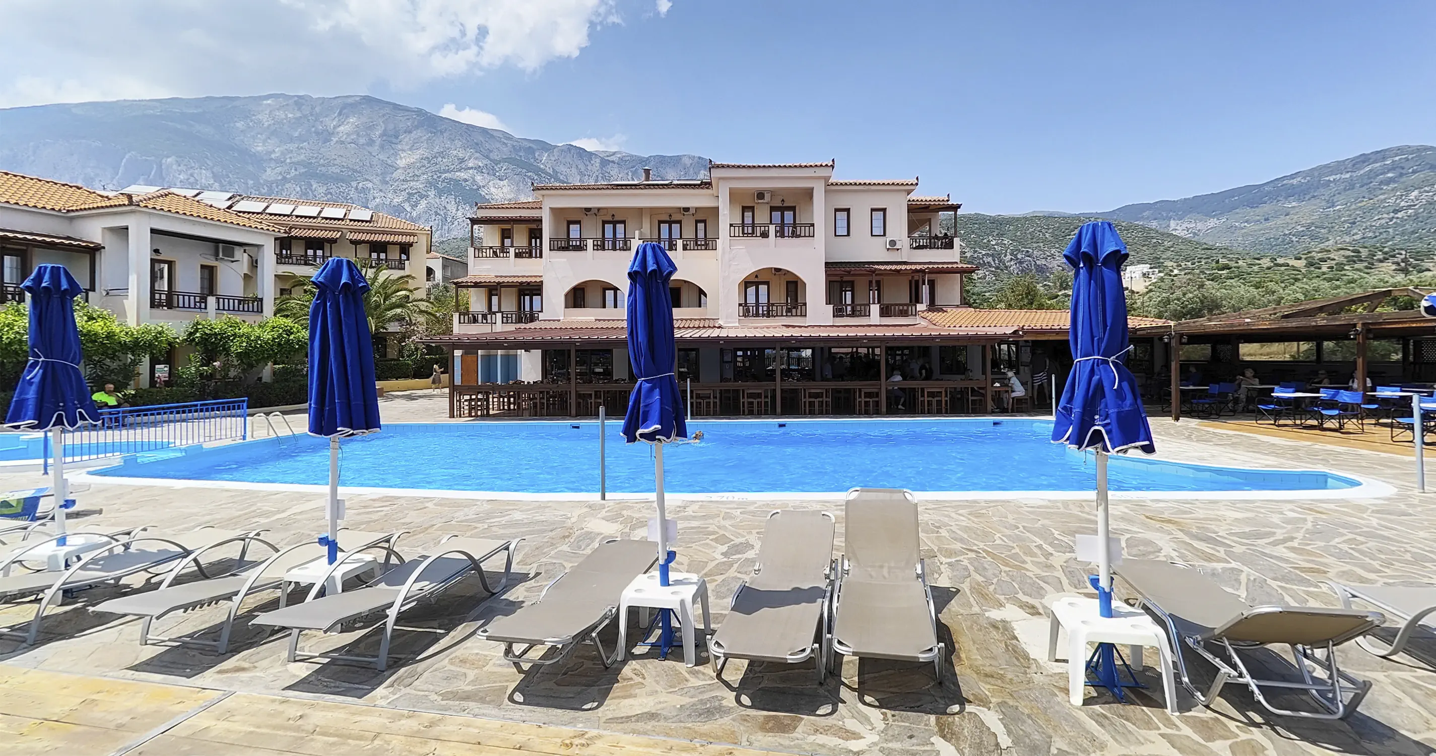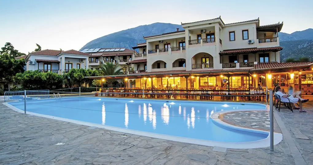 - Kompleks składa się z trzech części: Orteas, Artemis i Poseidon - Recepcja - Restauracja - Bar, kawiarnia - pool bar (otwarta w trakcie sezonu) - Ogród, 3 baseny z wydzieloną częścią dla dzieci - Leżaki i parasole przy basenach - bezpłatne - Ręczniki kąpielowe - płatne (1,5 euro/dzień + 10 euro/ręcznik-depozyt) - Plac zabaw - Oficjalna kategoria hotelu 3*