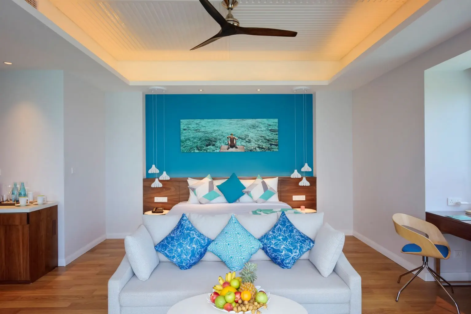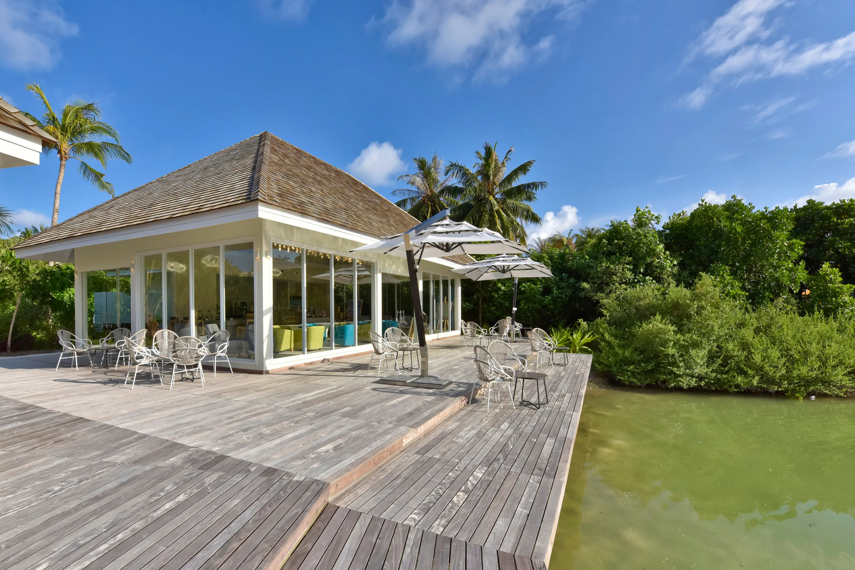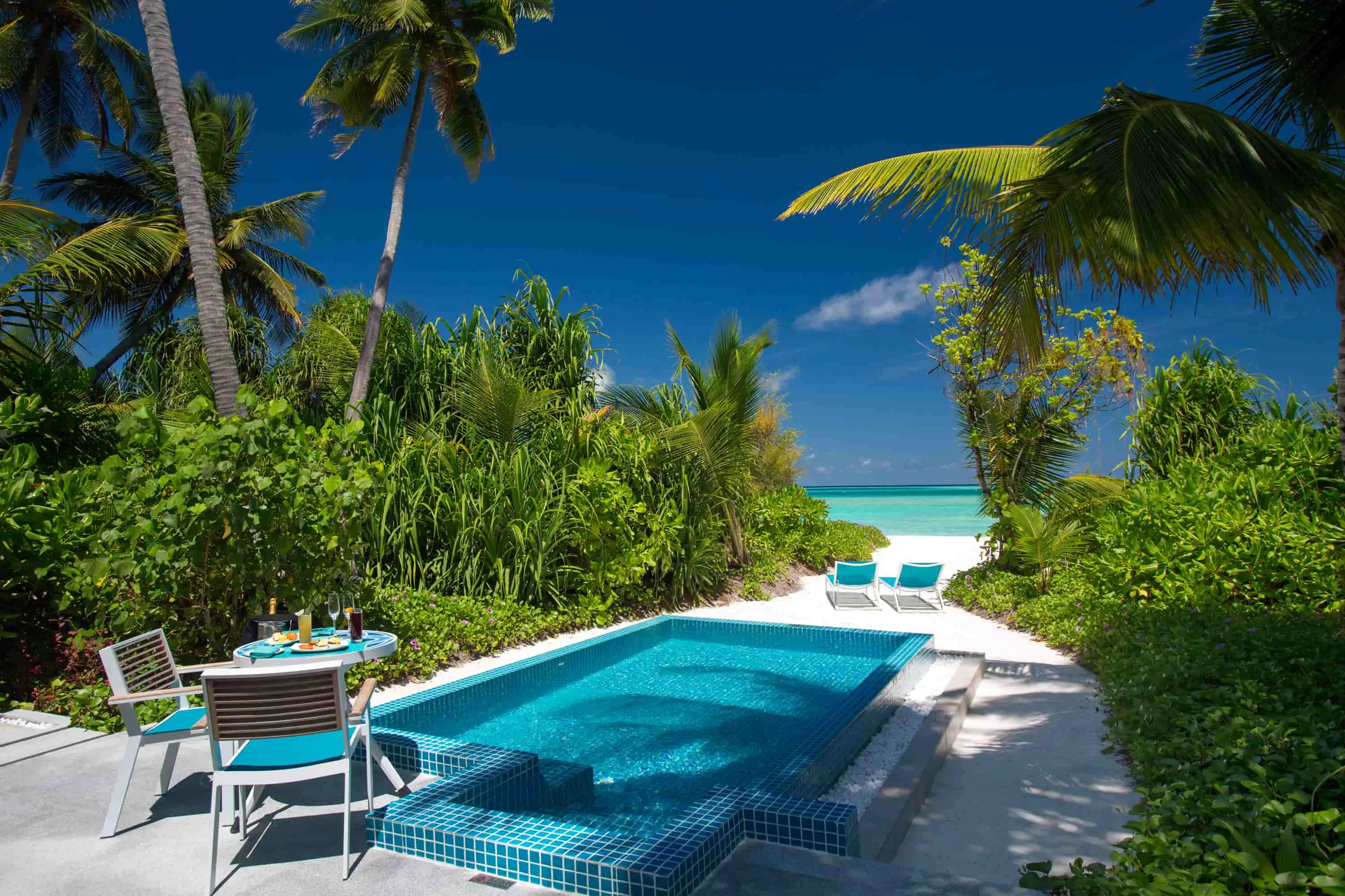 Dla max. 4 osób, Przestrzeń zewnętrzna: Taras, Kanały telewizji: Angielski, Telefon w pokoju, wanna i prysznic , jacuzzi, Powierzchnia pokoju: ok. 55 m2, Dostawka: sofa, Rodzaj podłogi: płytki, Sprzątanie codziennie, część jadalniana, 1 sypialnia, Maksymalna liczba osób dorosłych: 4, Maksymalna liczba dzieci: 2, Prysznic na świeżym powietrzu, Frontalny widok na plażę,Widok na lagunę, Bezpośredni dostęp do plaży, Prywatny basen, Liczba łazienek: 1, Liczba toalet: 1, Zestaw do parzenia kawy i herbaty, Klimatyzacja: Klimatyzacja indywidualna