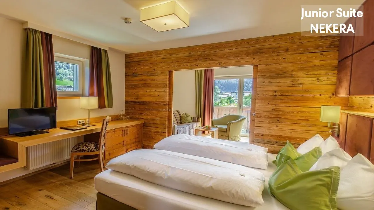 komfortowe, gustownie urządzone pokoje dwuosobowe: ok. 20-23 m2; ogrzewanie, TV-Sat., telefon, sejf, minibar (za opłatą), większość pokoi z balkonem. Wanna lub prysznic, WC, suszarka. Ręcznik kąpielowy, szlafrok, kapcie. Junior Suite, przestronniejsze, ok. 35-37 m2; dodatkowo balkon. Dla 2-4 osób. Poza tym wyposażone jak pokoje dwuosobowe. Łóżeczko dla dziecka do 2 lat za opłatą 20 EUR / dzień.