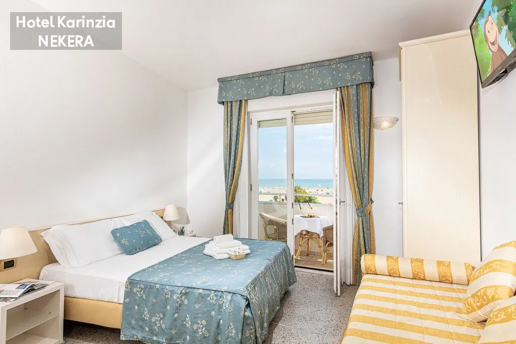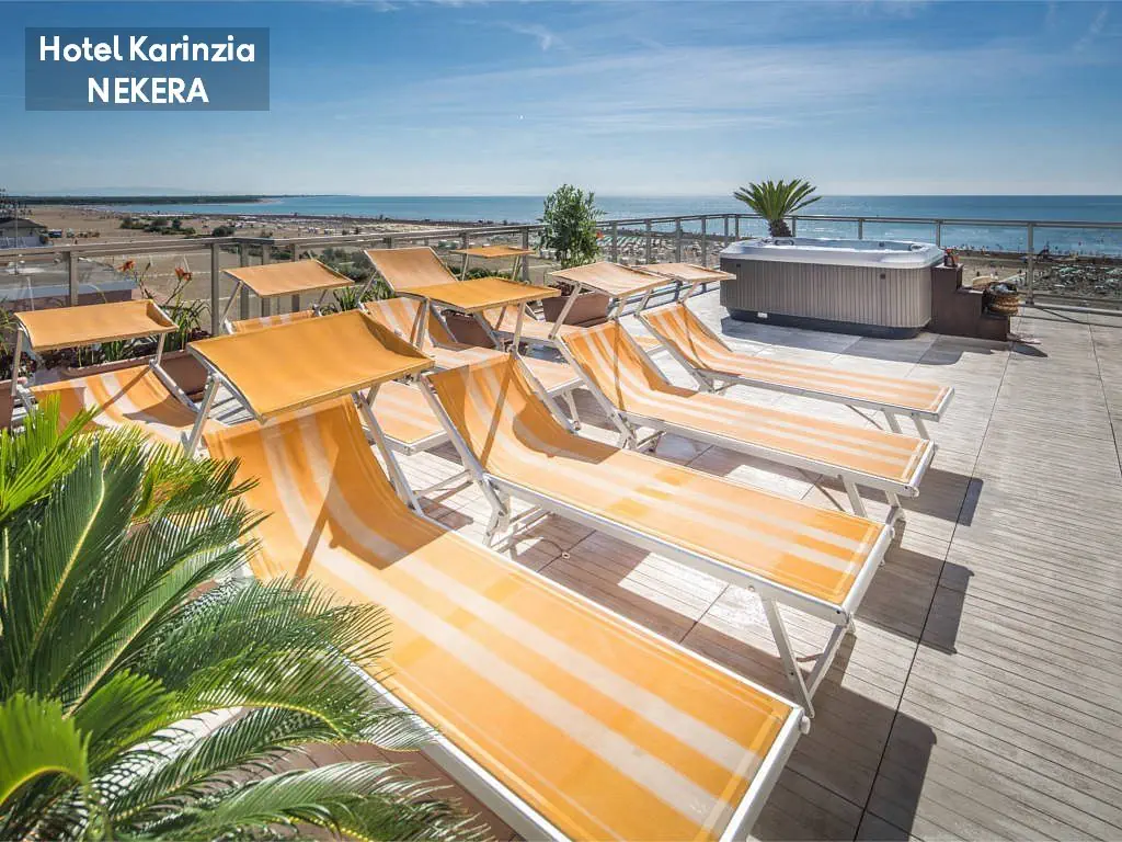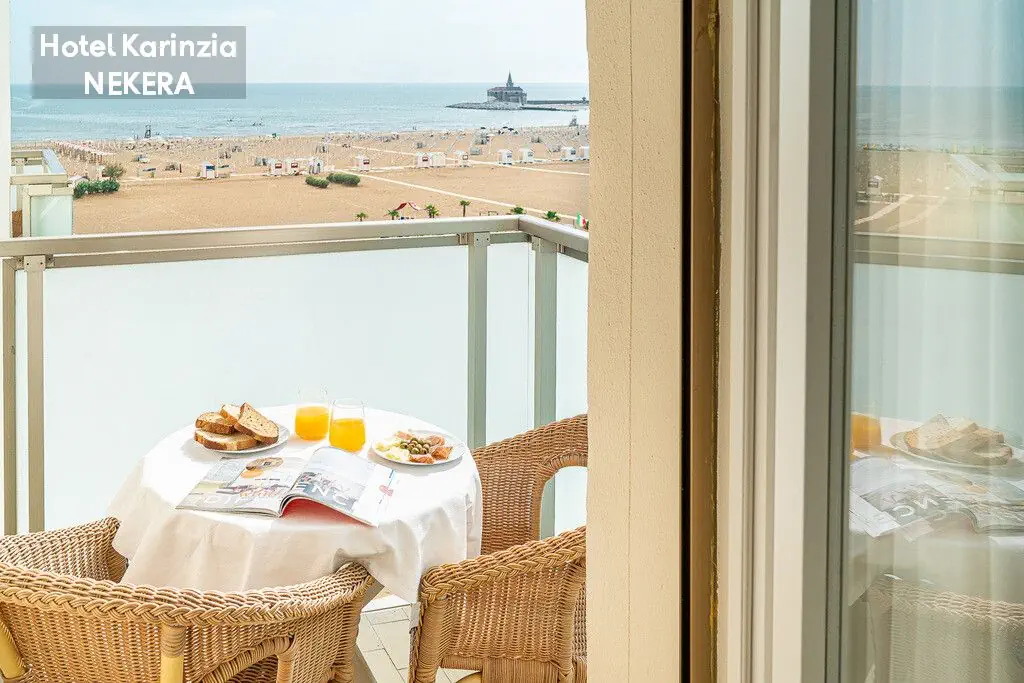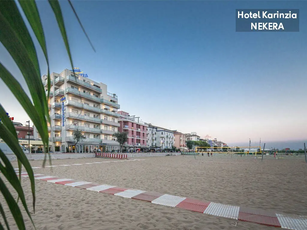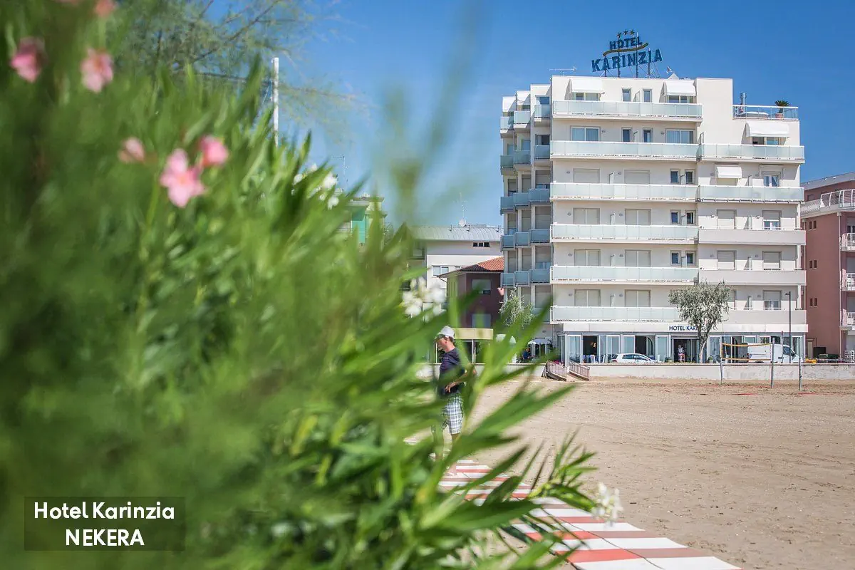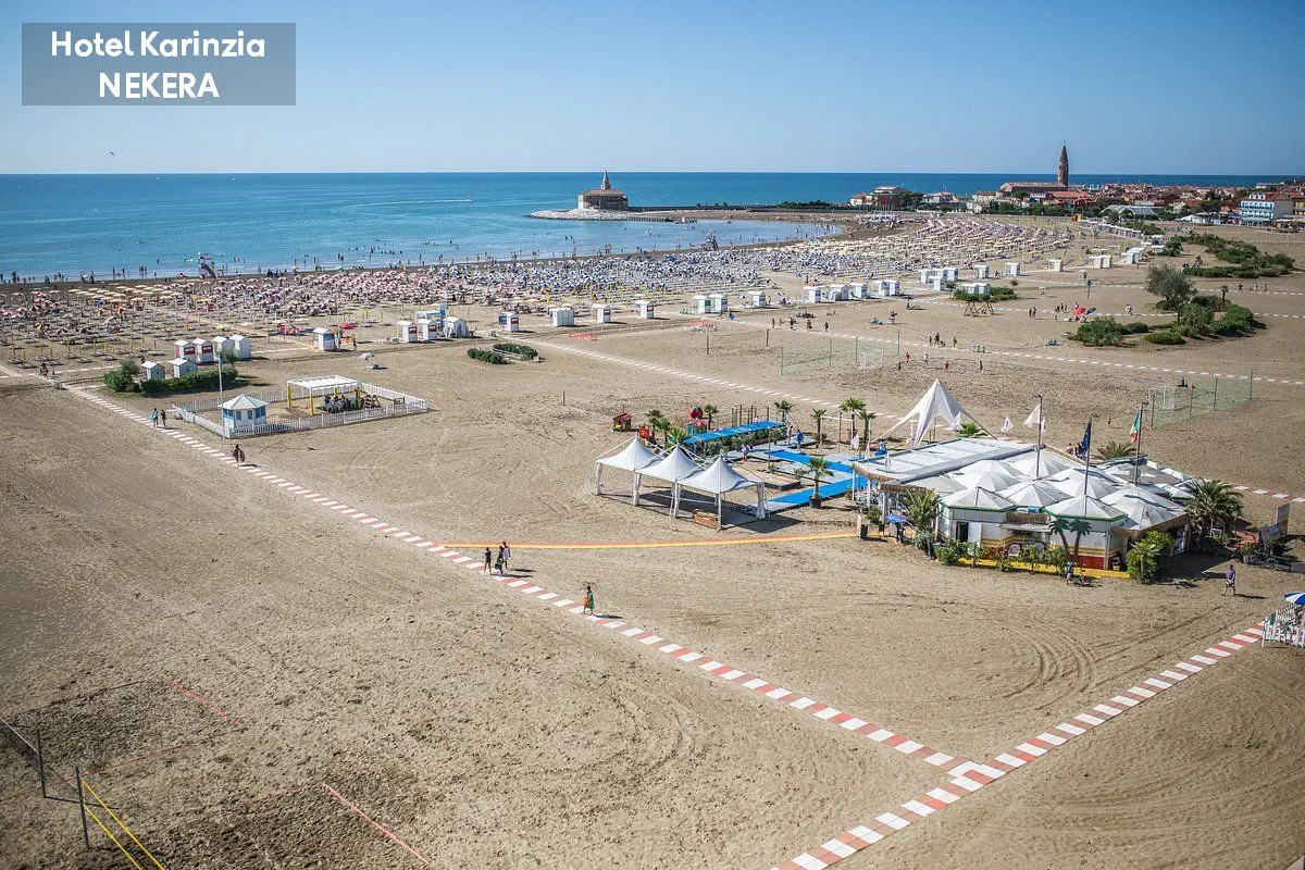 hotel położony bezpośrednio (ok. 10 m) przy piaszczystej plaży (leżaki i parasole w cenie). Do centrum Caorle ok. 500 m.