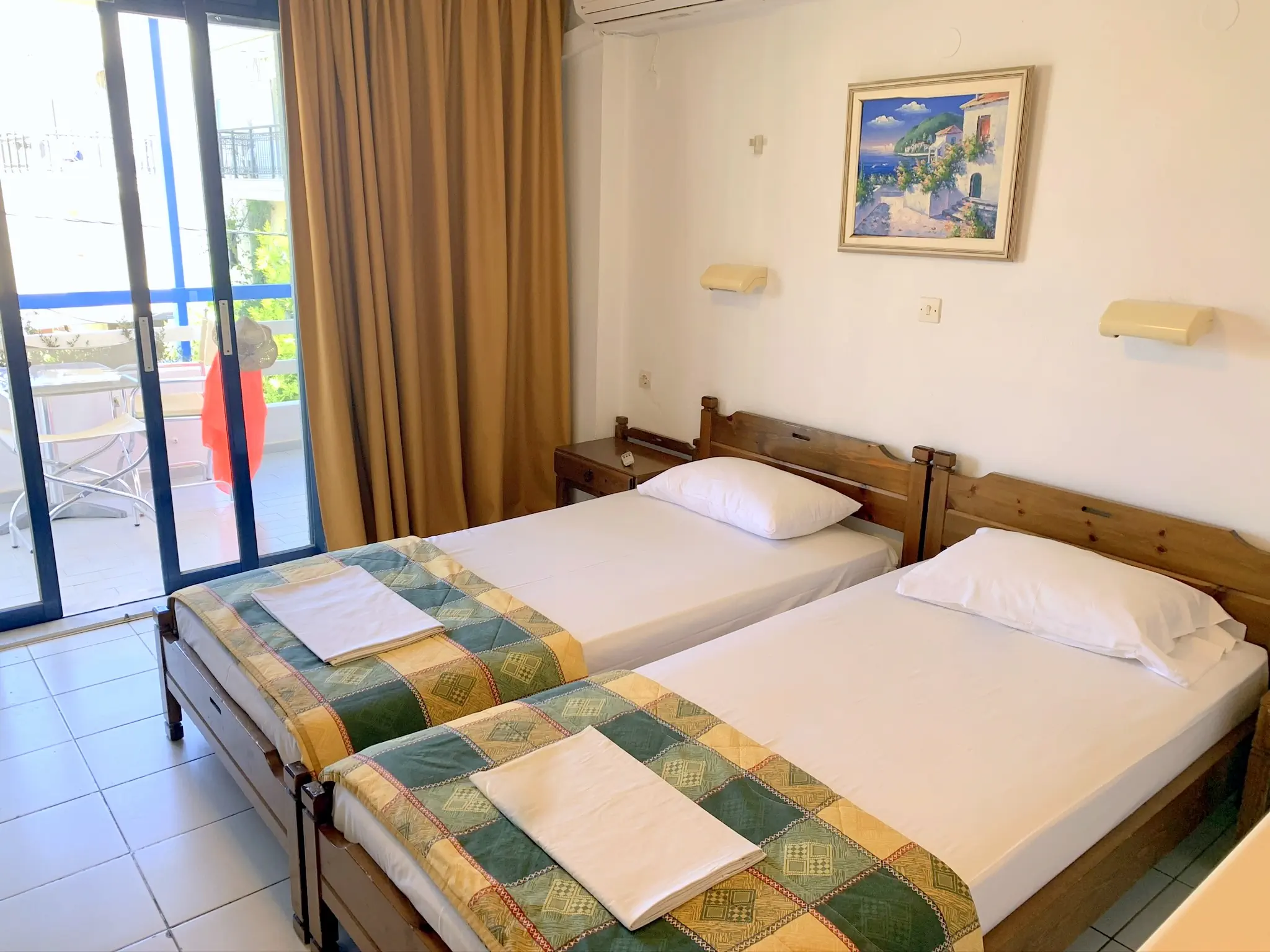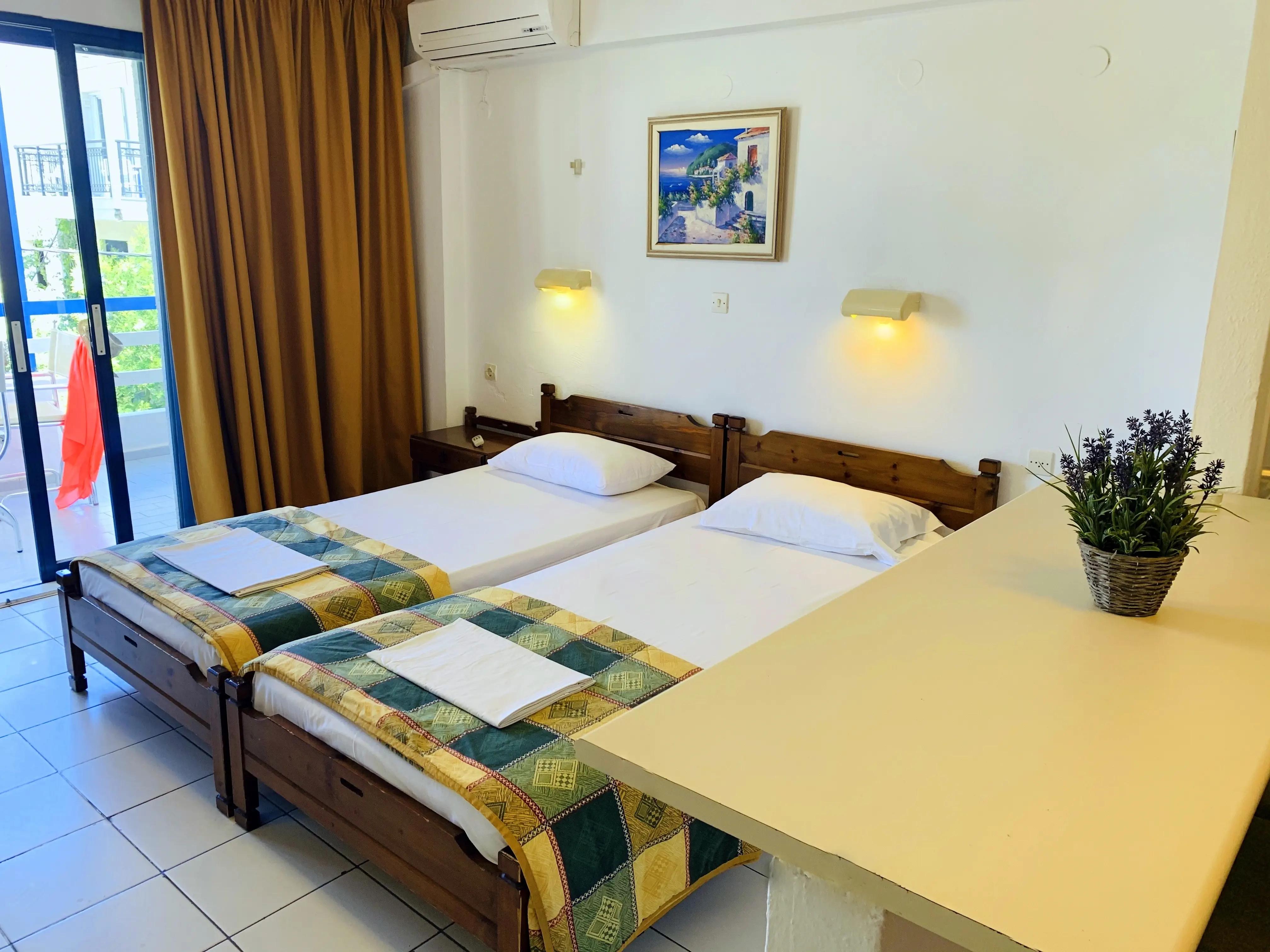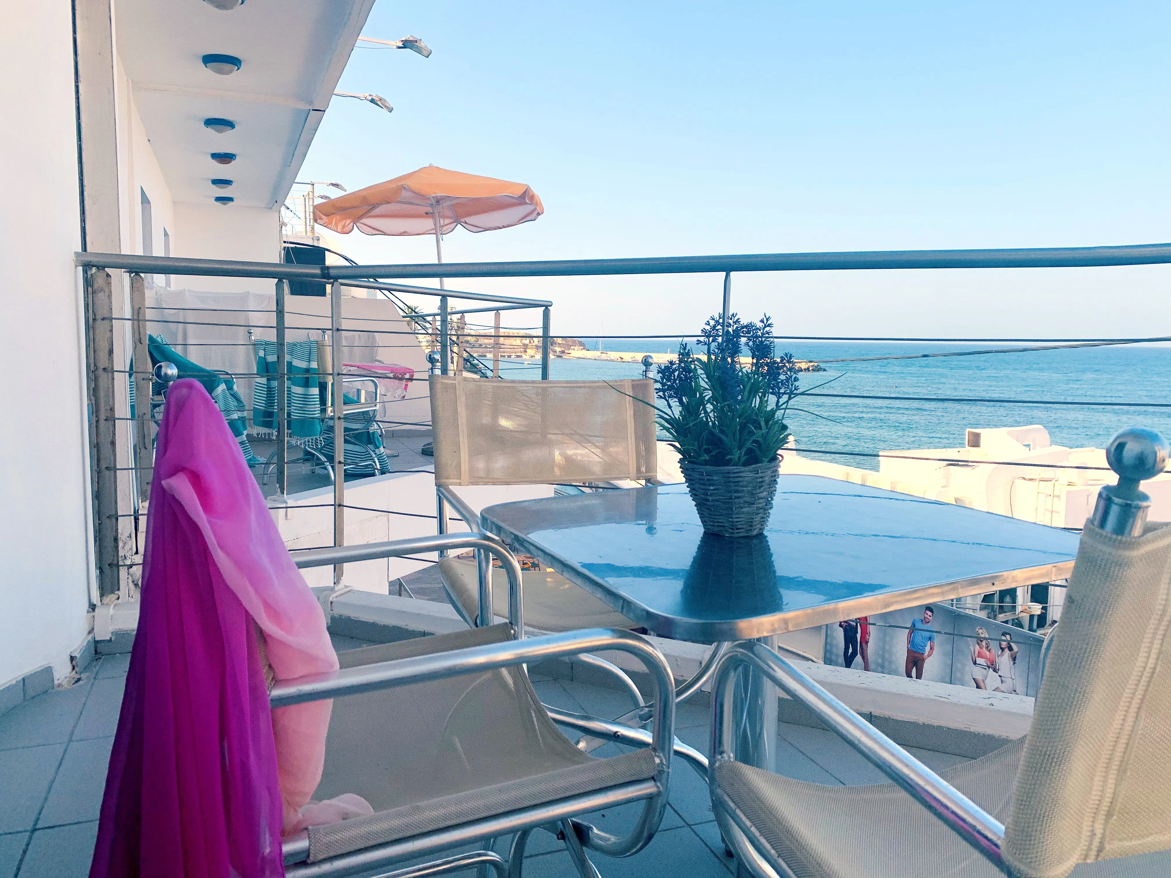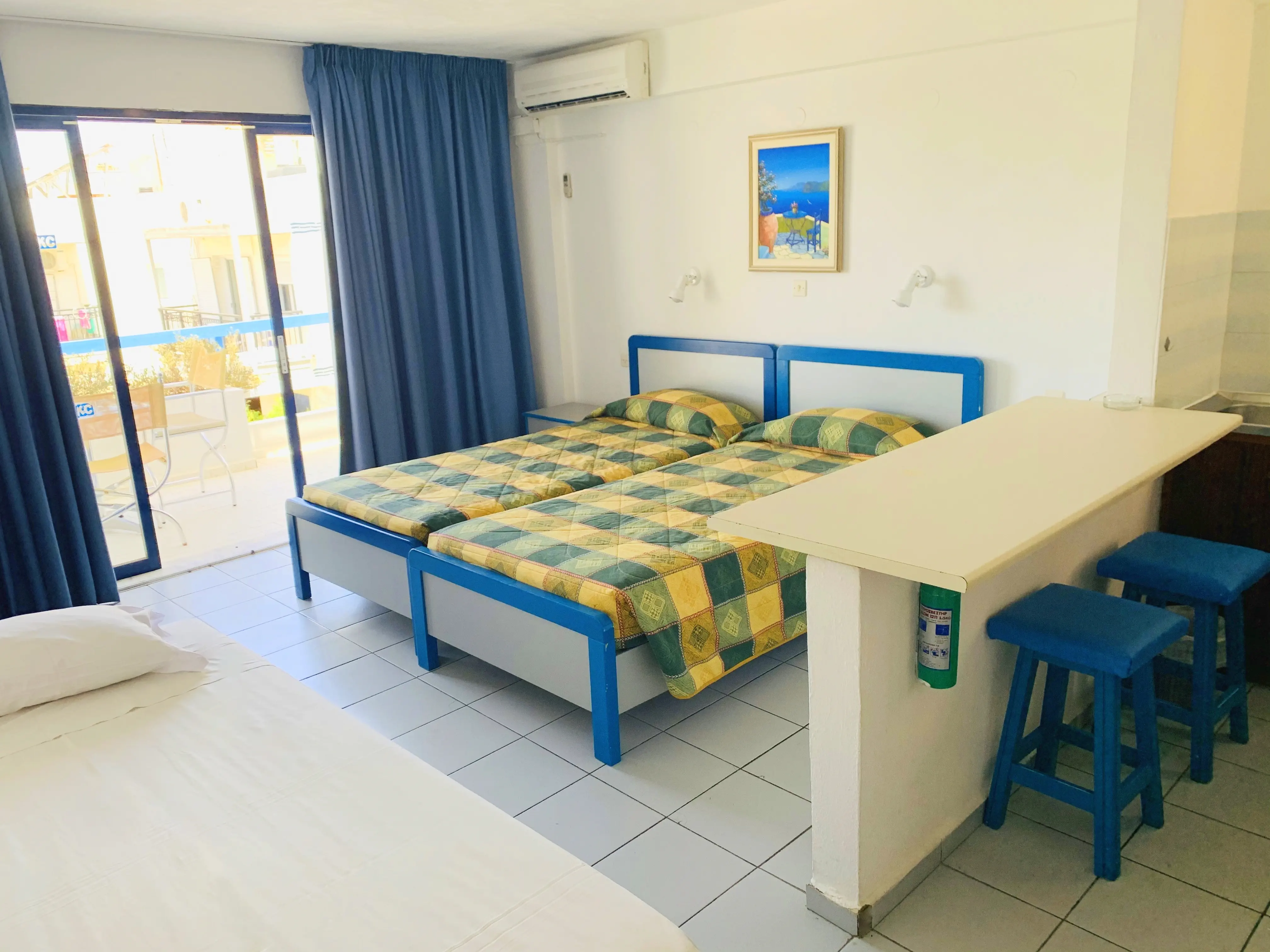 Dla max. 4 osób, Przestrzeń zewnętrzna: Balkon lub taras, Kanały telewizji: Angielski, Aneks kuchenny, prysznic, Powierzchnia pokoju: ok. 33 - 40 m2, Dostawka: sofa, Rodzaj podłogi: płytki, Sprzątanie codziennie, Salon, część jadalniana, 1 sypialnia, Drzwi łączące między pokojami, Maksymalna liczba osób dorosłych: 2, Maksymalna liczba dzieci: 2, Boczny widok na morze,Widok na morze, Liczba łazienek: 1, Liczba toalet: 1, Kuchenka mikrofalowa, Klimatyzacja: Klimatyzacja indywidualna