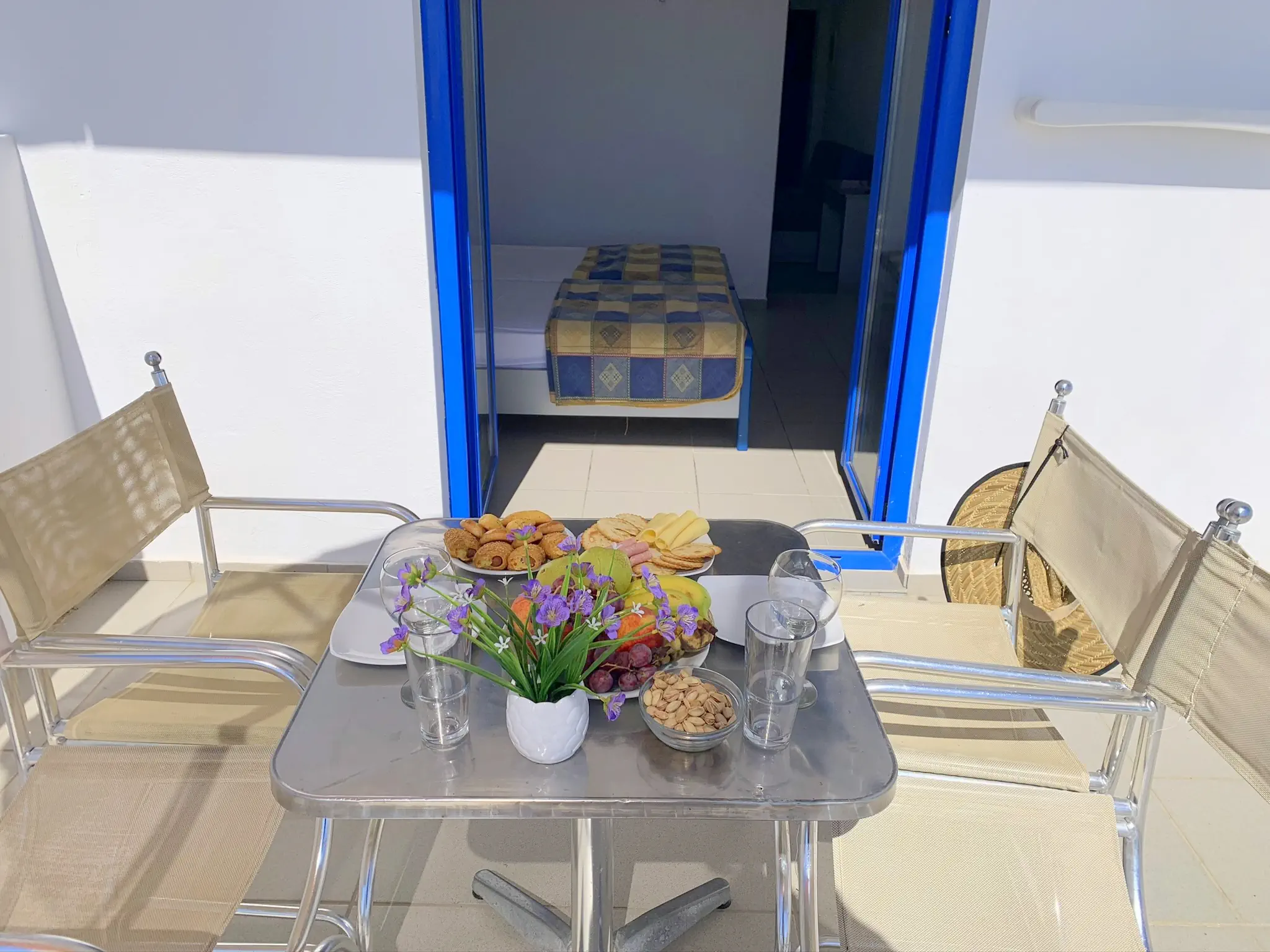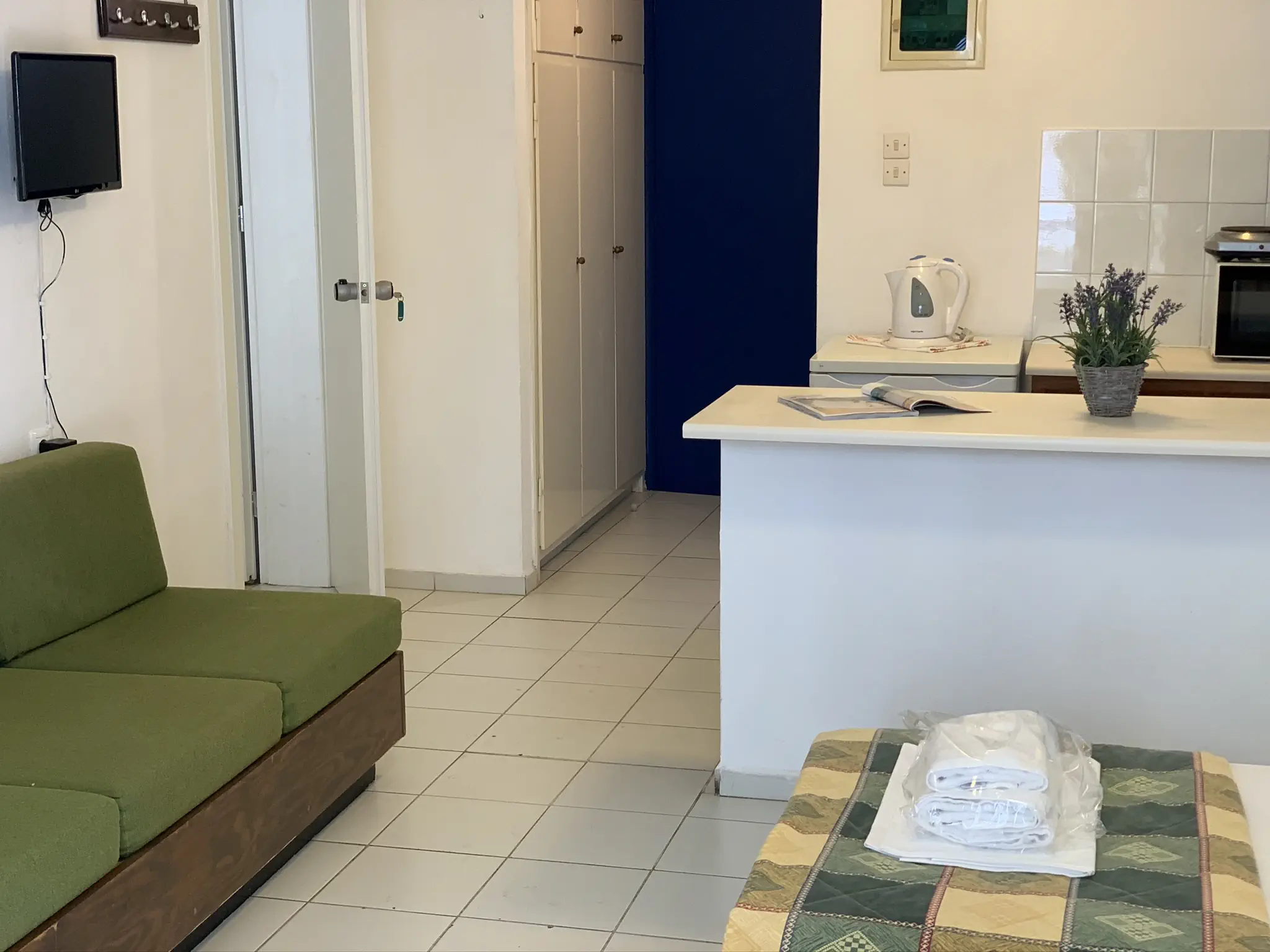 Dla max. 2 osób, Przestrzeń zewnętrzna: Balkon lub taras, Kanały telewizji: Angielski, Aneks kuchenny, prysznic, Powierzchnia pokoju: ok. 18 - 30 m2, Rodzaj podłogi: płytki, Sprzątanie codziennie, 1 sypialnia, Maksymalna liczba osób dorosłych: 1, Maksymalna liczba dzieci: 1, Widok na morze, Liczba łazienek: 1, Liczba toalet: 1, Klimatyzacja: Klimatyzacja indywidualna