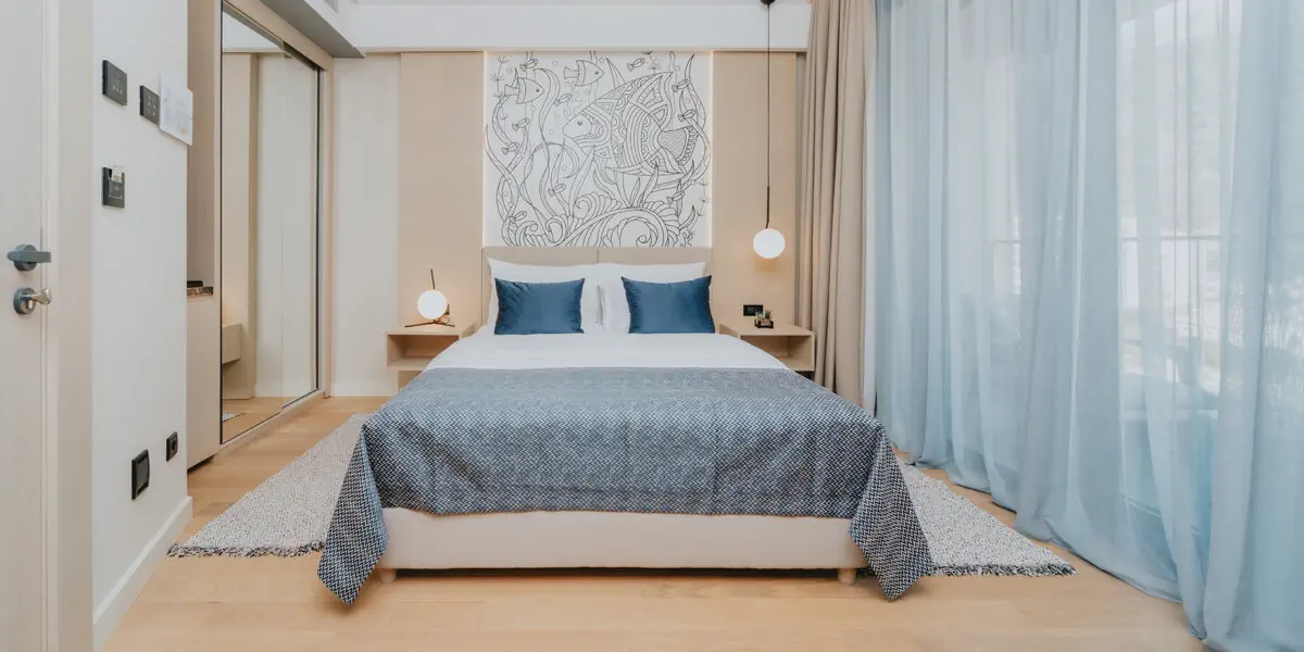 Komfortowy pokój z klimatyzacją, wygodami, łazienką i balkonem od strony morza