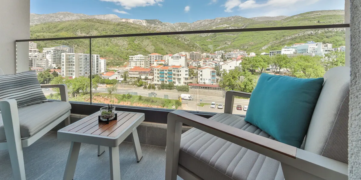 Komfortowy pokój z klimatyzacją, wygodami, łazienką i balkonem z widokiem na góry