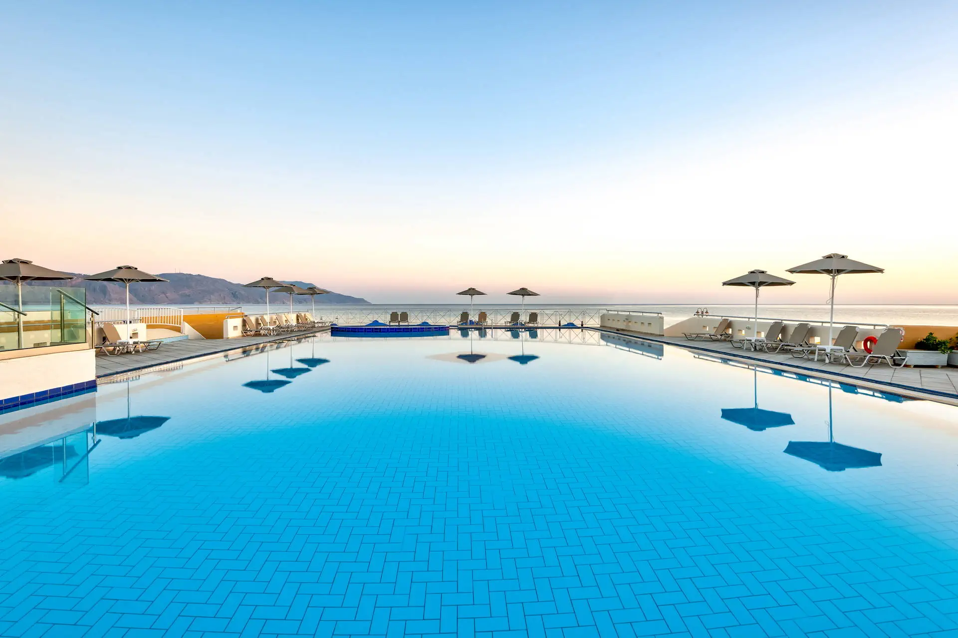 Plaża Plaża tuż przy hotelu. Szeroka i piaszczysta. Leżaki i parasole bezpłatne (liczba ograniczona). Do dyspozycji gości Kompleks składający się z 3 części: Kavros Beach, Yassou Kriti i Kavros Garden. Kavros Garden znajduje się za ruchliwą ulicą w odległości około 450 m od pozostałych dwóch części. Darmowe leżaki i parasole na plaży przy Kavros Beach oraz Yassou Kriti.Główna recepcja czynna 24h, lobby. Baseny w każdej z 3 części hotelu, leżaki i parasole przy basenie (darmowe do dyspozycji Gości - ilość ograniczona). Hotel nie zapewnia ręczników kąpielowych. Restauracja w części głównej Kavros Beach, bary z all inclusive w każdej z 3 części hotelu. Internet Wi-Fi bezpłatnie w hotelowym lobby. Kategoria lokalna B Naszym zdaniem Doskonała baza wypadowa do intensywnego zwiedzania wyspy ze względu na położenie między Chanią, a Rethymnonem. Idealna propozycja dla osób dysponujących nieco skromniejszym budżetem, a ceniącym sobie wygodę opcji All-Inclusive. Pokoje 320 skromnie urządzonych pokoi 2-osobowych standardowych (możliwość max. 2 dostawek w formie pełnowymiarowych łóżek lub łóżka piętrowego) z łazienkami z WC. Suszarka do włosów jest dostępna w większości pokoi (można ewentualnie zamówić ją bezpłatnie w recepcji). W każdym pokoju balkon lub taras, TV-sat, lodówka oraz klimatyzacja. Sejf za opłatą 1,50 EUR/dzień. Na życzenie bezpłatne łóżeczko dla dziecka do 2 lat. Pokoje ekonomiczne - zlokalizowane są po drugiej stronie ruchliwej ulicy, w części Kavros Garden, z oddzielnym basenem - dostępne darmowe leżaki i parasole, bar, mini recepcja. Goście mogą korzystać z tunelu pod autostradą, który znajduje się w niedalekiej odleglości od wszystkich 3 obiektów, tak aby przemieszczać się pomiędzy hotelami. Pokoje ekonomiczne w części Kavros Garden wyposażone są tak jak pokoje standardowe, lecz posiadają skromniejszy wystrój. Możliwe korzystanie z całej infrastruktury kompleksu Kavros Beach - baseny, bary i restauracje (również all inclusive). Położenie Hotel położony jest w niewielkiej miejscowości Kavros, po drugiej stronie ruchliwej ulicy. Najbliższe sklepy i bankomaty znajdują się w odległości około 200 m. Do miejscowości Georgiopoulis jest około 4 km. Miasto Rethymnon oddalone jest o 17 km, a dojazd możliwy jest autobusem publicznym. Jezioro Kournas znajduje się w odległości 4 km. Przystanek autobusowy zlokalizowany jest około 150 m od hotelu. Do lotniska w Chanii ok. 49 km.Do lotniska w Heraklionie ok. 100 km. Program sportowy i animacyjny Dla każdego: tenis ziemny (sprzęt dostępny w recepcji). Dla dzieci: plac zabaw dla dzieci. Pozostałe informacje: Hotel prowadzi program animacyjny na terenie Kavros Beach, przy basenie głównym. Wyżywienie Rodzaje wyżywienia i posiłki: All Inclusive: Śniadania: 07:30 - 10:00. Obiady: 12:30 - 14:00. Kolacje: 18:30 - 21:00. Restauracje: Główna restauracja w formie bufetu. Bary: Bar główny: woda, lokalne piwo, wino, ouzo, raki, brandy, napoje bezalkoholowe, soki (bez świeżo wyciskanych) w godzinach 10:00 - 22:00. Dodatkowe usługi: Kanapki: 10:30 - 12:00. Ciasta i kawa: 15:00 - 17:30. Lody: 12:30 - 14:00.