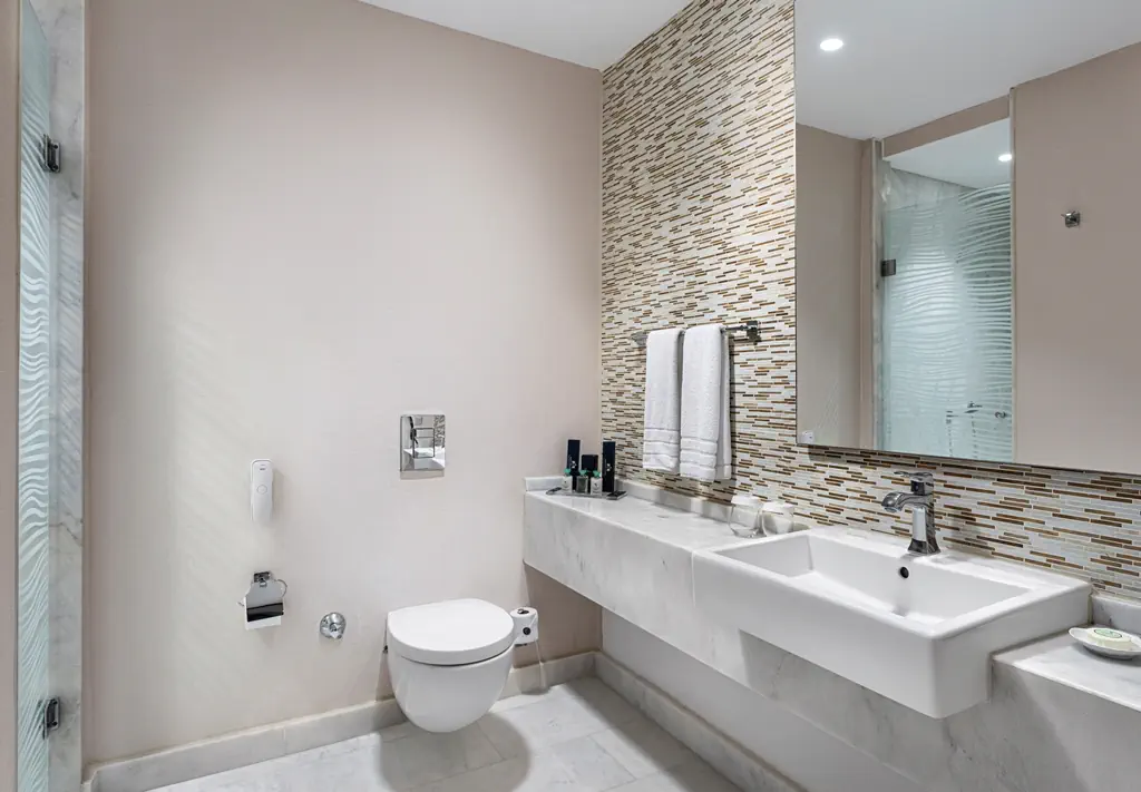 Dla max. 6 osób, Przestrzeń zewnętrzna: Taras, Telefon w pokoju, wanna i prysznic , Powierzchnia pokoju: ok. 108 m2, Dostawka: sofa, Rodzaj podłogi: laminat, Sprzątanie codziennie, Salon, miejsce do pracy, 2 sypialnie, Drzwi łączące między pokojami, Maksymalna liczba osób dorosłych: 4, Maksymalna liczba dzieci: 2, Widok na basen, Wyjście do wspólnego basenu, Liczba łazienek: 3, Liczba toalet: 3, Zestaw do parzenia kawy i herbaty, Klimatyzacja: Klimatyzacja centralna